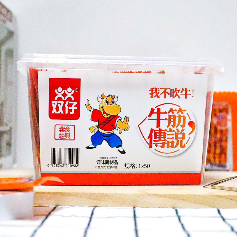 Shuangzai 쇠고기 힘줄 전설 매운 작은 패키지 매운 콩 힘줄 어린 시절 향수 채식 쇠고기 끈 간식 전체 상자 도매
