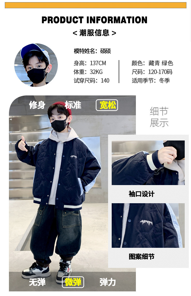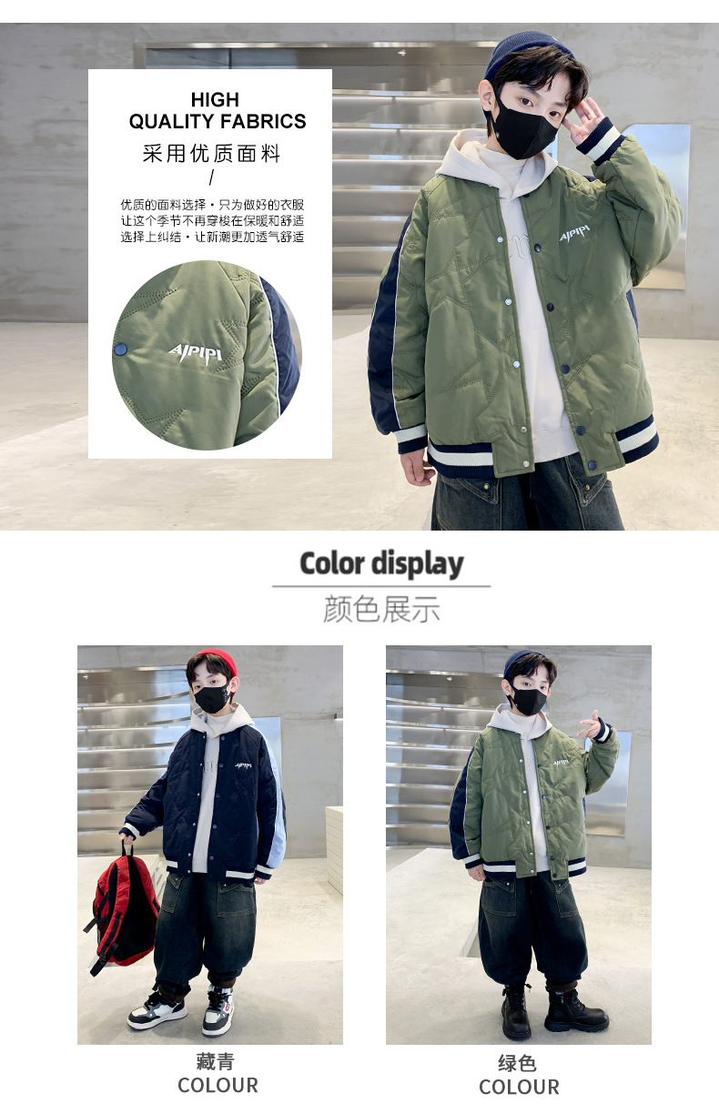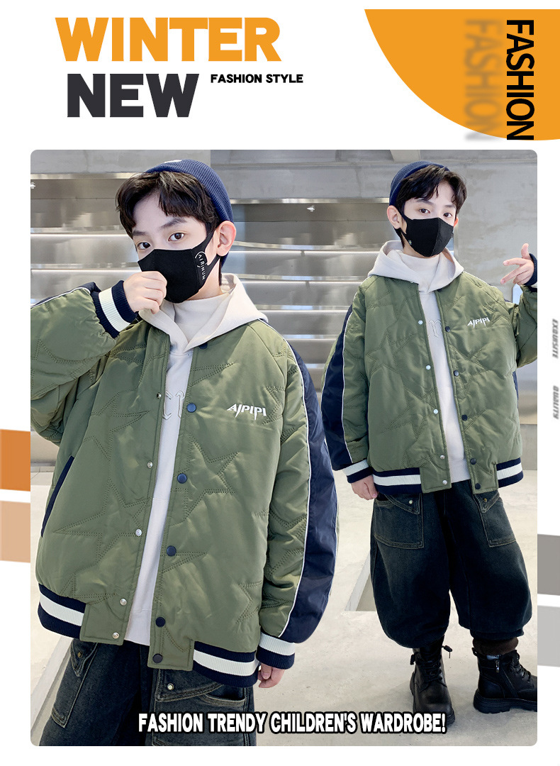 소년 퀼트 야구 재킷 가을, 겨울 2024 새로운 중대형 아동 캐주얼 재킷 두꺼운 아동복 도매 트렌드스토어 가기