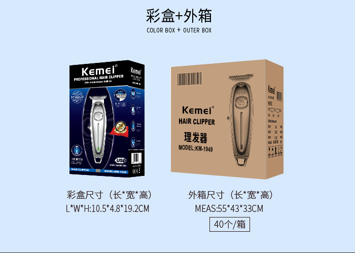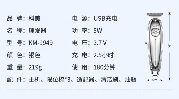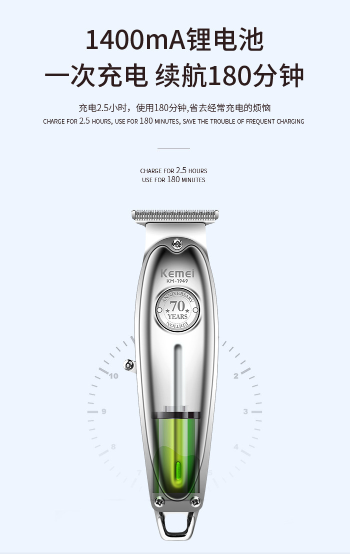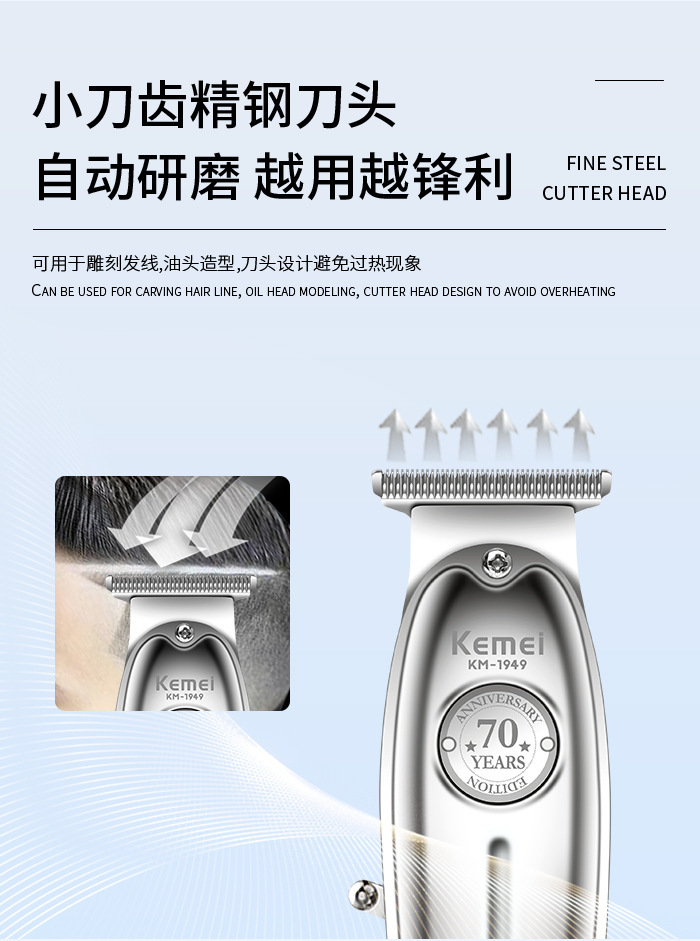 코미 KM-1949 헤어 클리퍼 전기 면도 헤드 기념 70 주년 기념 오일 헤드 전기 클리퍼 조각 헤어 클리퍼