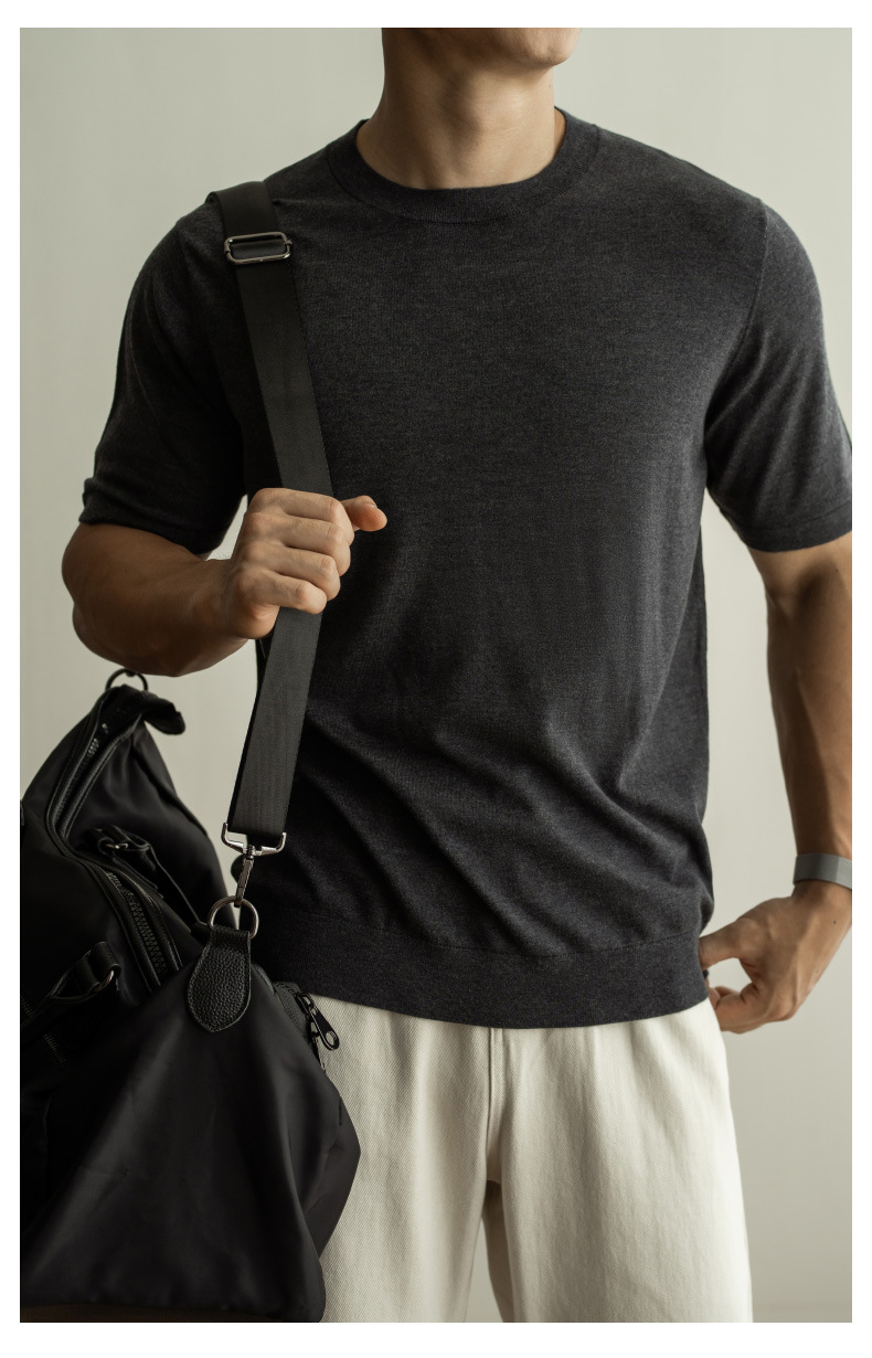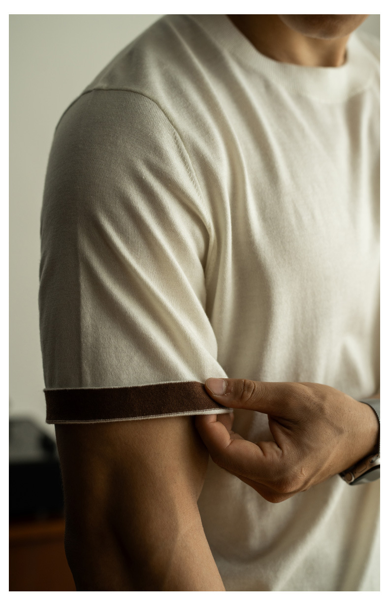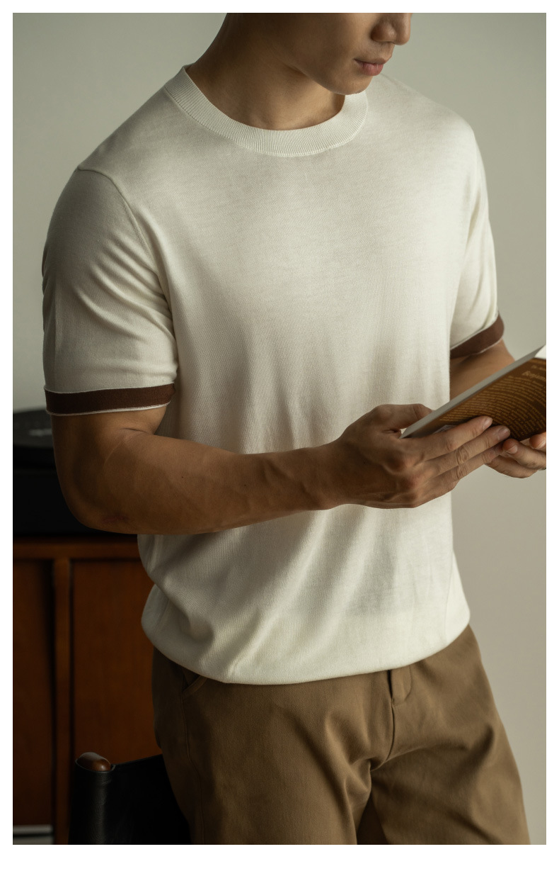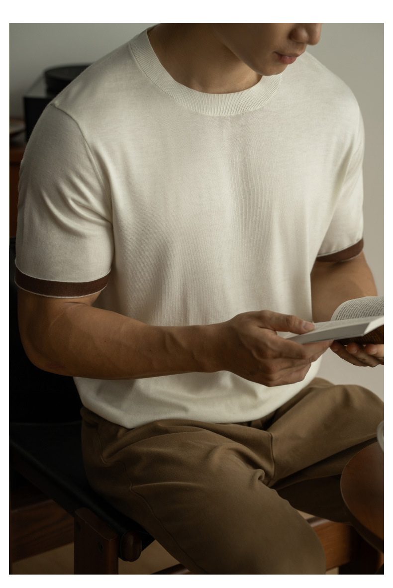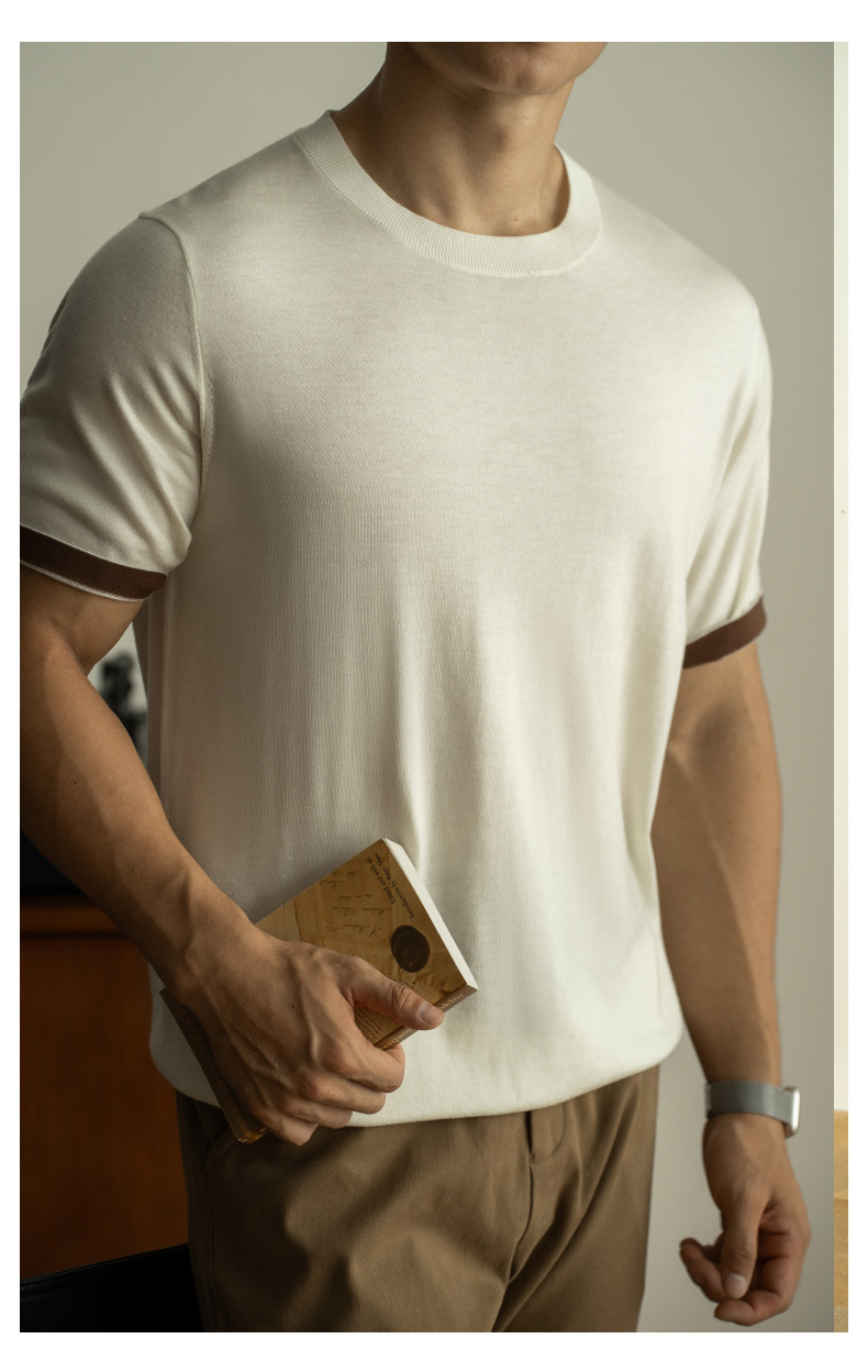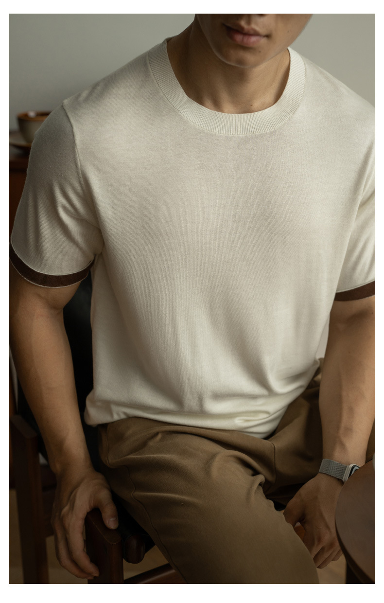 SONGNAN 뽕나무 실크 울 반팔 티셔츠 남성 비즈니스 캐주얼 내부 얇은 니트베이스 셔츠 겨울과 가을스토어 가기