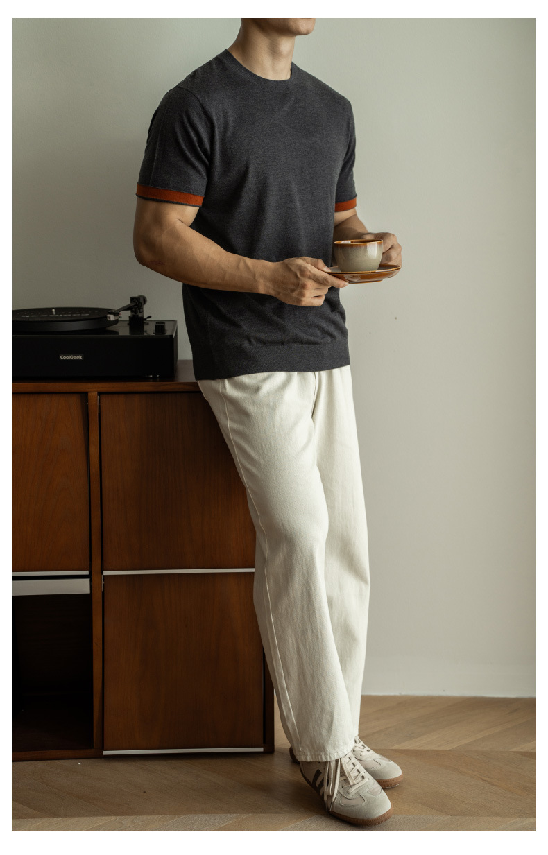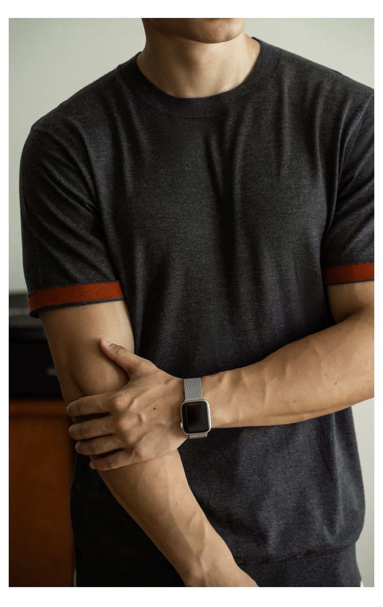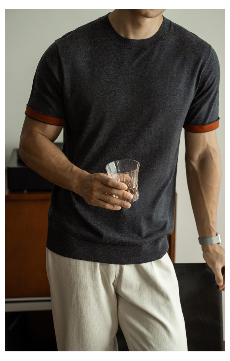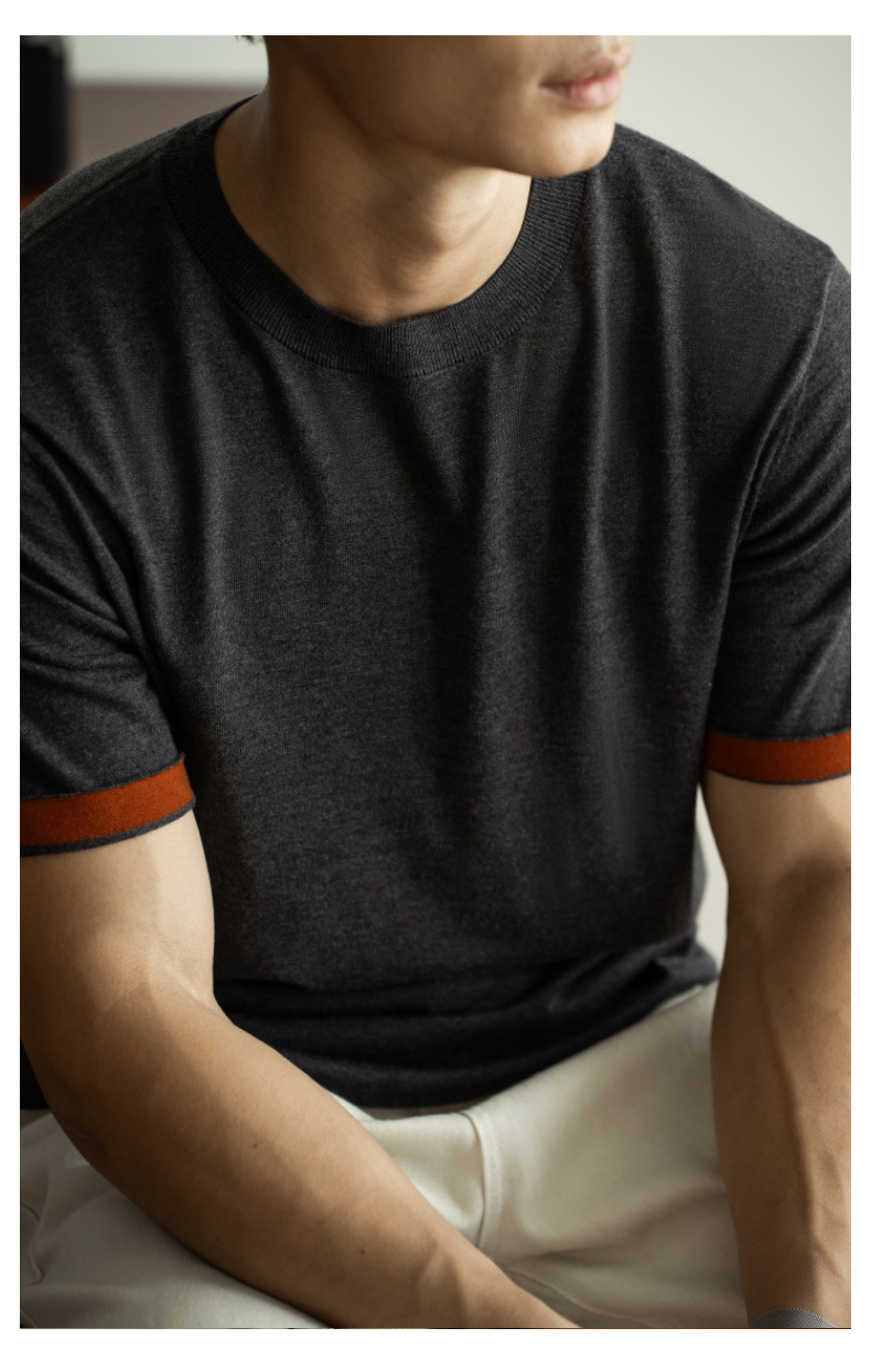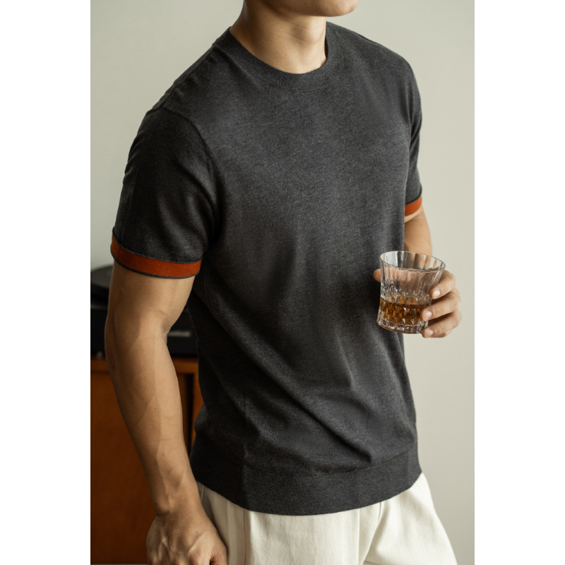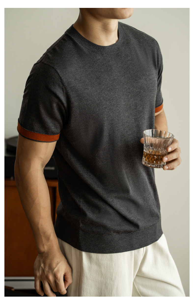 SONGNAN 뽕나무 실크 울 반팔 티셔츠 남성 비즈니스 캐주얼 내부 얇은 니트베이스 셔츠 겨울과 가을스토어 가기