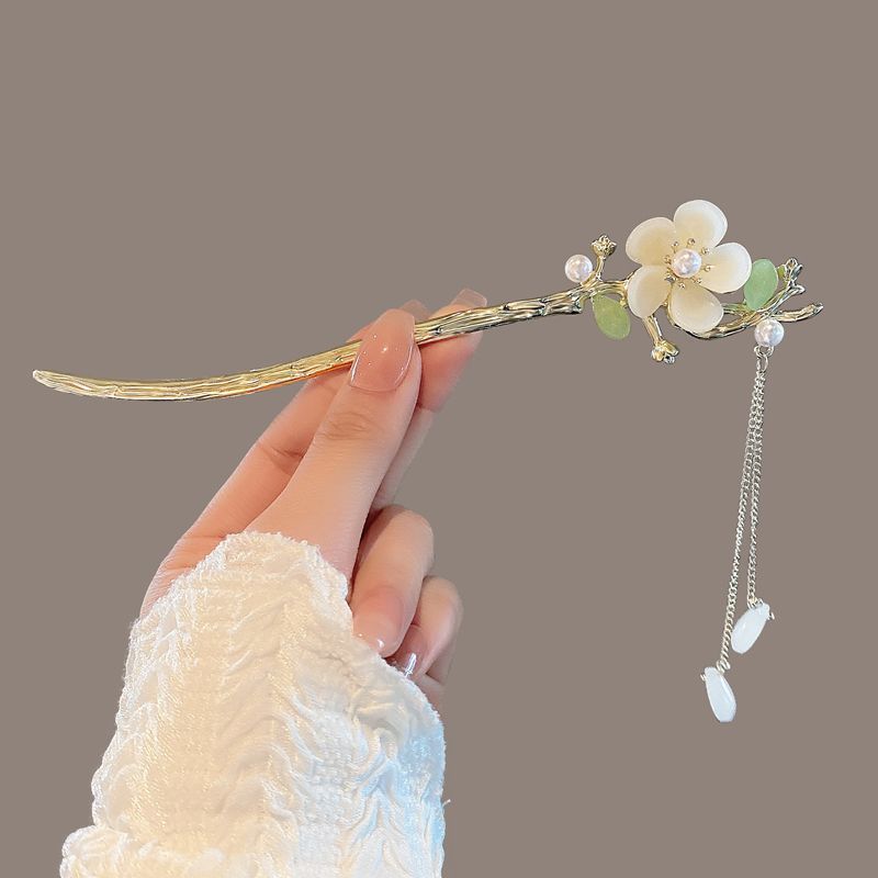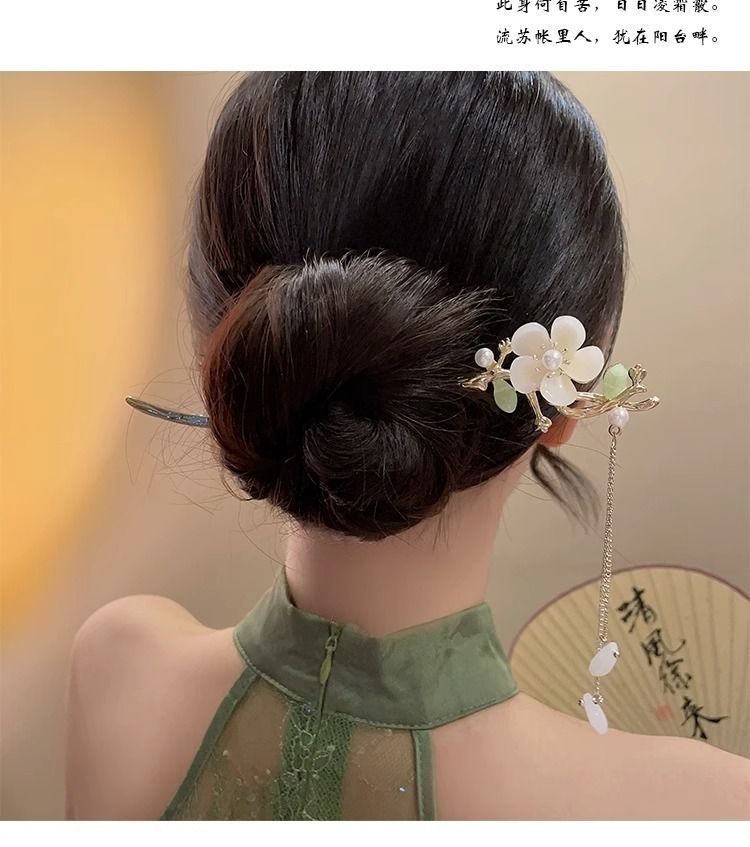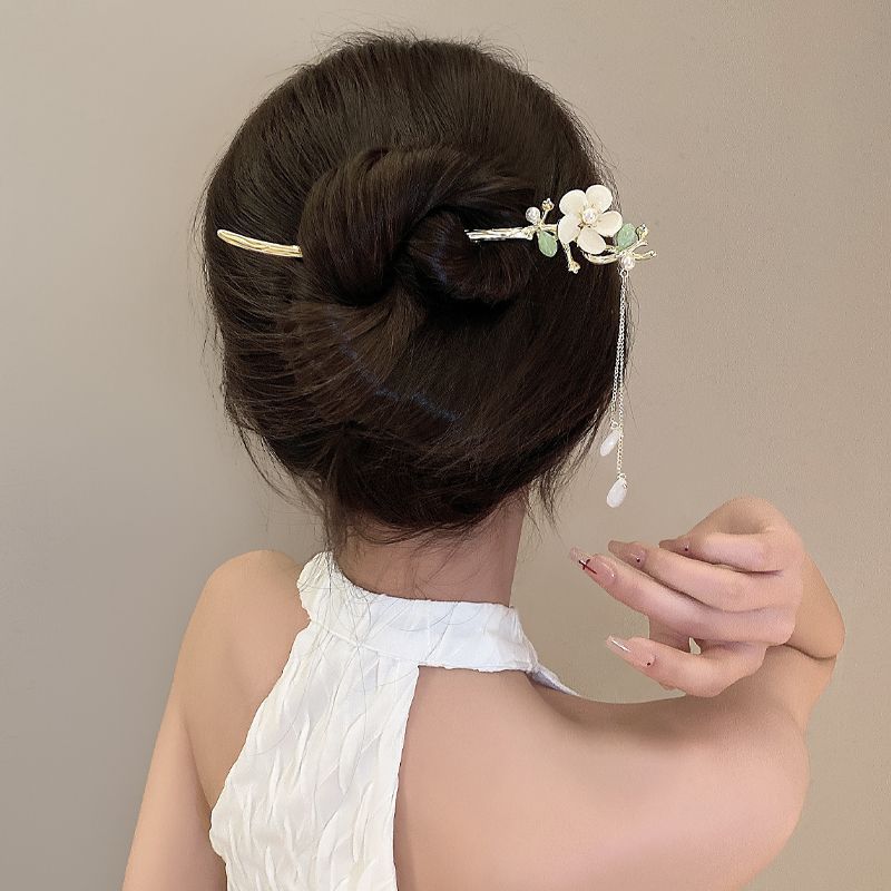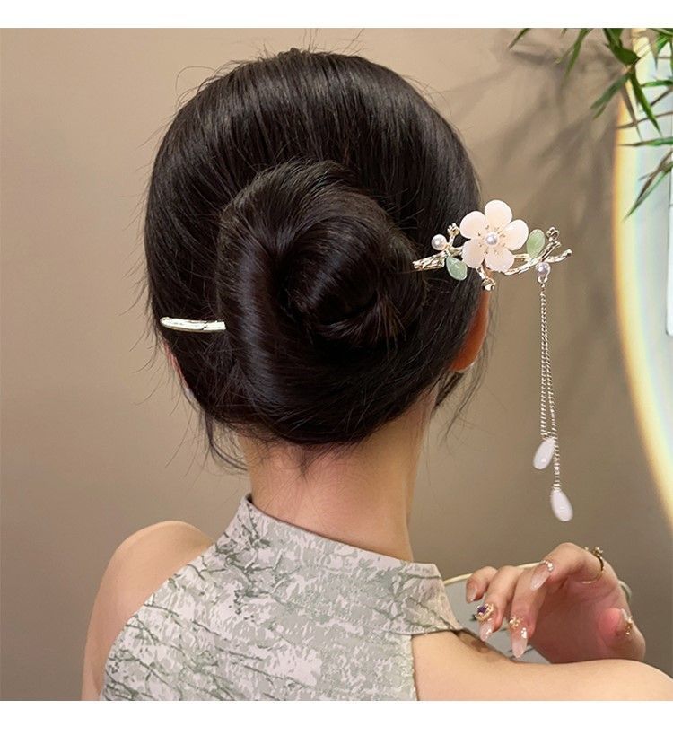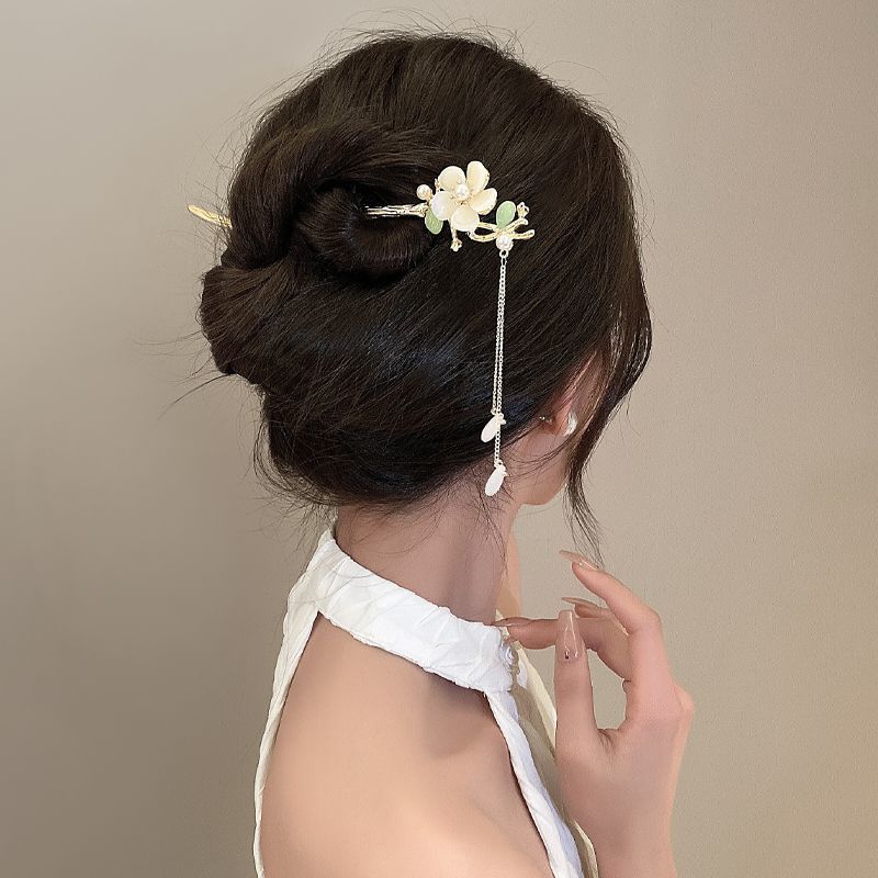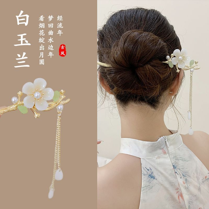 목련 꽃 진주 술 헤어핀 간단한 새로운 중국 스타일 디스크 헤어 쉐이크 헤어핀 골동품 한푸 청삼 액세서리 헤드웨어스토어 가기