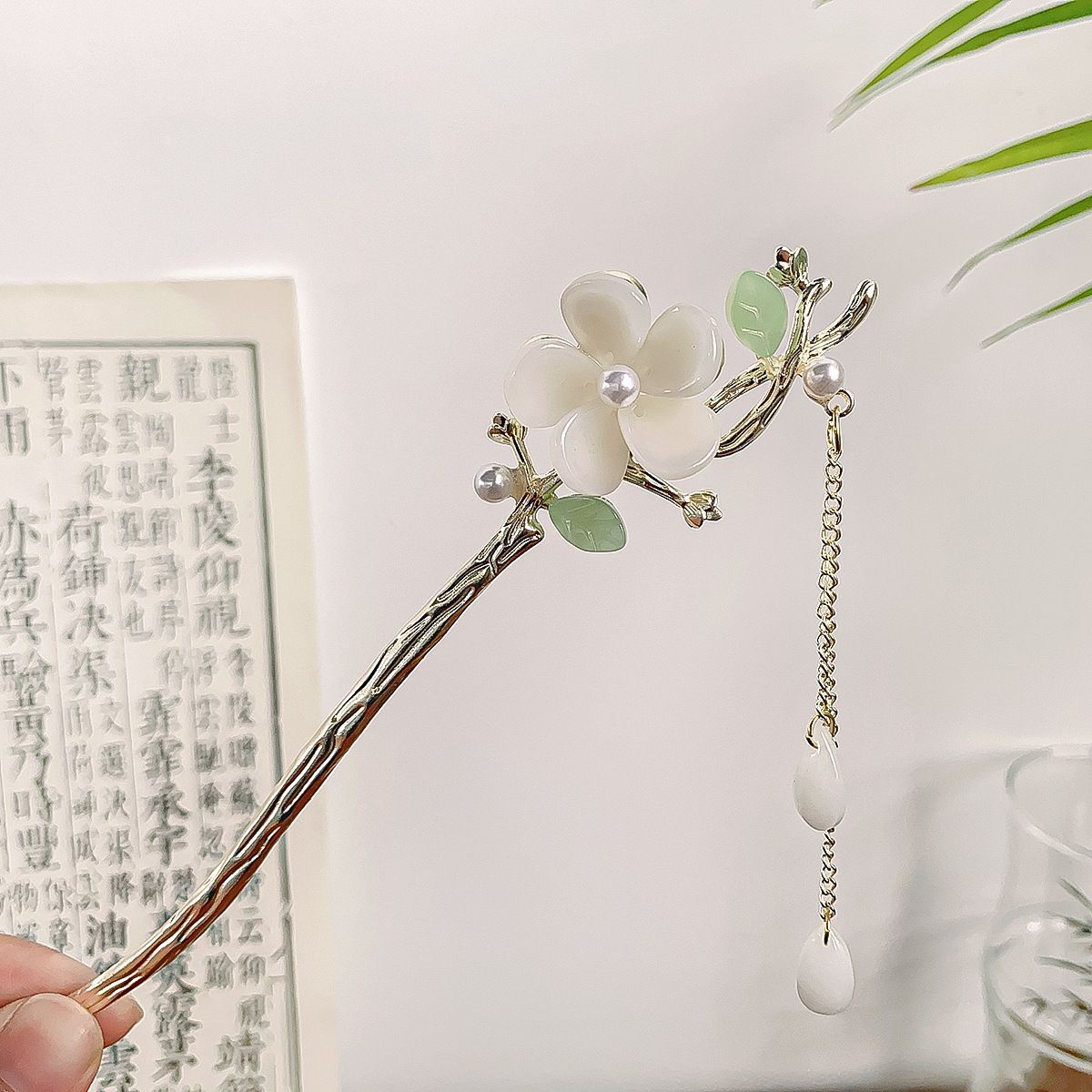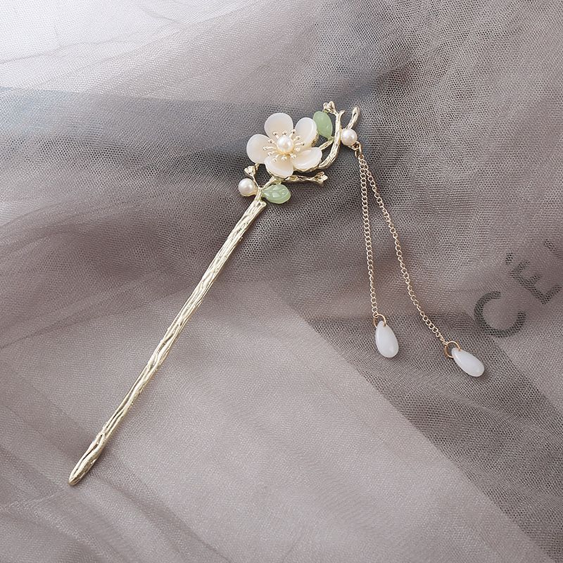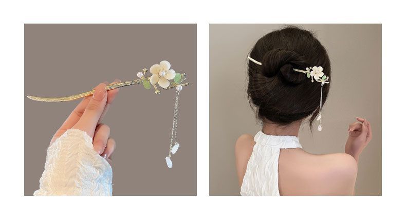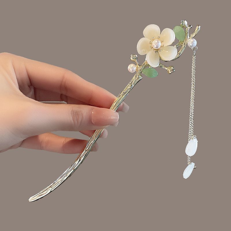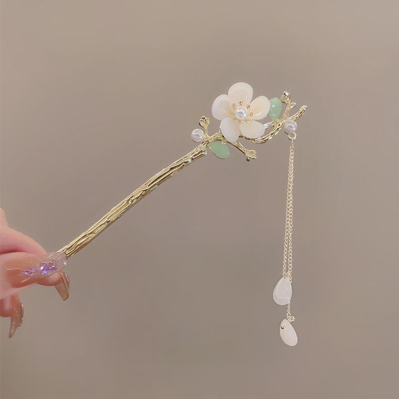 목련 꽃 진주 술 헤어핀 간단한 새로운 중국 스타일 디스크 헤어 쉐이크 헤어핀 골동품 한푸 청삼 액세서리 헤드웨어스토어 가기