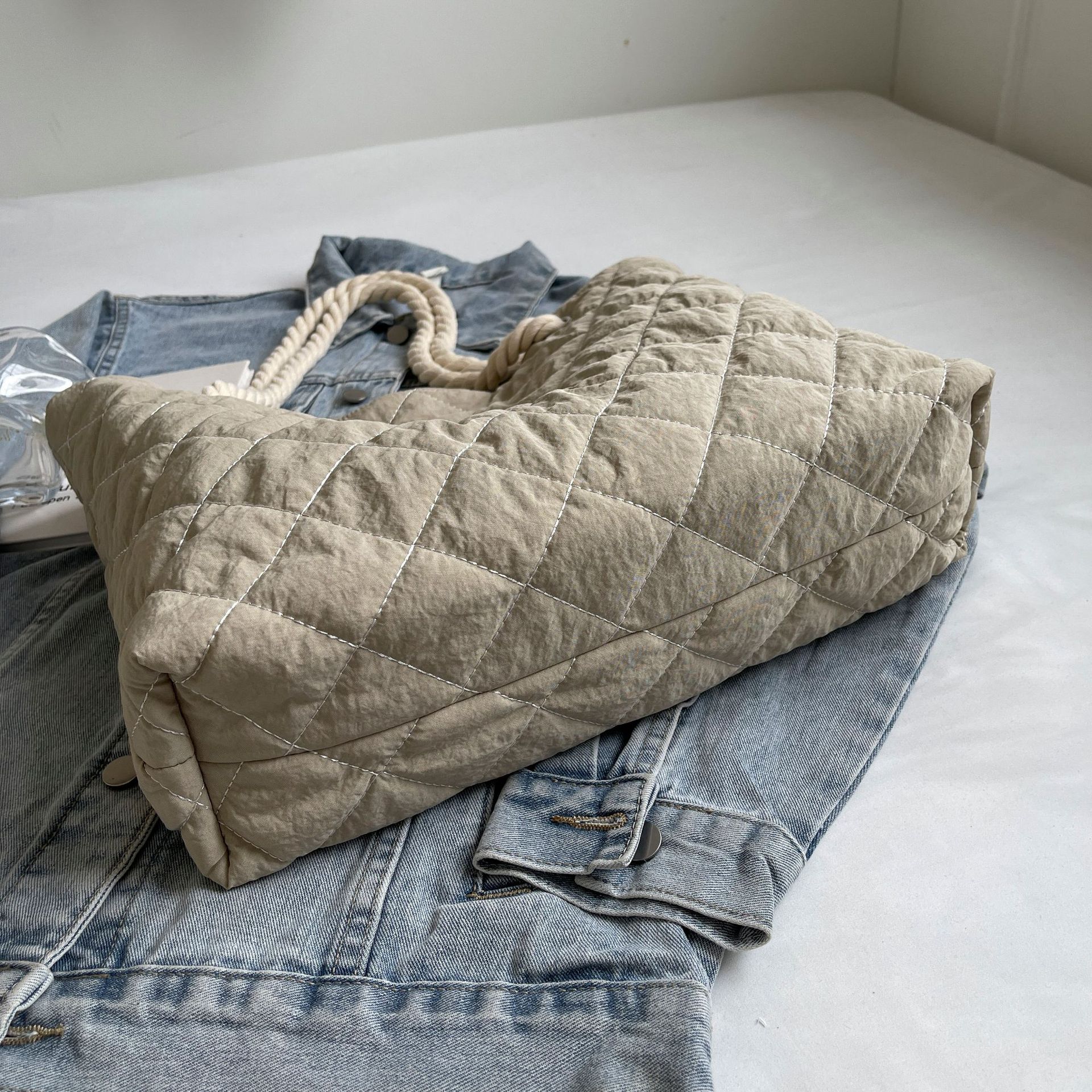 새로운 면 패딩 코트 가방 여성의 2024 새로운 대용량 Rhomboid 어깨 가방 한국식 캐주얼 토트 핸드백스토어 가기