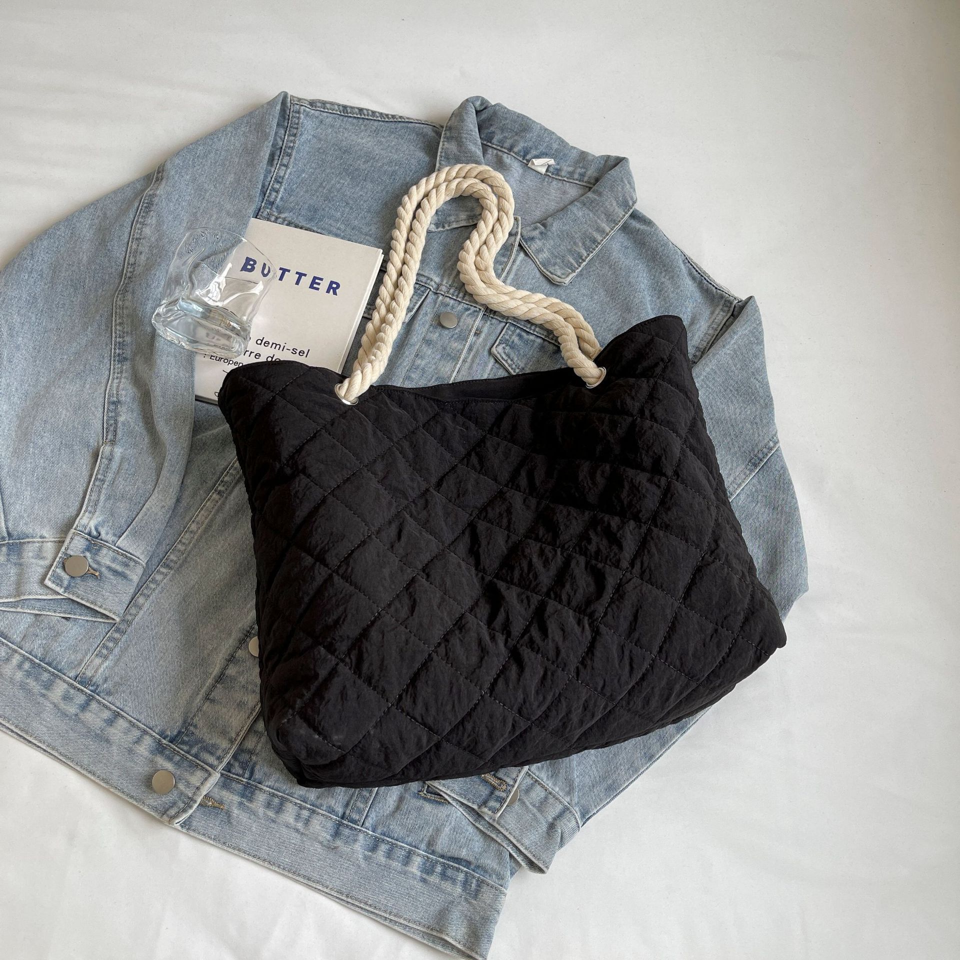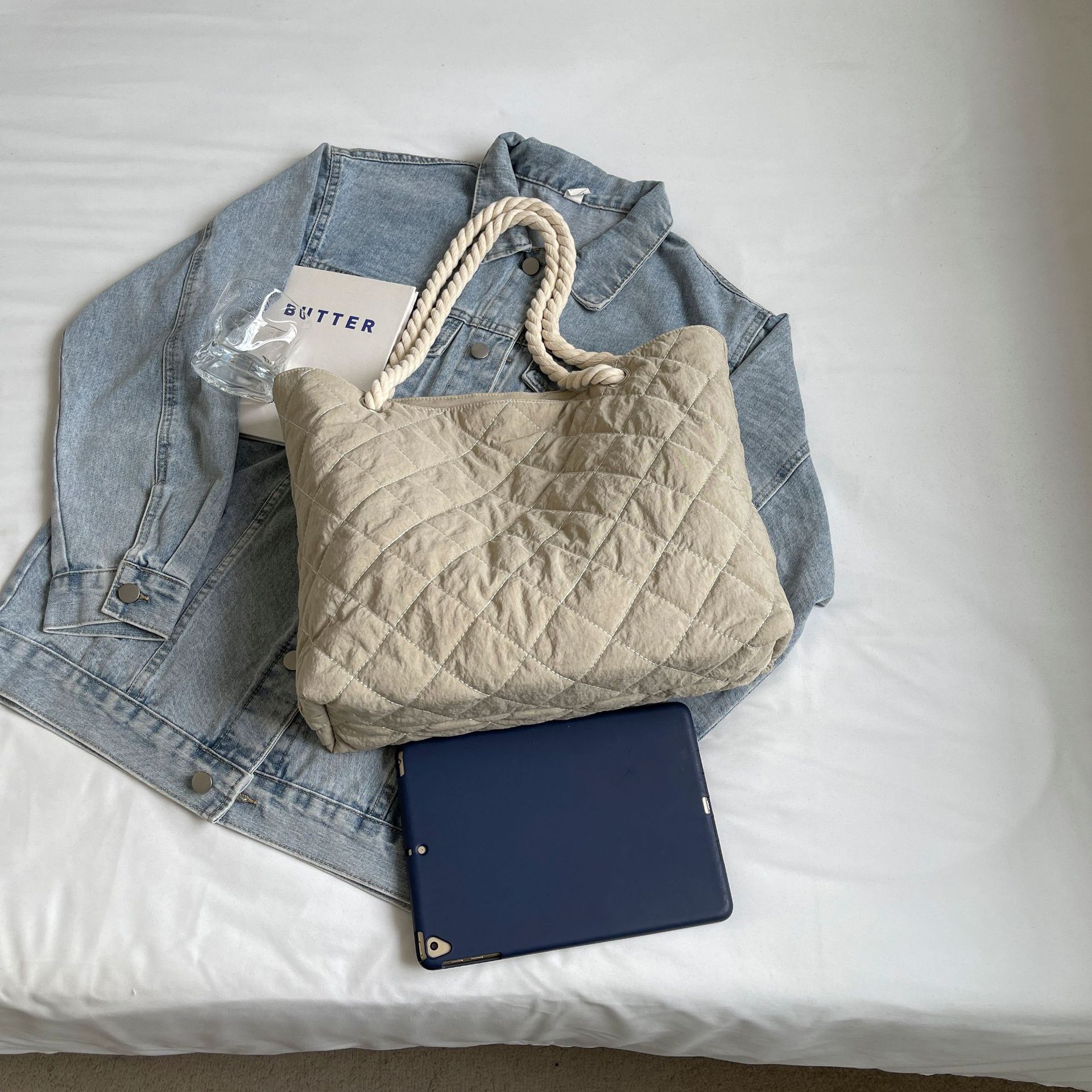 새로운 면 패딩 코트 가방 여성의 2024 새로운 대용량 Rhomboid 어깨 가방 한국식 캐주얼 토트 핸드백