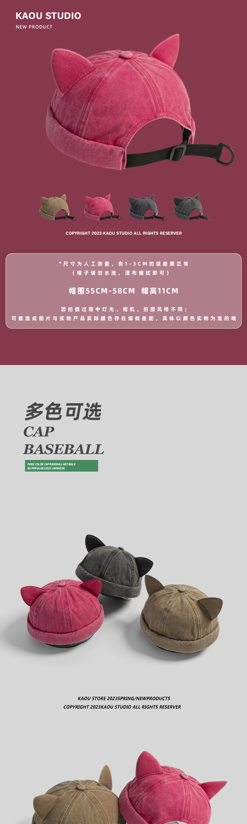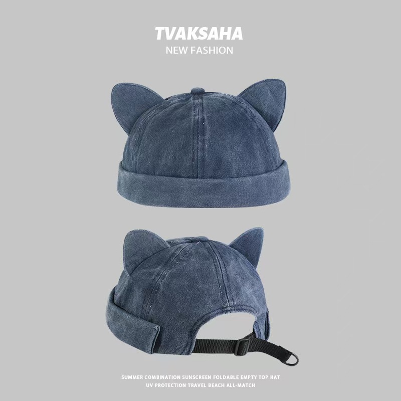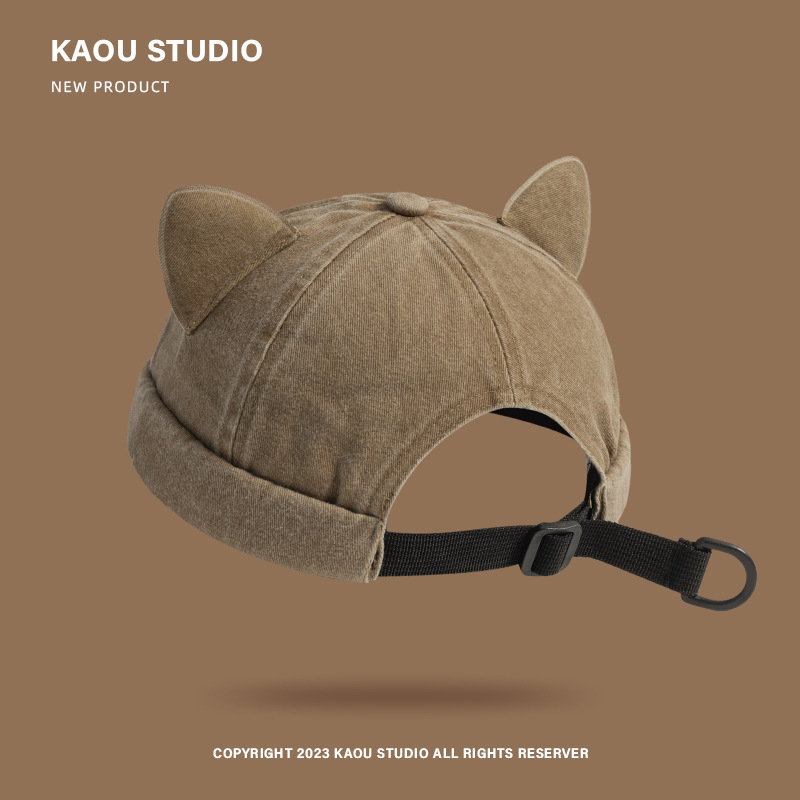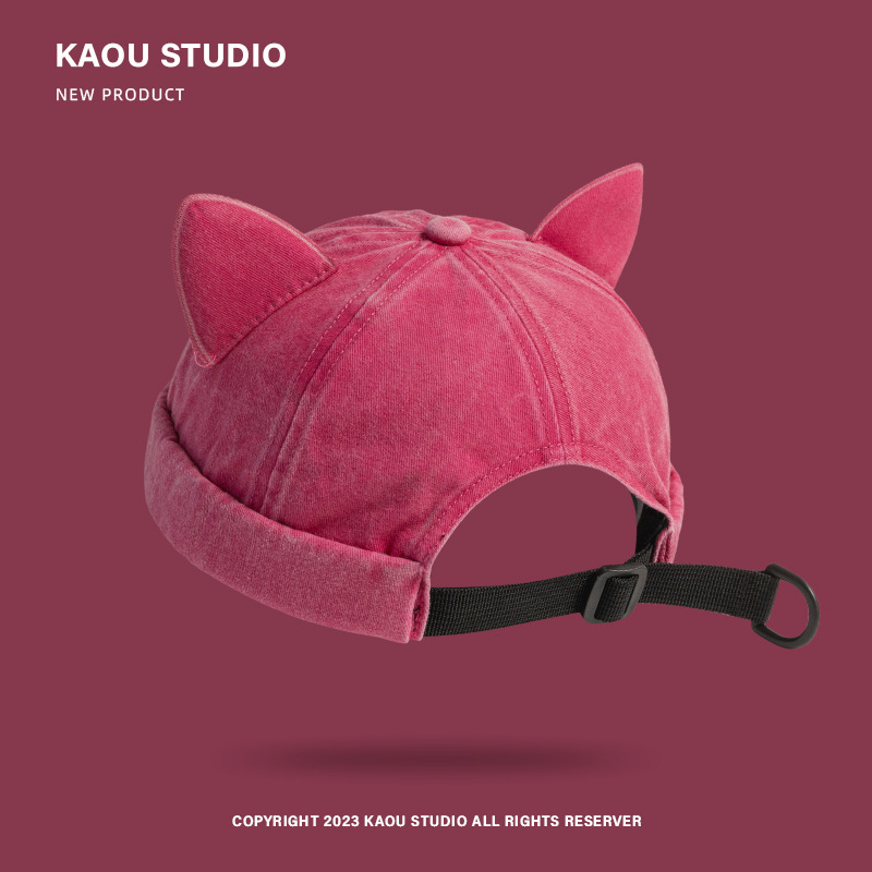 달콤한 귀여운 고양이 귀 바닥 모자 어린이 Ins 맞춤형 틈새 세척 오래 된 껍질 모자 트렌디 한 봄과 여름 올 매치