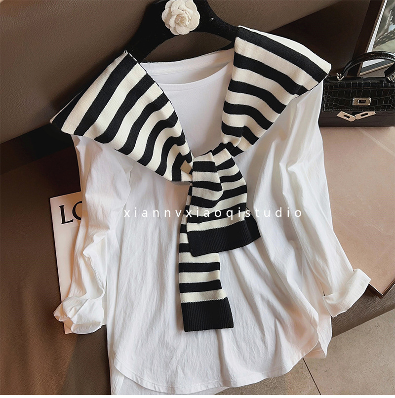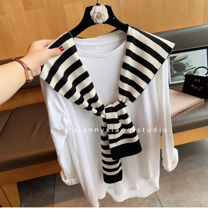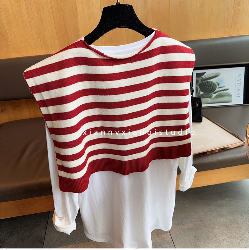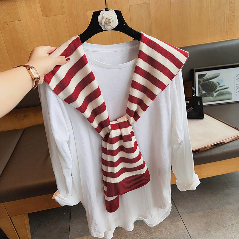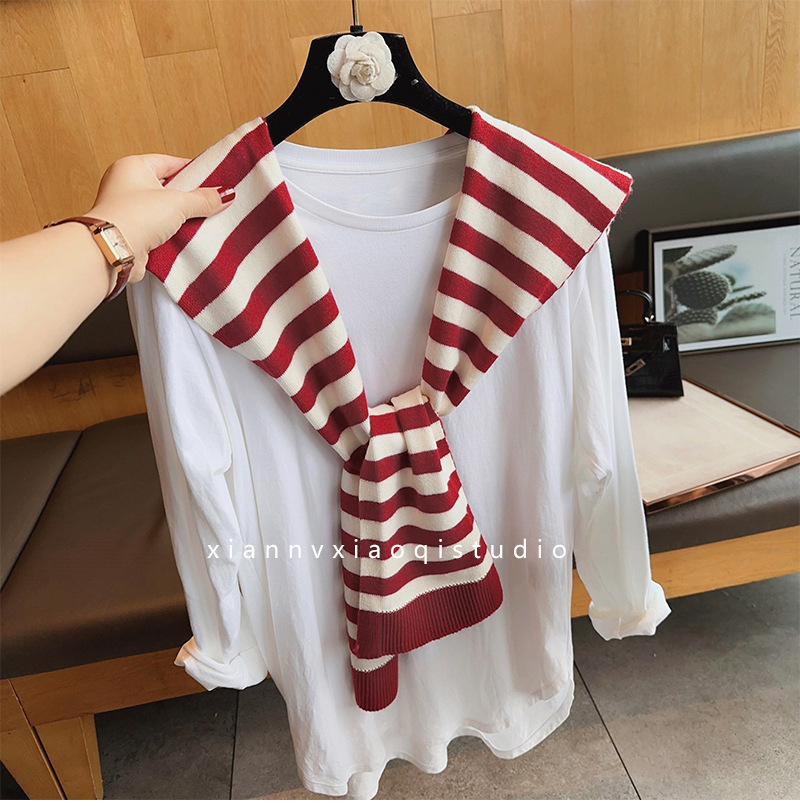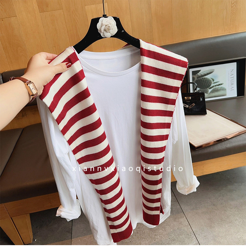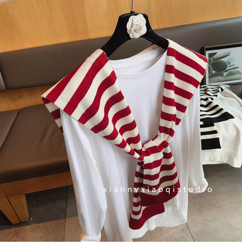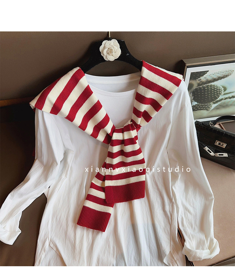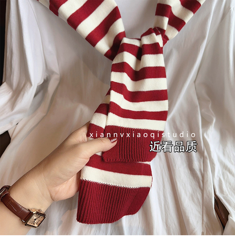 2024 새로운 도착 Ankora 붉은 줄무늬 니트 목도리 여성의 봄과 가을 서양 스타일 스카프 어깨 윈치 목과 어깨 가위스토어 가기