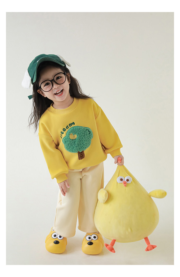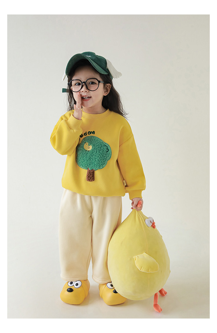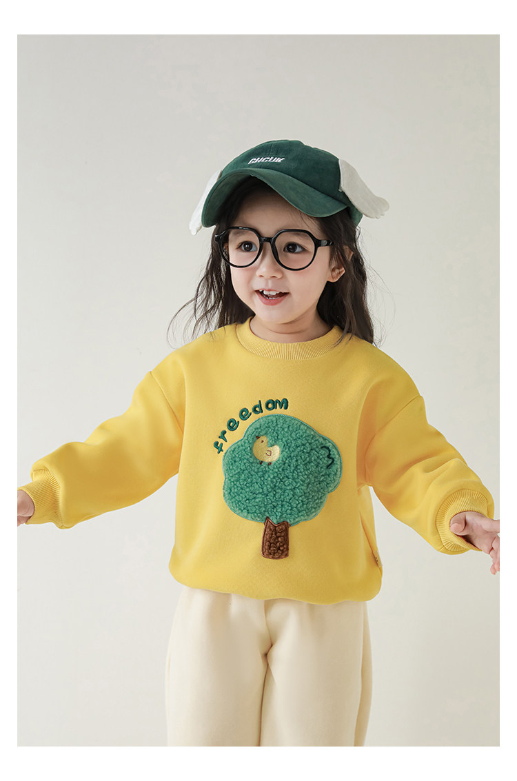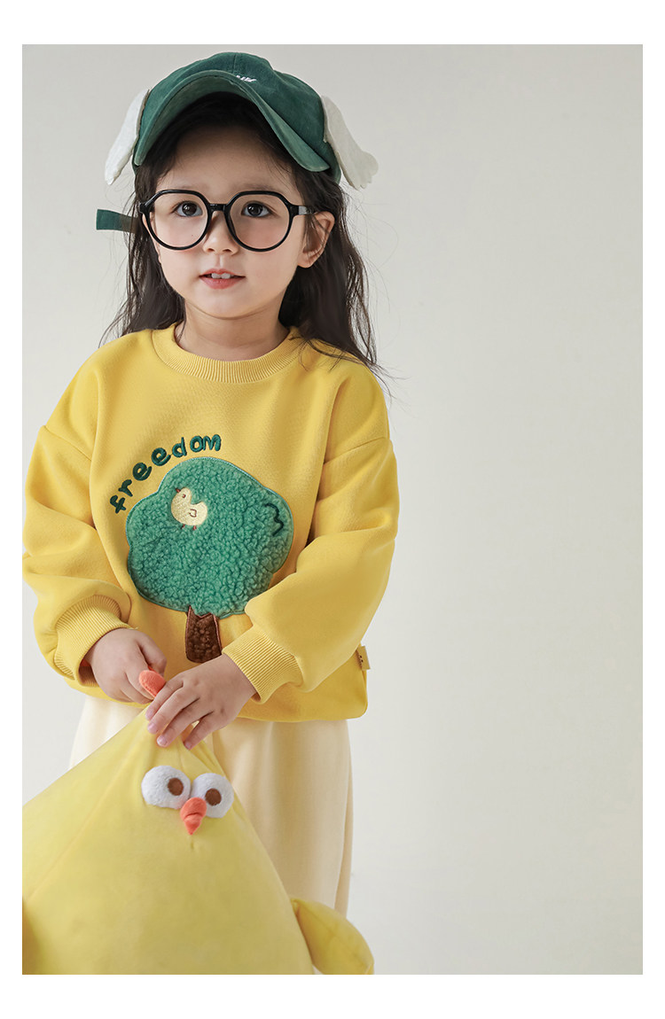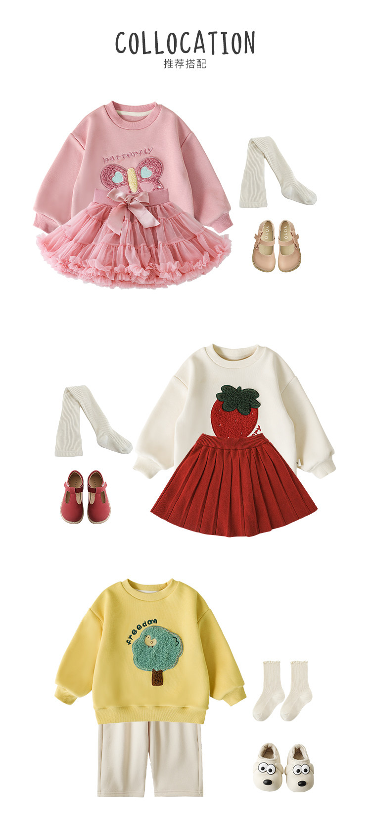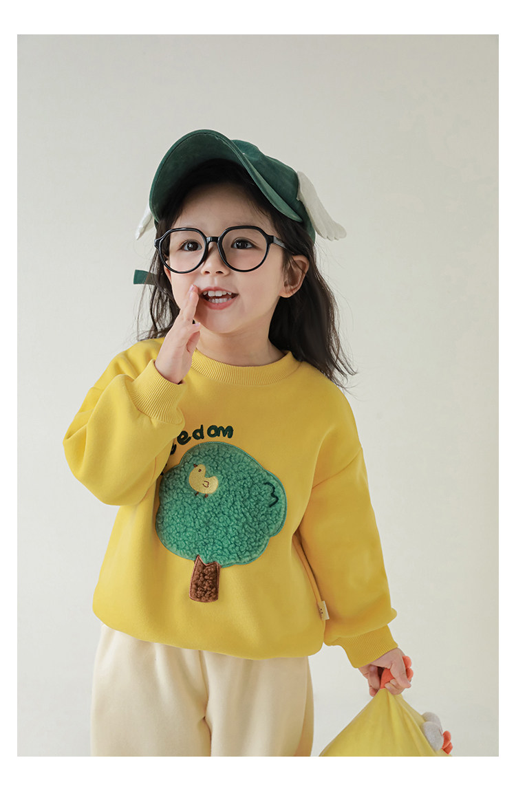 Wuri Boo Girl의 자수 콘트라스트 컬러 사진 기모 땀 겨울 어린이 장난스럽고 활기찬 캐주얼 루즈 탑