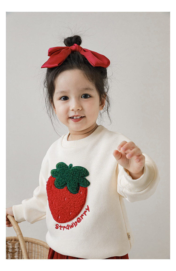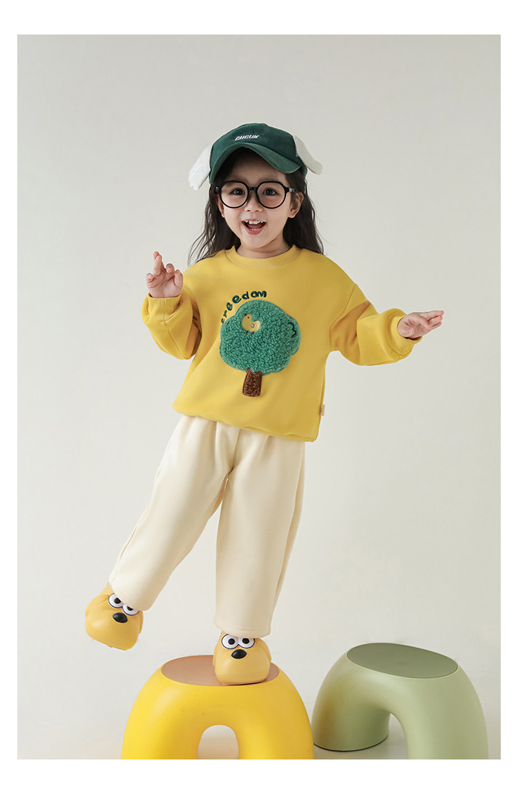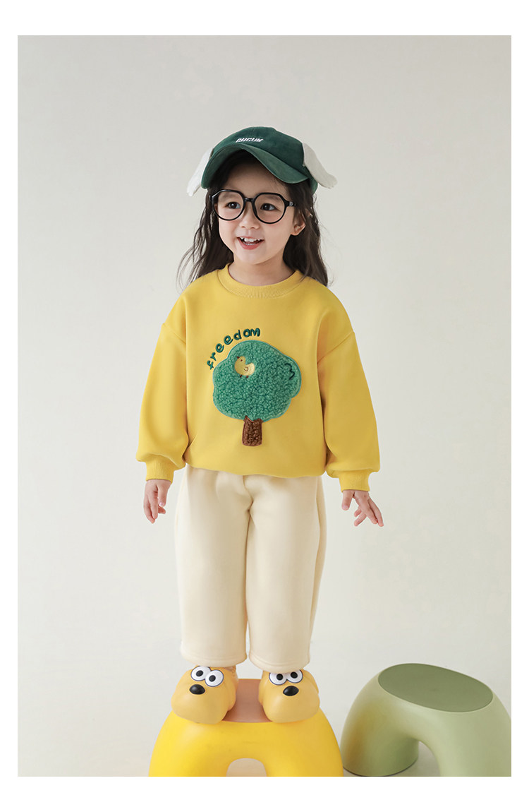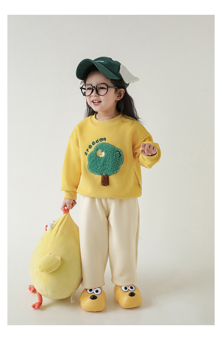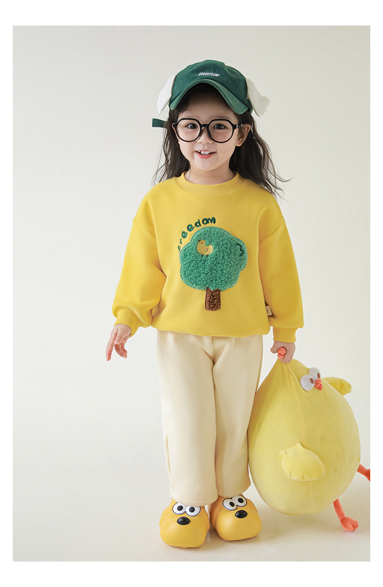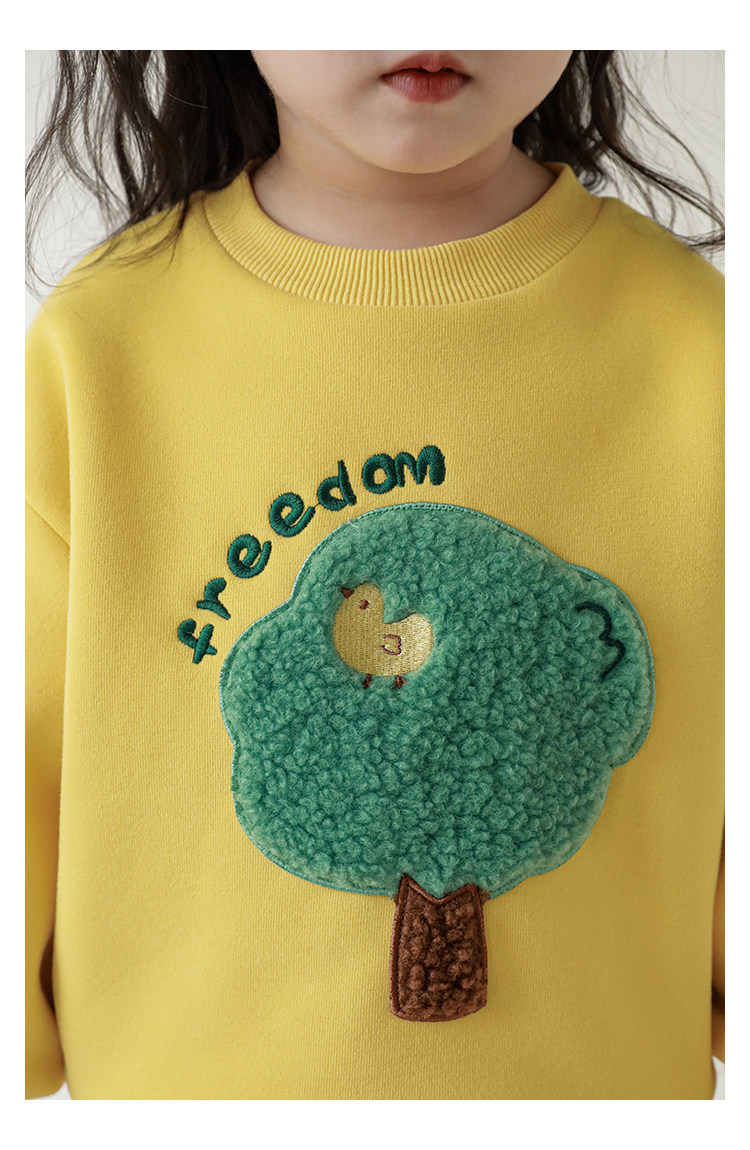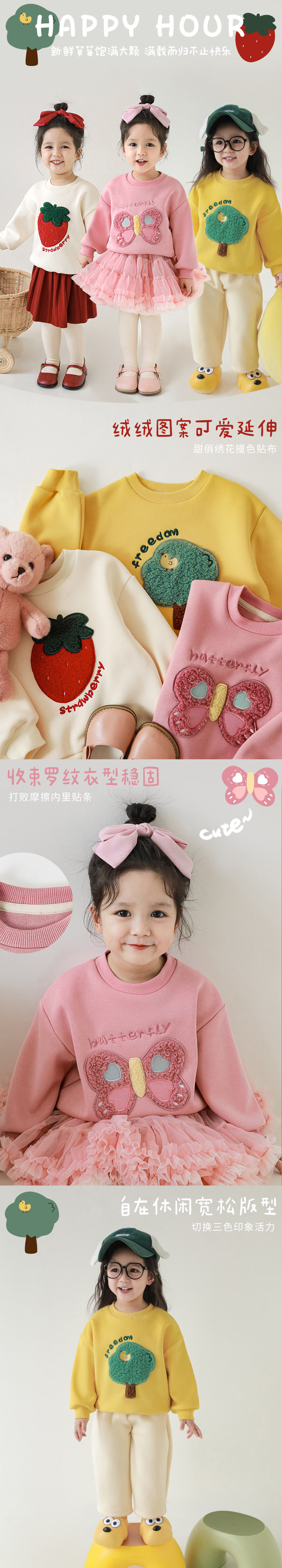 Wuri Boo Girl의 자수 콘트라스트 컬러 사진 기모 땀 겨울 어린이 장난스럽고 활기찬 캐주얼 루즈 탑