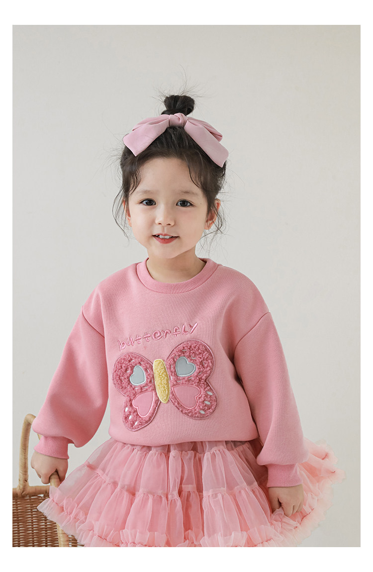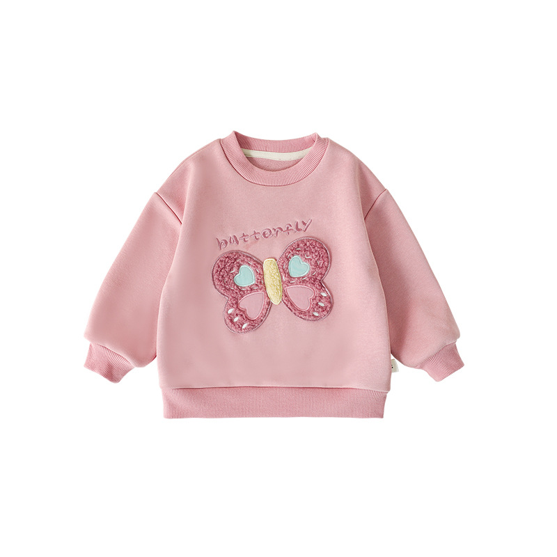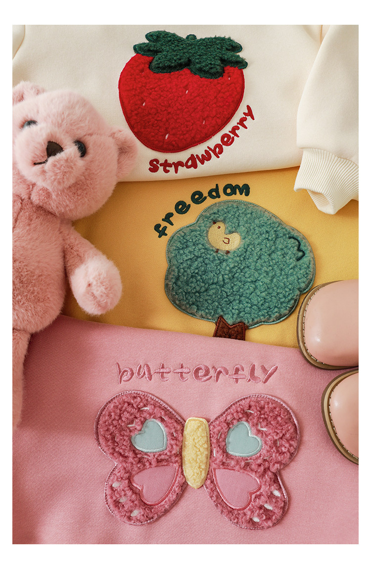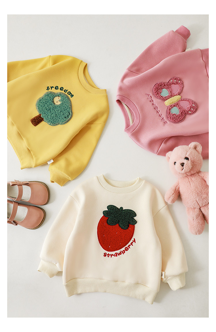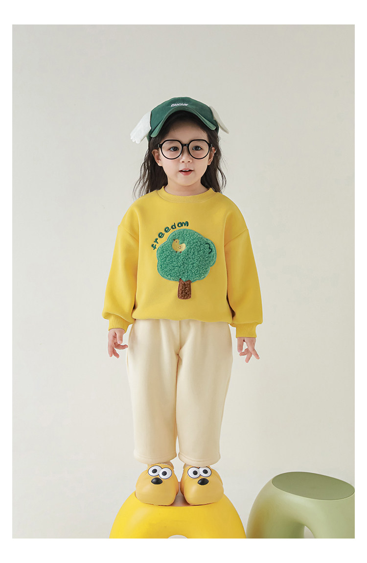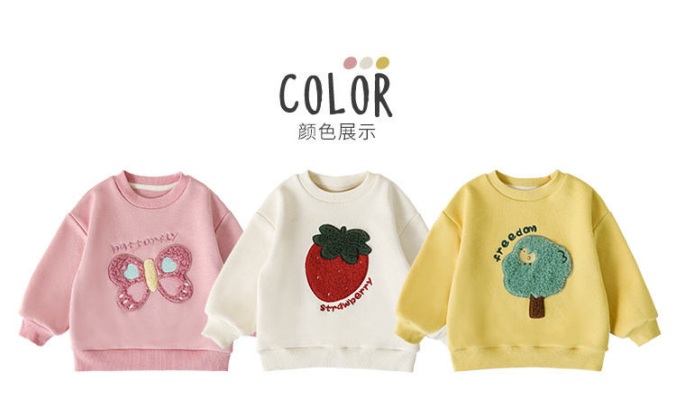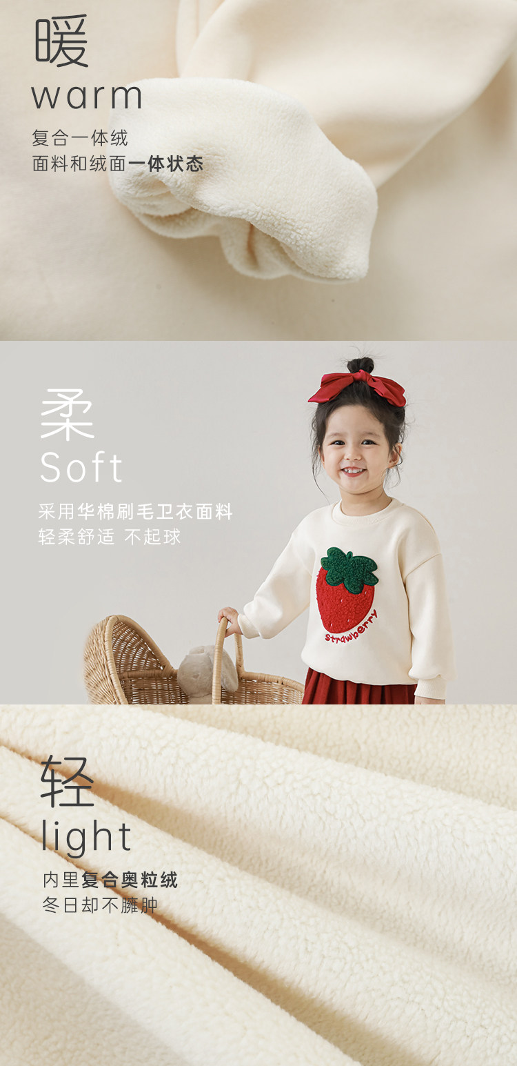 Wuri Boo Girl의 자수 콘트라스트 컬러 사진 기모 땀 겨울 어린이 장난스럽고 활기찬 캐주얼 루즈 탑
