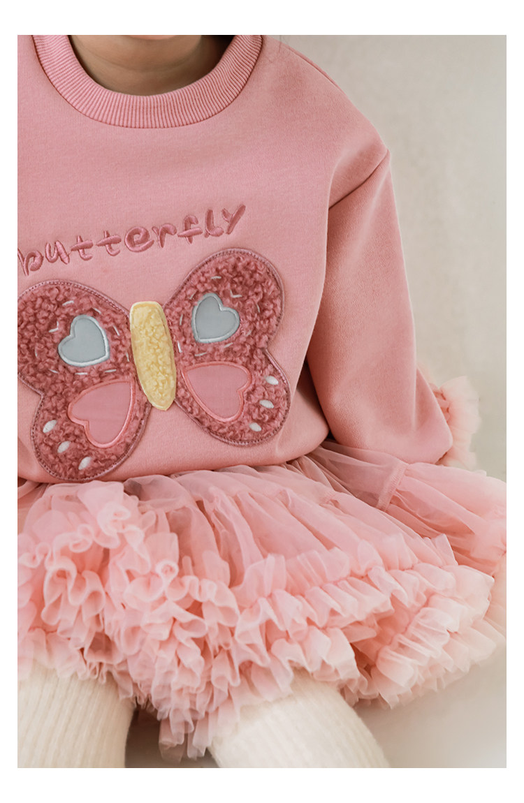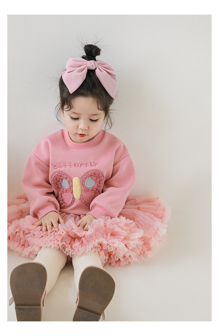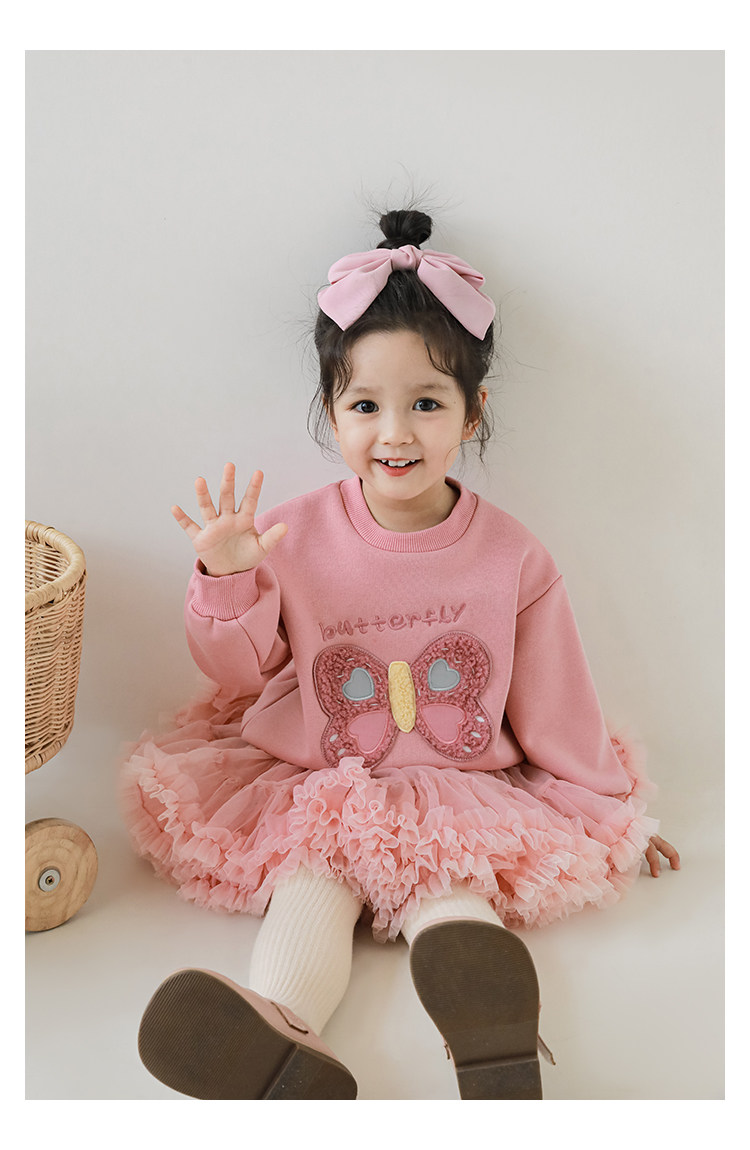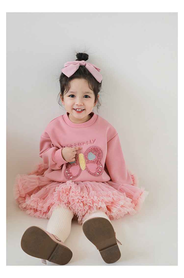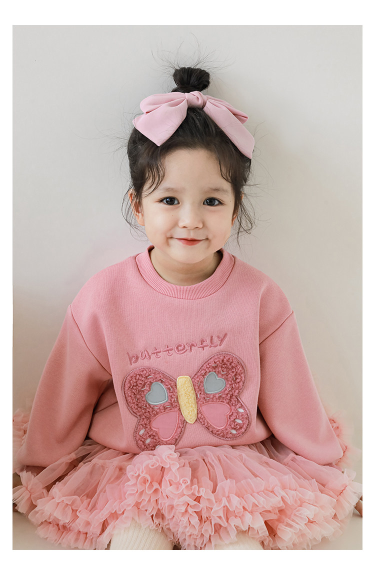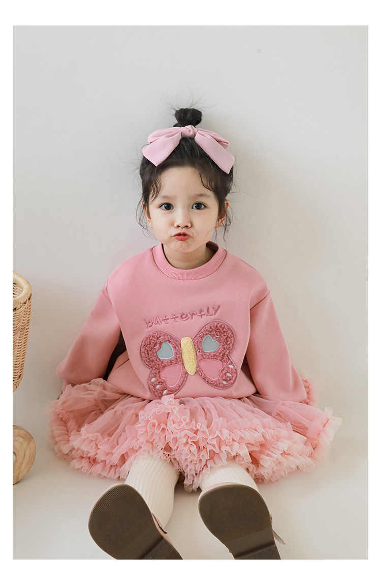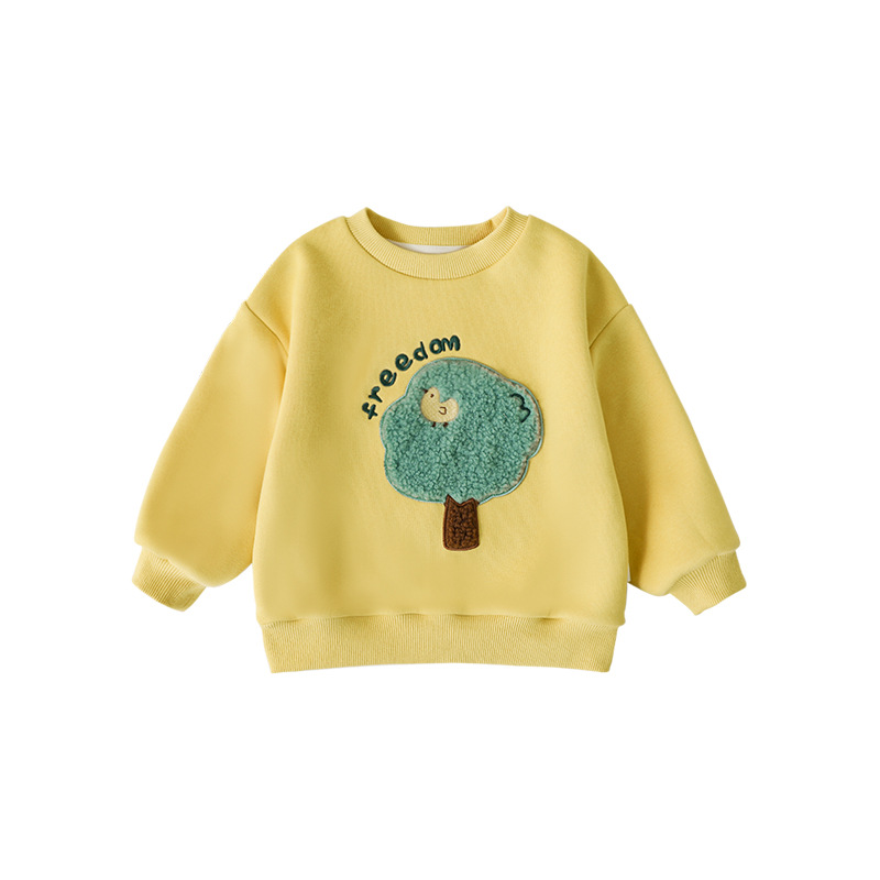 Wuri Boo Girl의 자수 콘트라스트 컬러 사진 기모 땀 겨울 어린이 장난스럽고 활기찬 캐주얼 루즈 탑