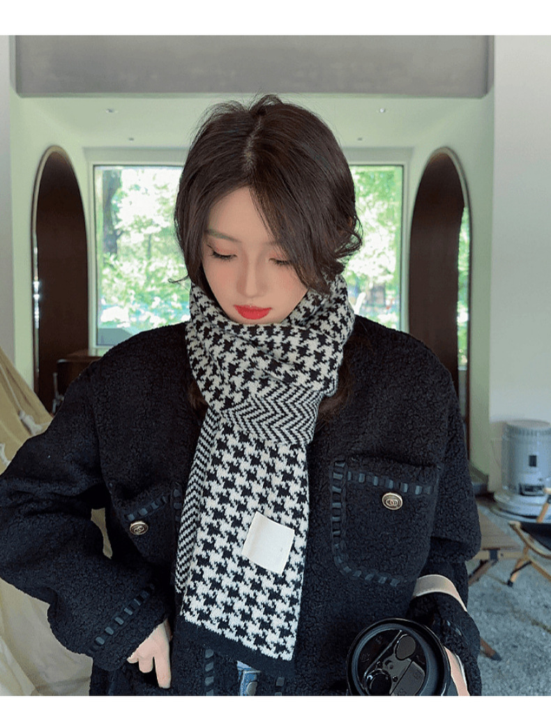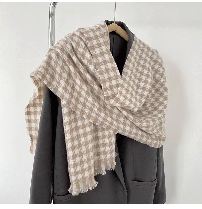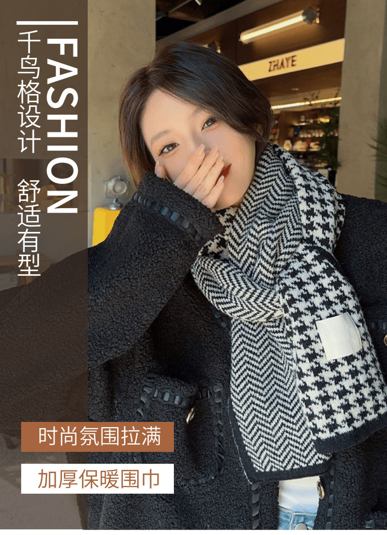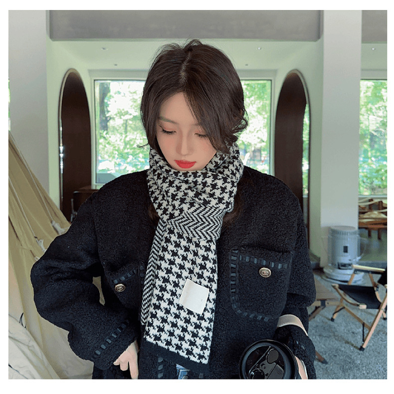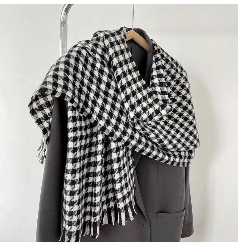 여성용 물떼새 격자 스카프 두꺼운 ins 스타일 가을, 겨울 방풍 및 방한 따뜻한 목 보호 숄 한국 스타일 니트 스카프스토어 가기