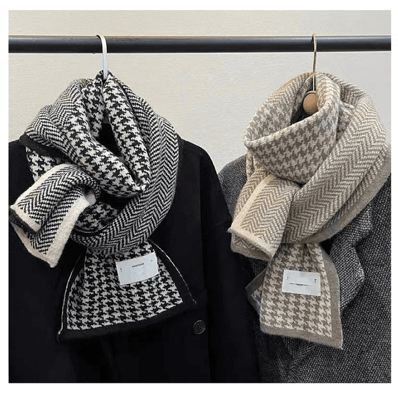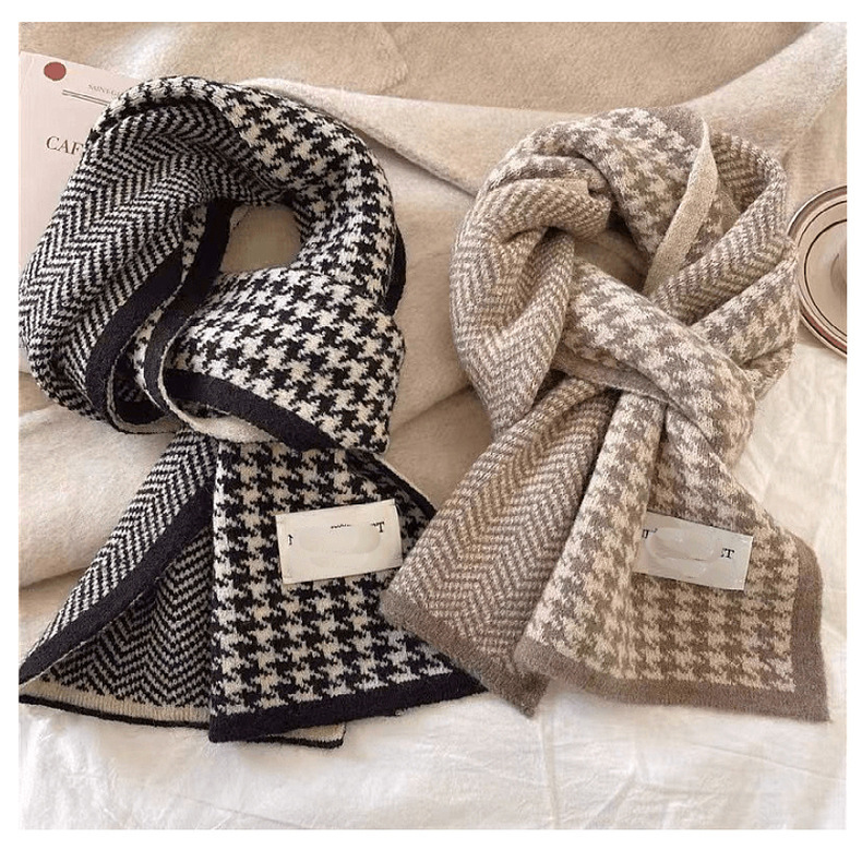 여성용 물떼새 격자 스카프 두꺼운 ins 스타일 가을, 겨울 방풍 및 방한 따뜻한 목 보호 숄 한국 스타일 니트 스카프