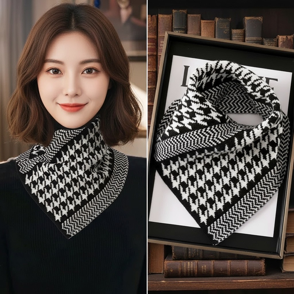 • 삼각 스카프 - 블랙 하운즈투스 체크