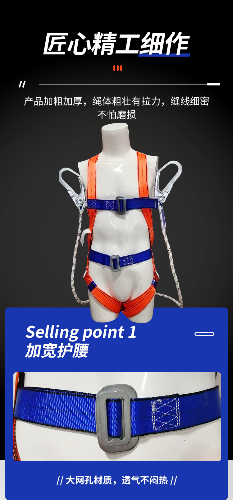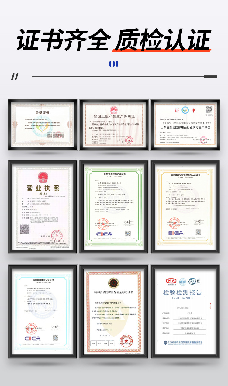 폴리 에스테르 유럽 스타일 버퍼 더블 대형 후크 높은 고도 작업 안전 벨트 안티 낙하 바디 5 점 안전 벨트 도매