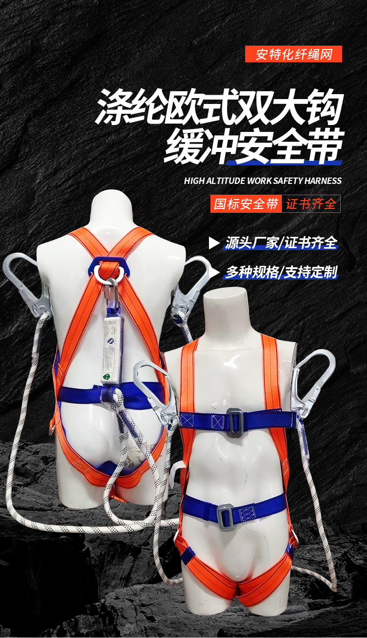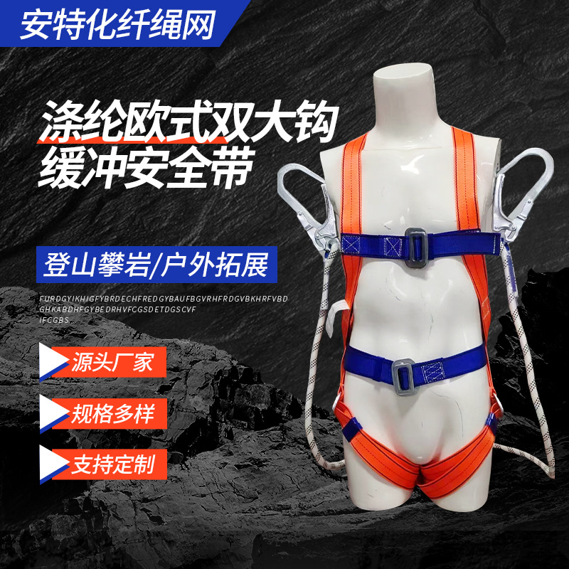 폴리 에스테르 유럽 스타일 버퍼 더블 대형 후크 높은 고도 작업 안전 벨트 안티 낙하 바디 5 점 안전 벨트 도매스토어 가기