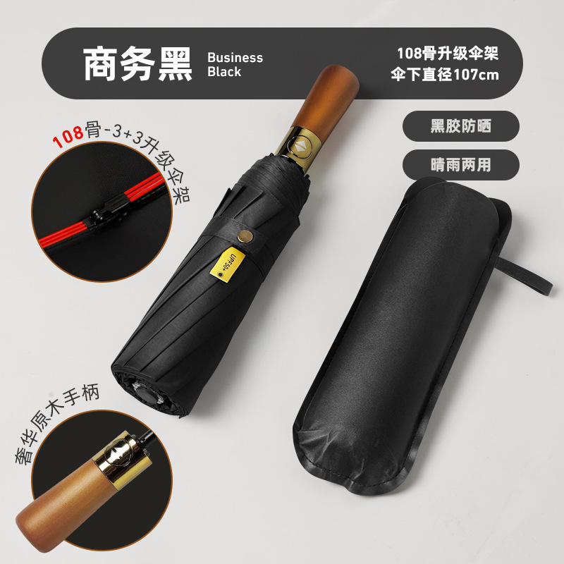 완전 자동 나무 손잡이 우산 고급 감각 3 용 뼈 검은 접착제 선 스크린 방풍 남성 비즈니스 광고 맞춤형 써니 우산