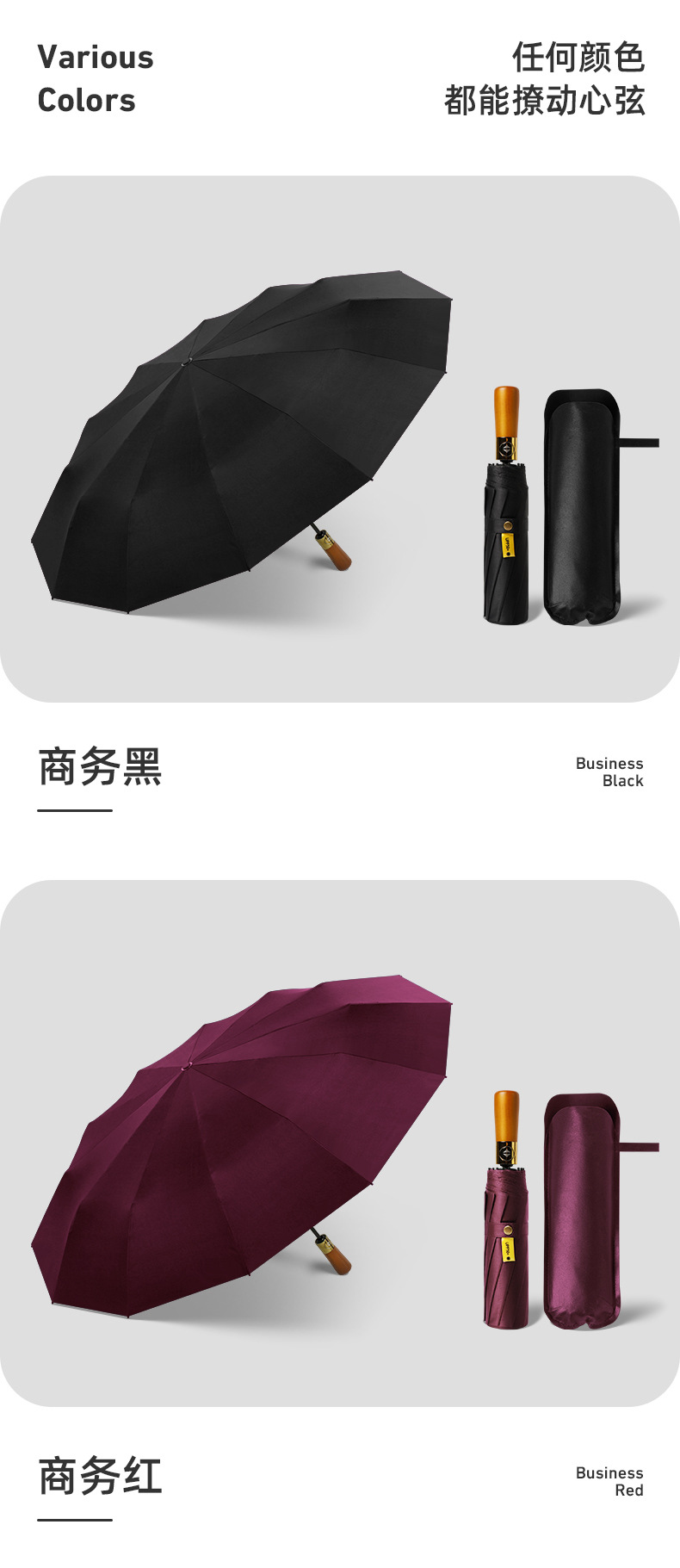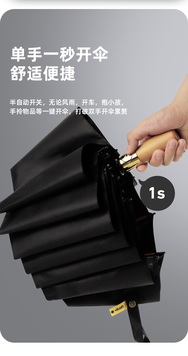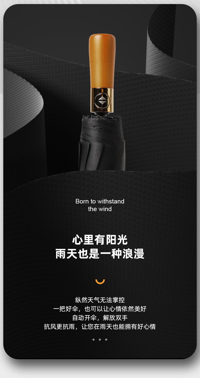완전 자동 나무 손잡이 우산 고급 감각 3 용 뼈 검은 접착제 선 스크린 방풍 남성 비즈니스 광고 맞춤형 써니 우산스토어 가기