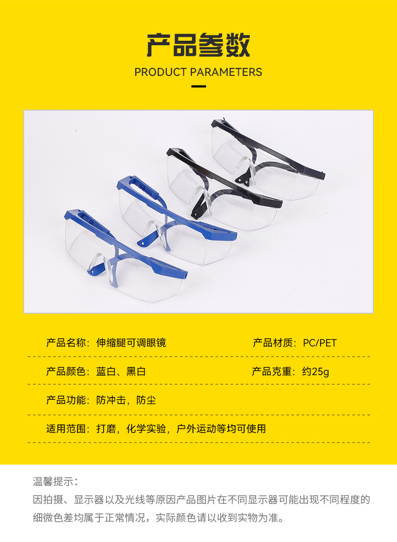 텔레스코픽 다리 조절 가능한 안경 도매 산업 노동 보호 고글 보호 눈 실험실 안개 방지 안경 방진 안경