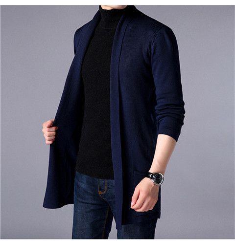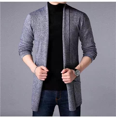 가을과 겨울 남자 니트 카디건 스웨터 남자 코트 청소년 한국 스타일 의상 중간 길이의 독특한 망토 남성복스토어 가기