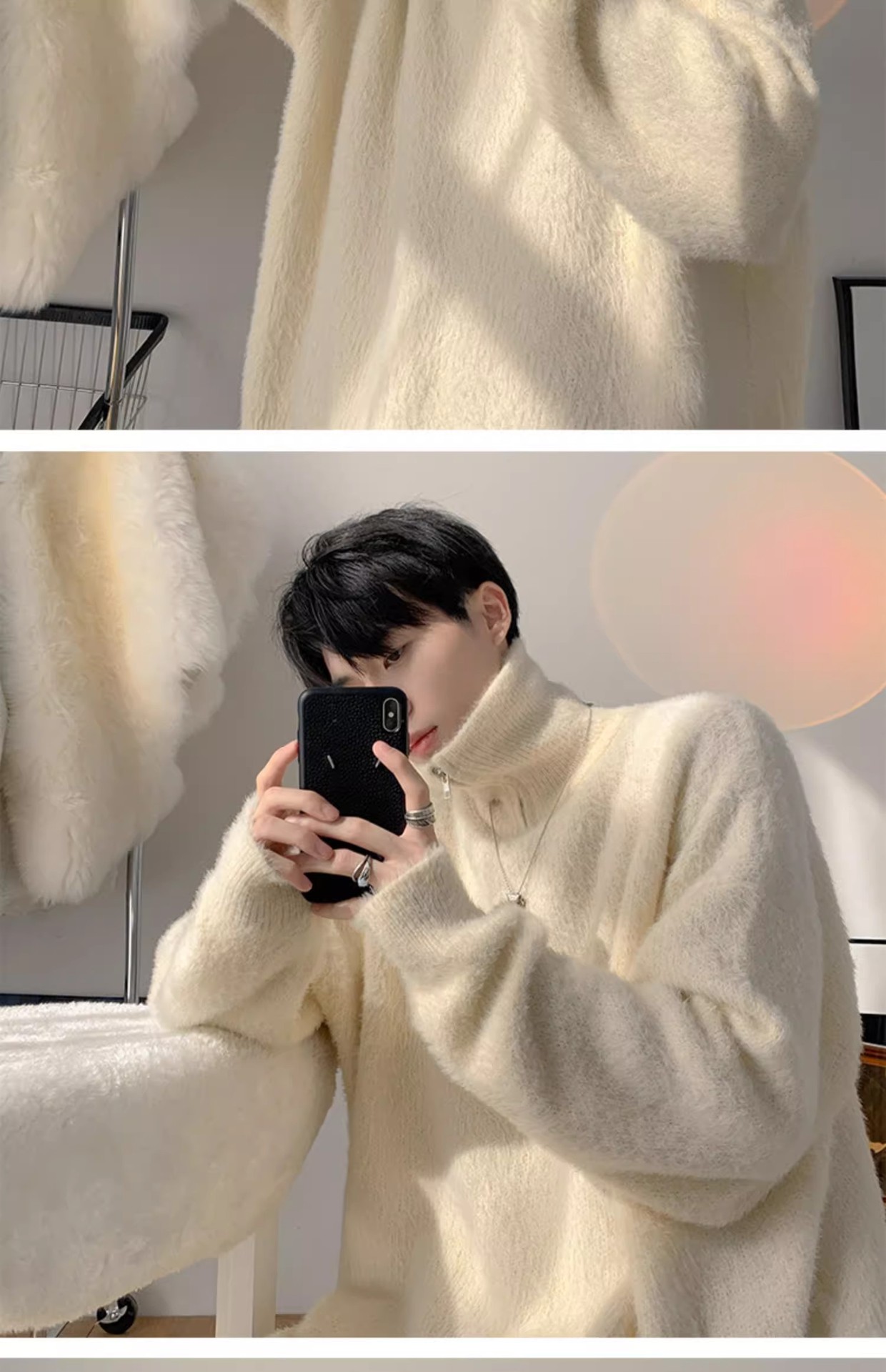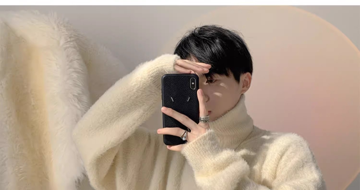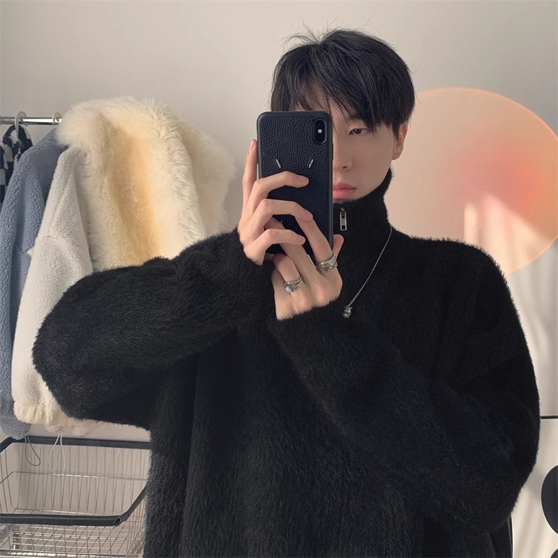 남자 하프 터틀넥 스웨터 가을과 겨울 두꺼운 느슨한 유행 브랜드 고급 니트웨어 게으른 스타일 하프 지퍼 재킷스토어 가기