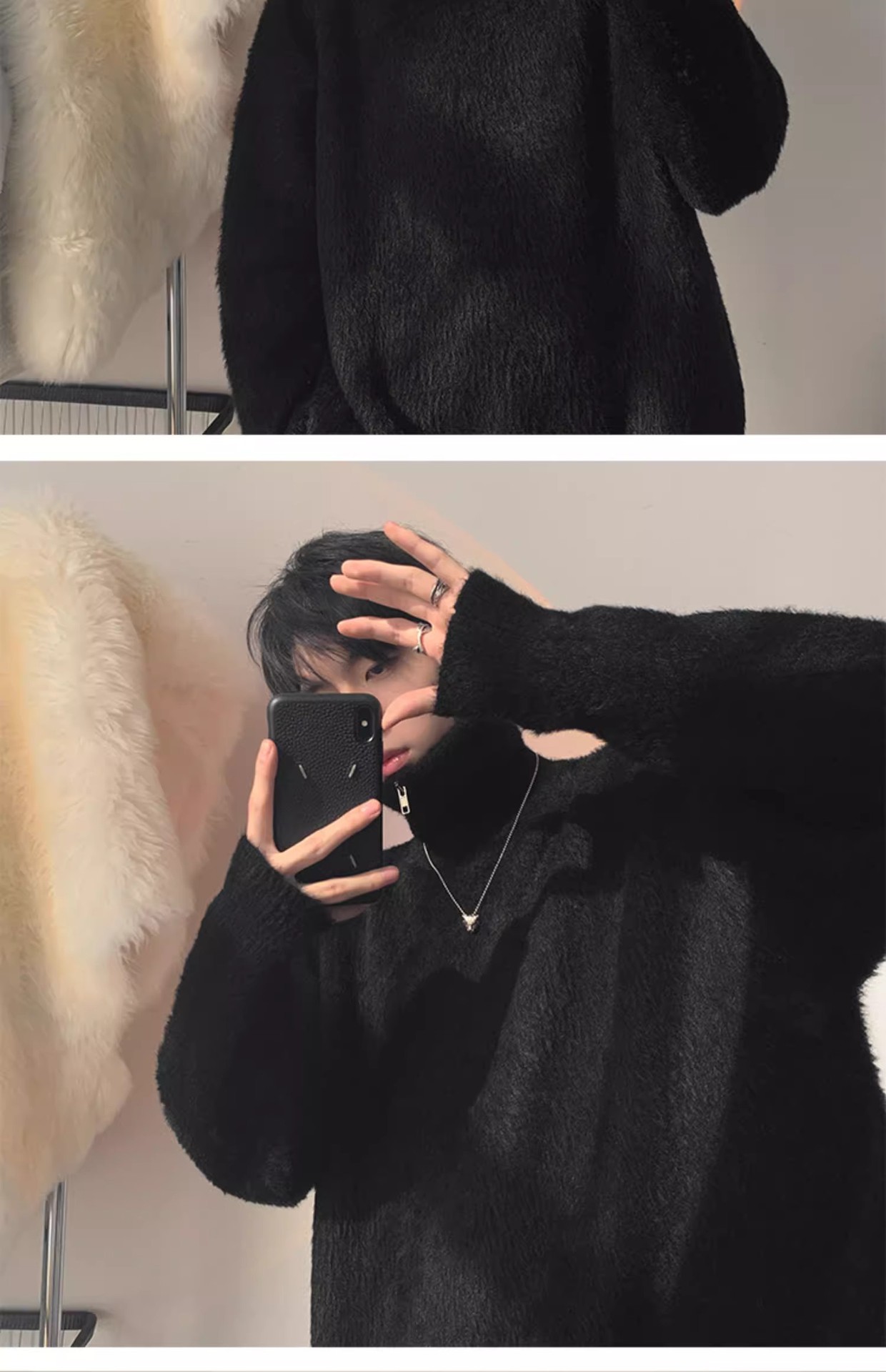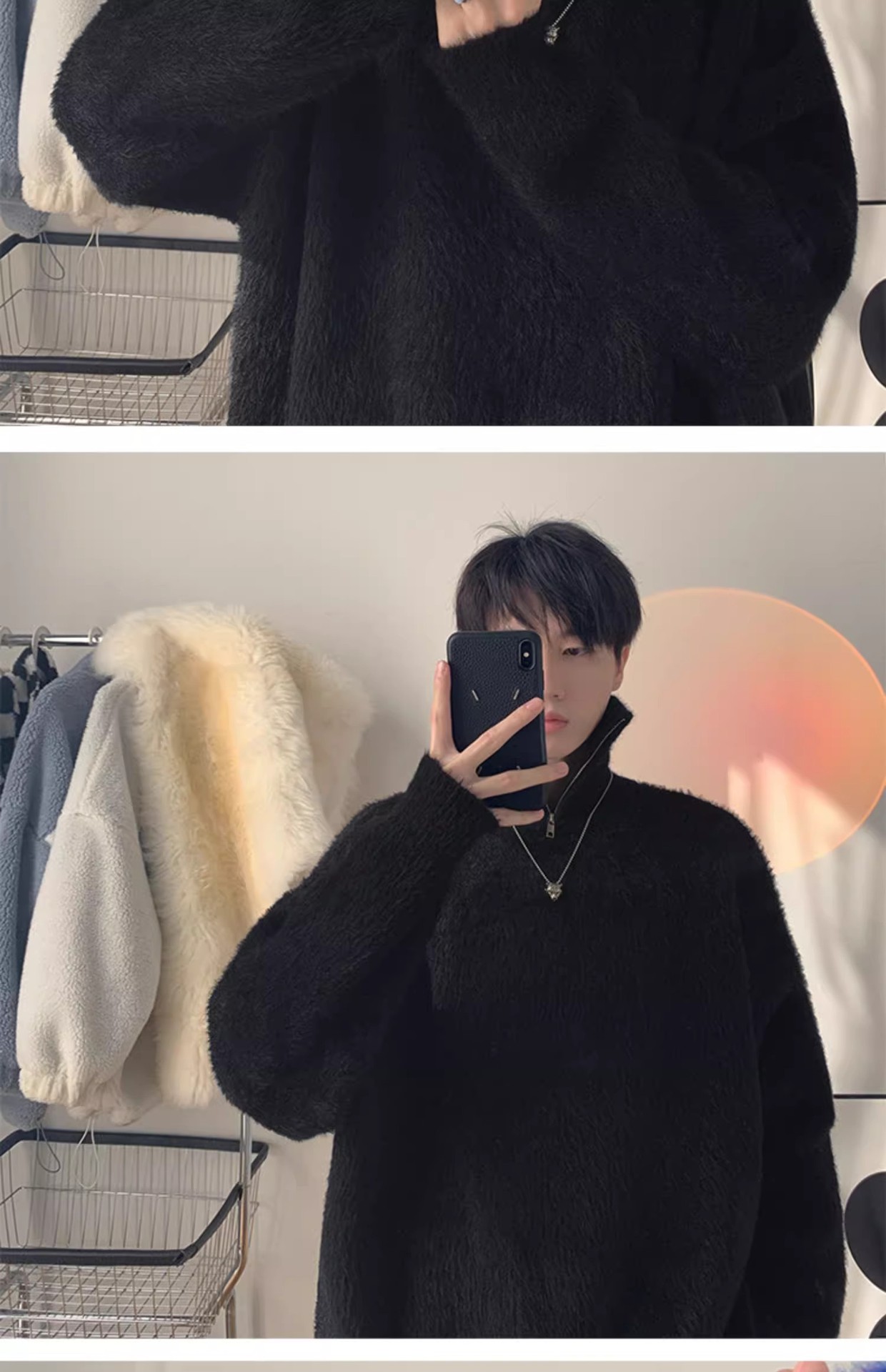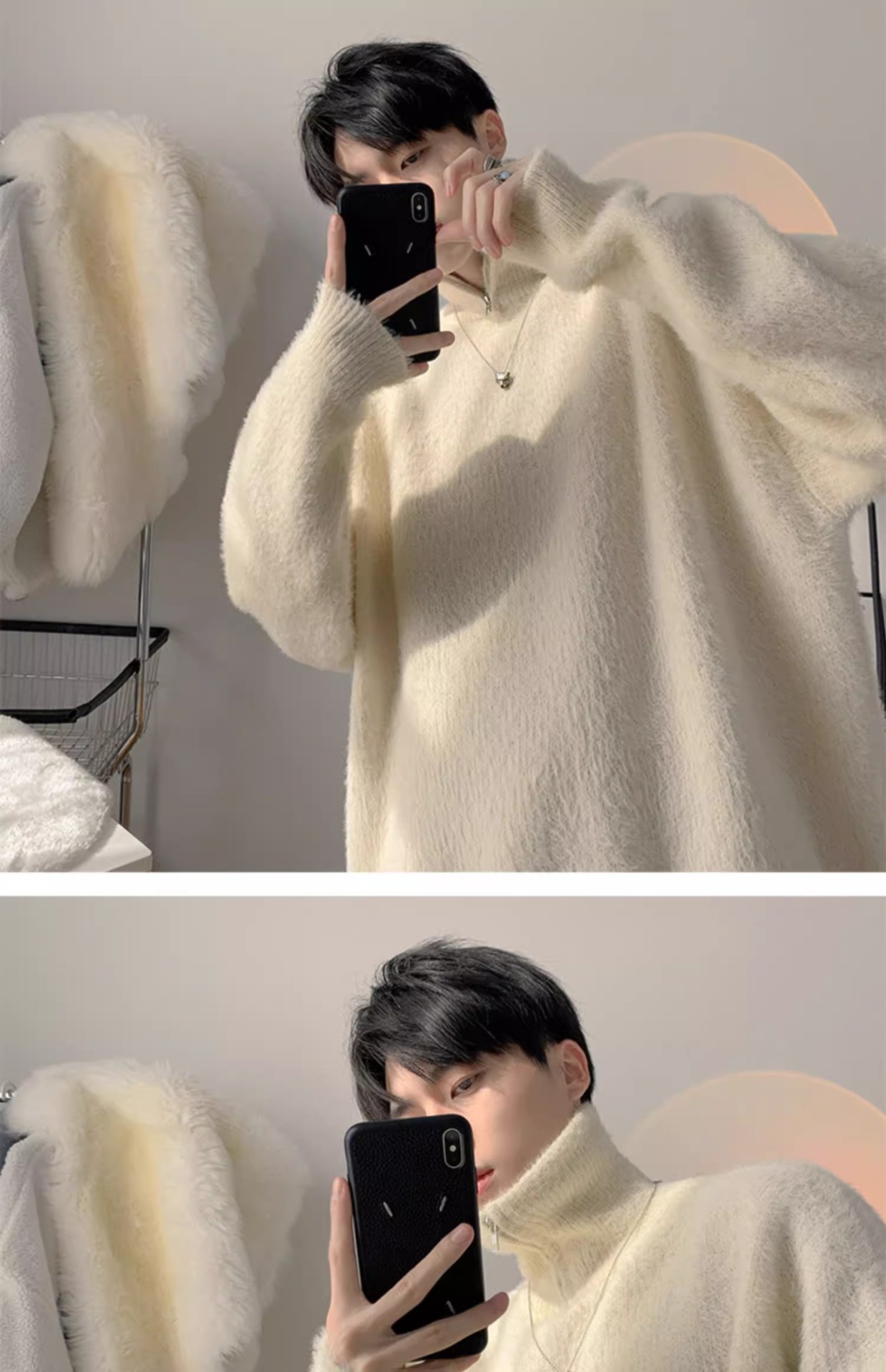 남자 하프 터틀넥 스웨터 가을과 겨울 두꺼운 느슨한 유행 브랜드 고급 니트웨어 게으른 스타일 하프 지퍼 재킷스토어 가기