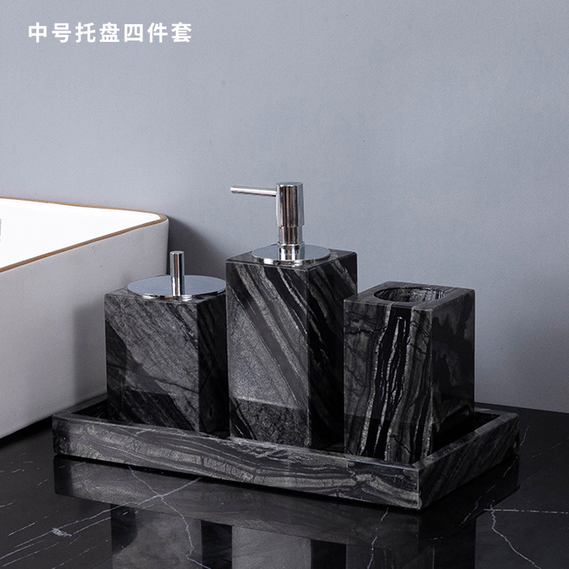 대리석 욕실 4 개 또는 5 개 조각 세척 테이블 칫솔 랙 세트 모델 룸 장식 욕실 키트