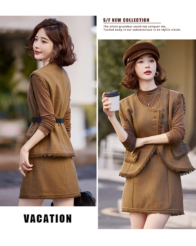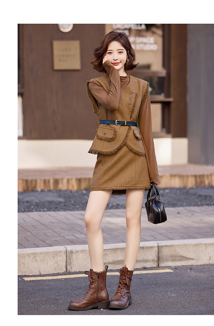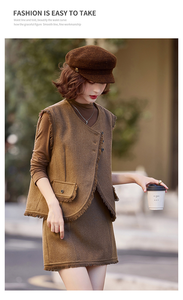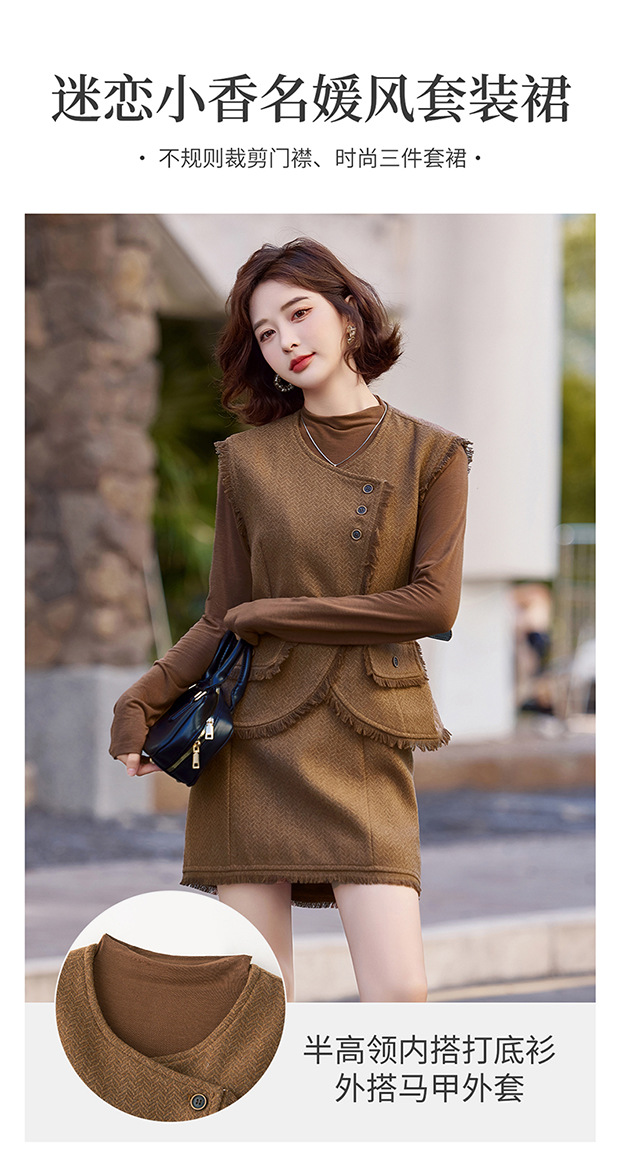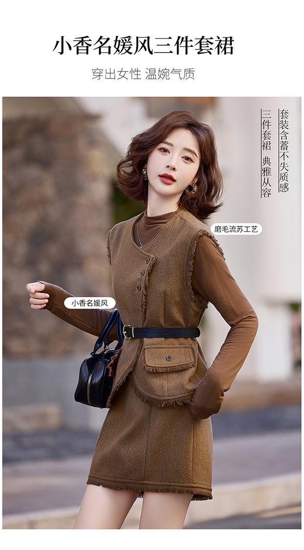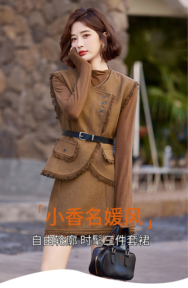 가을 2024 새로운 프랑스 스타일 우아한 샤넬 스타일 긴 소매 술 조끼 재킷 스커트 3 피스 세트스토어 가기