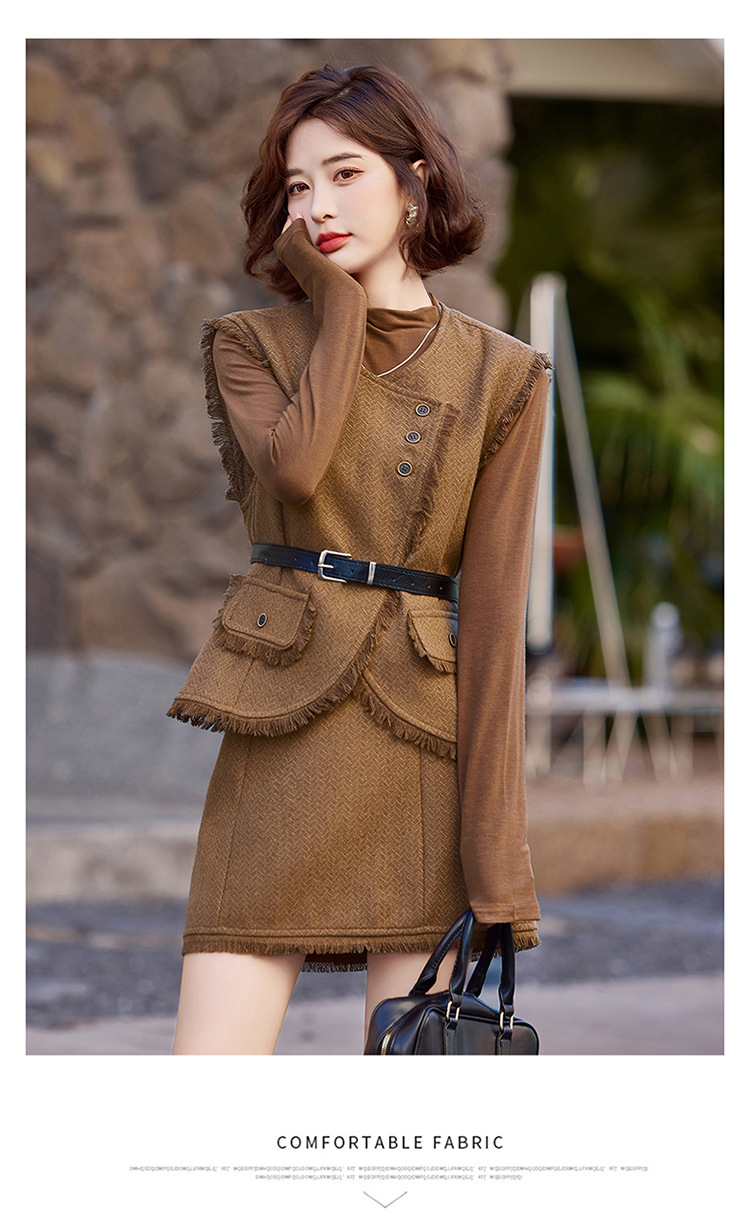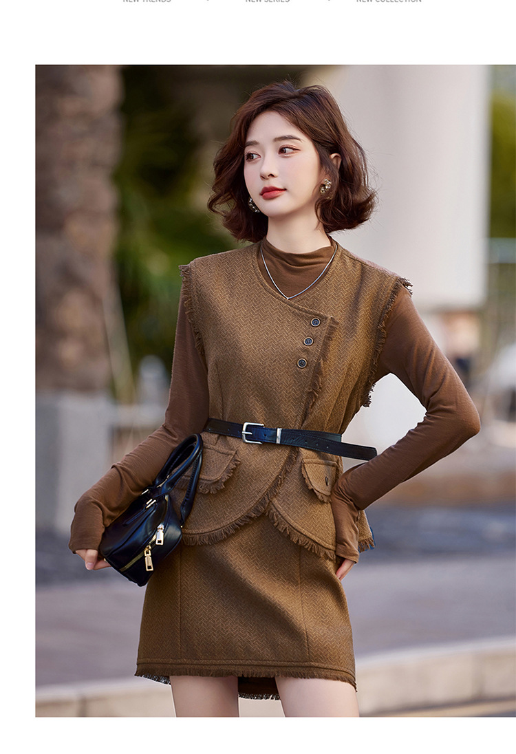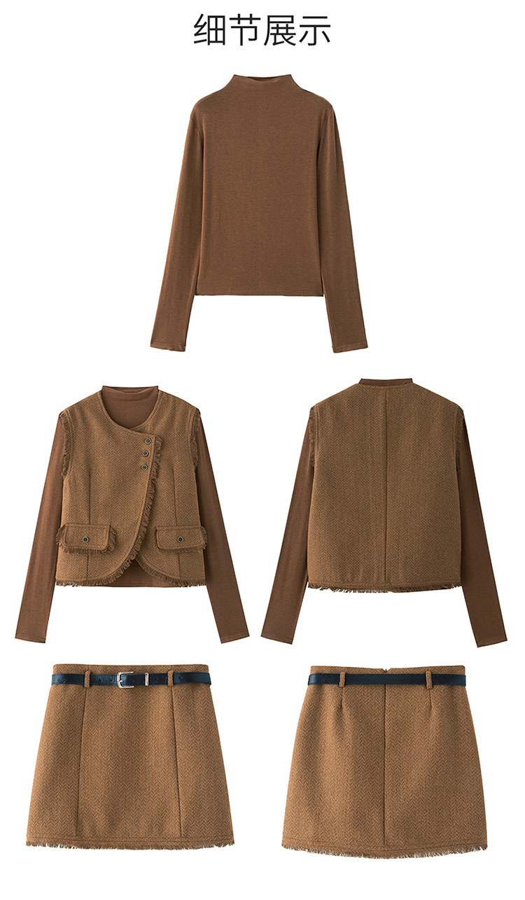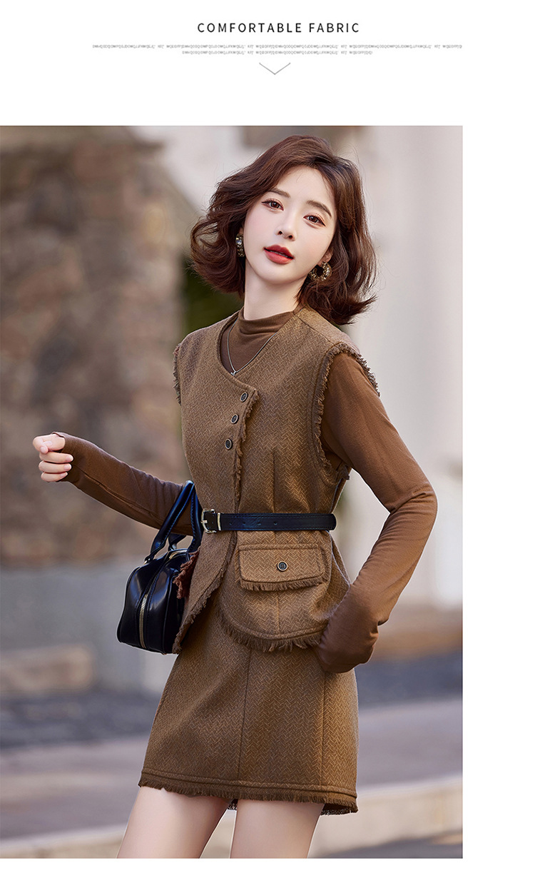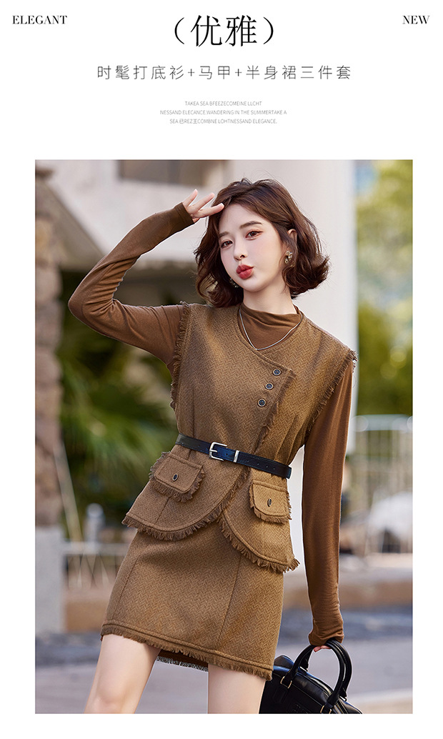 가을 2024 새로운 프랑스 스타일 우아한 샤넬 스타일 긴 소매 술 조끼 재킷 스커트 3 피스 세트스토어 가기