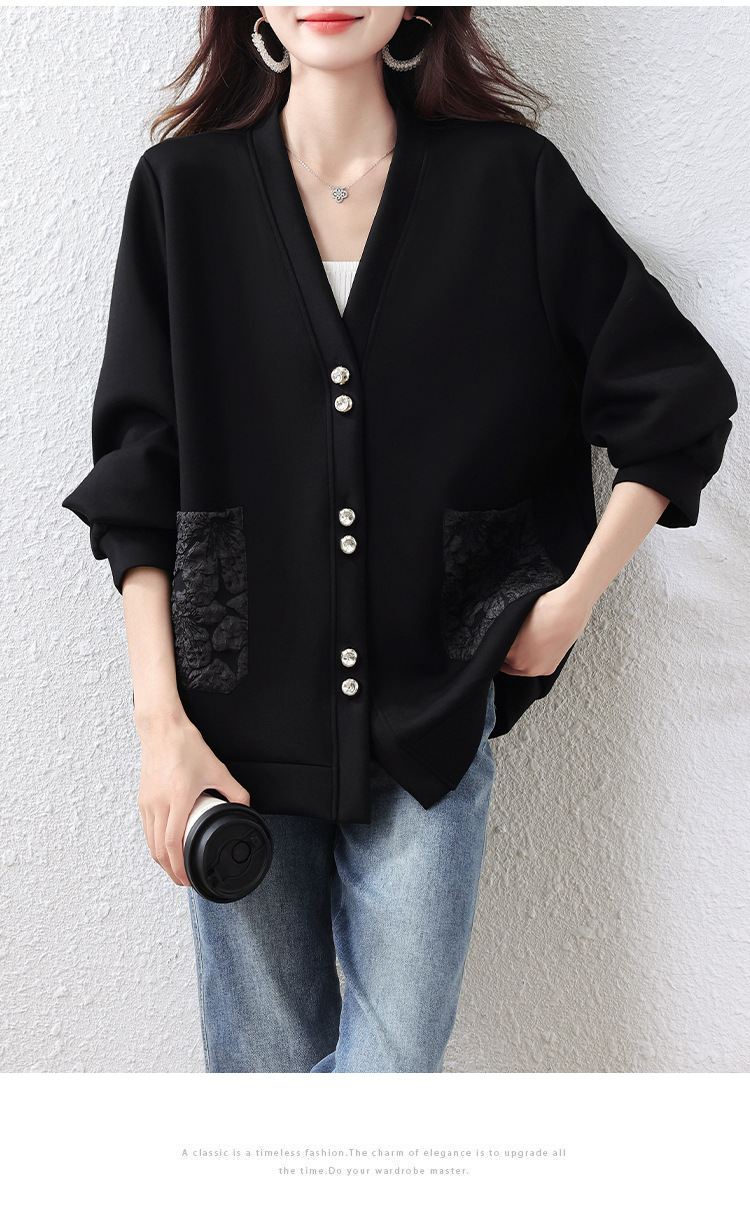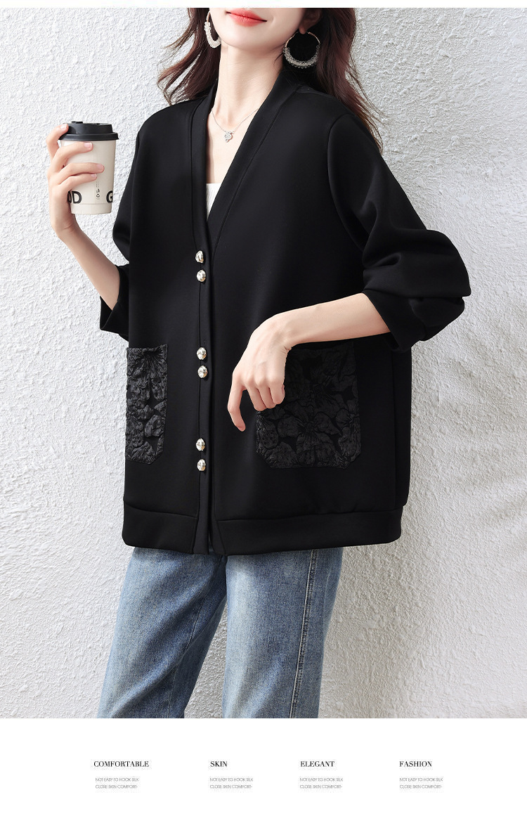 실제 사진 대형 여성복 신상 블랙 슬림핏 재킷 여성용 빅사이즈 봄 가을 재킷