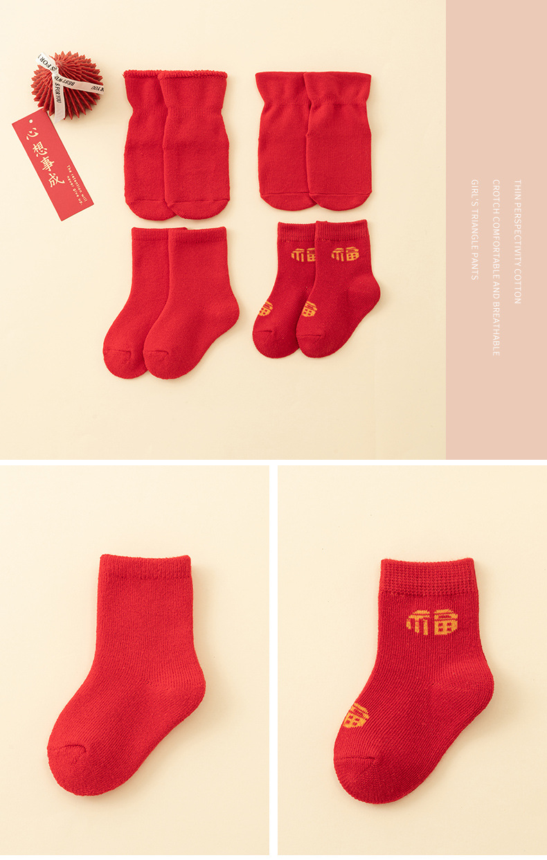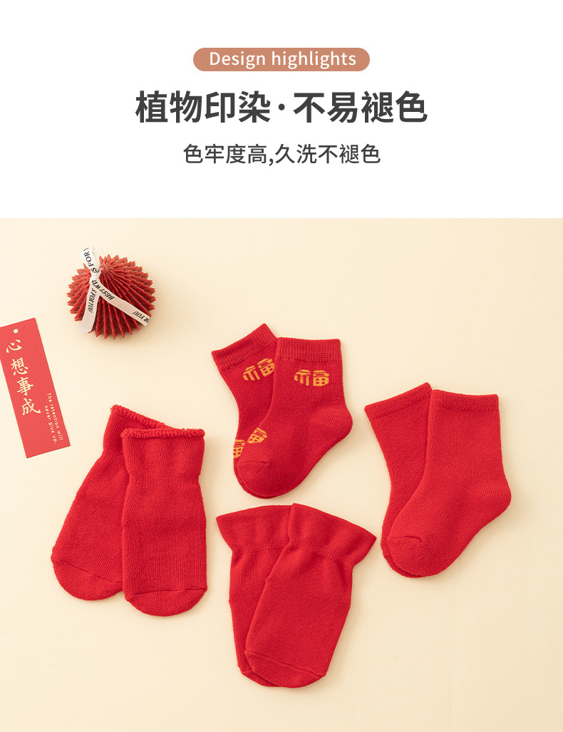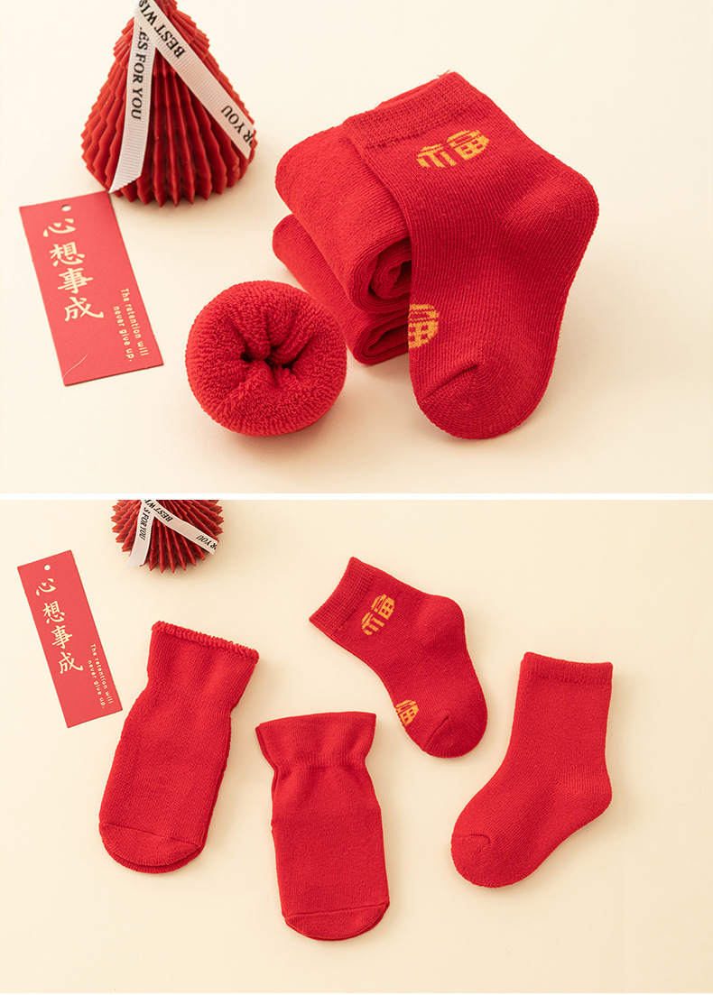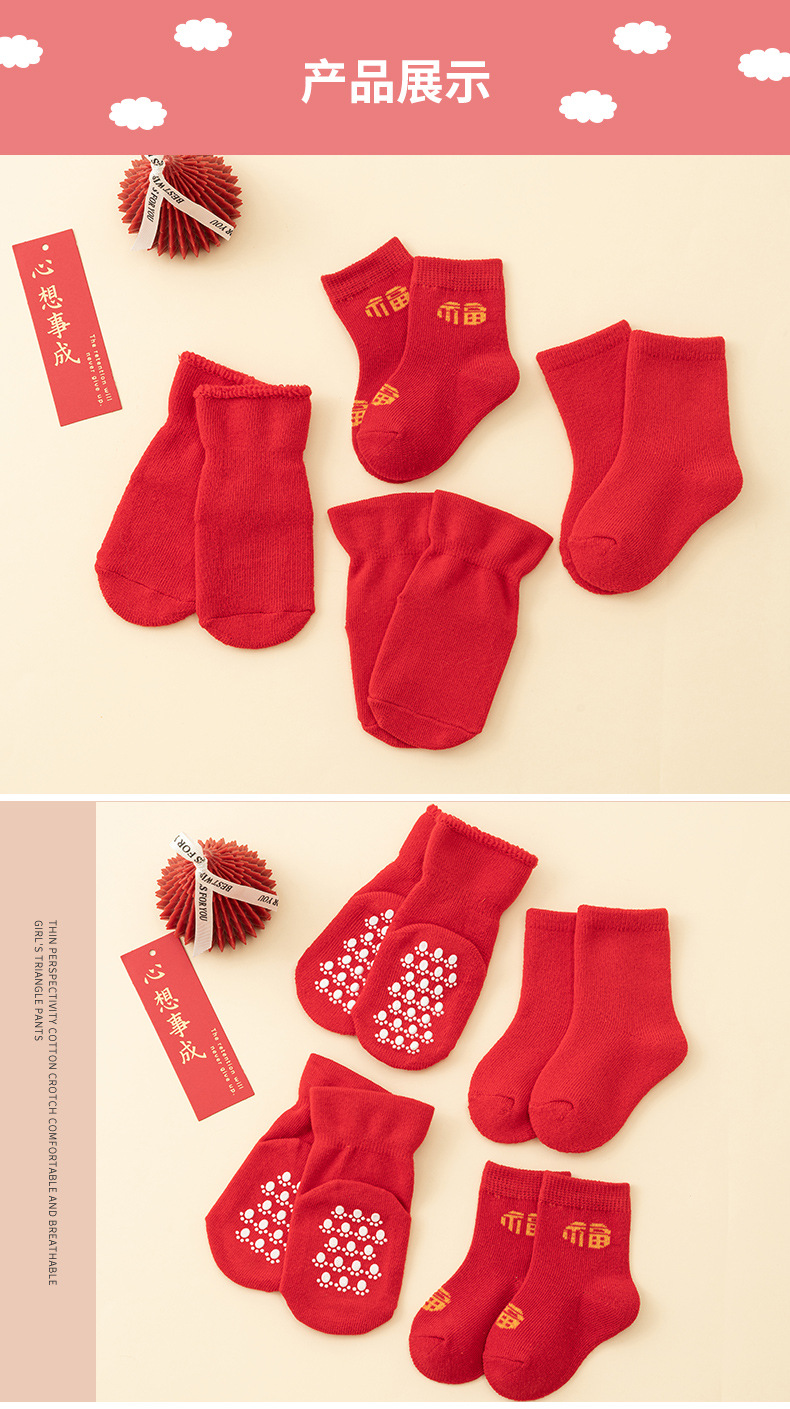남성과 여성을위한 아기 양말 아기 보름달 백일전 새해 붉은 중간 튜브 양말 신생아 미끄럼 방지 바닥면 양말