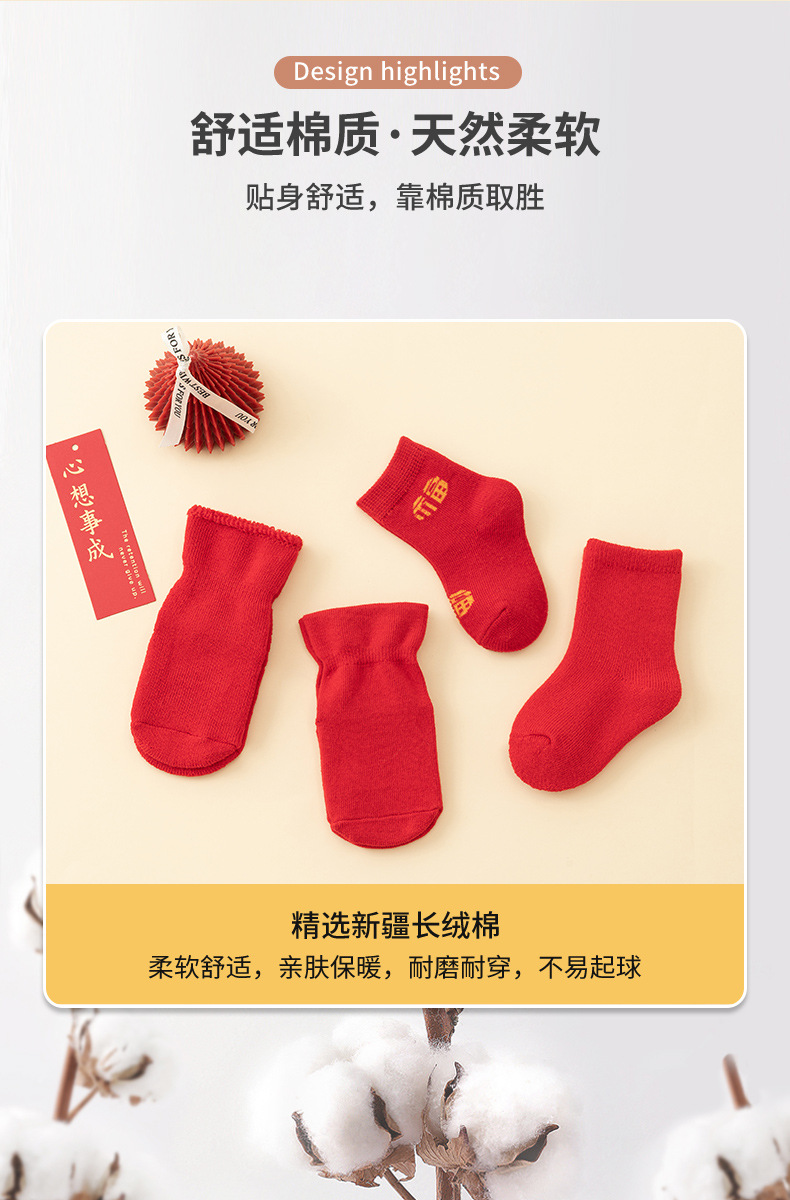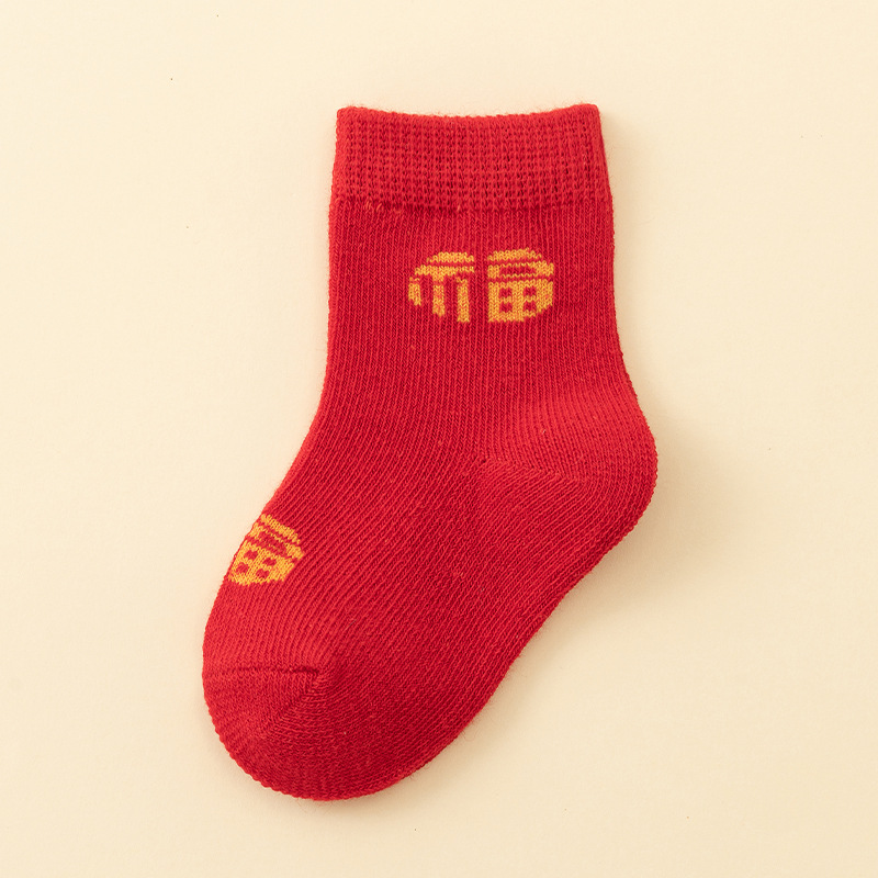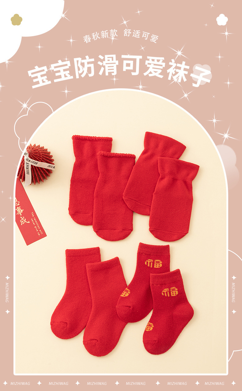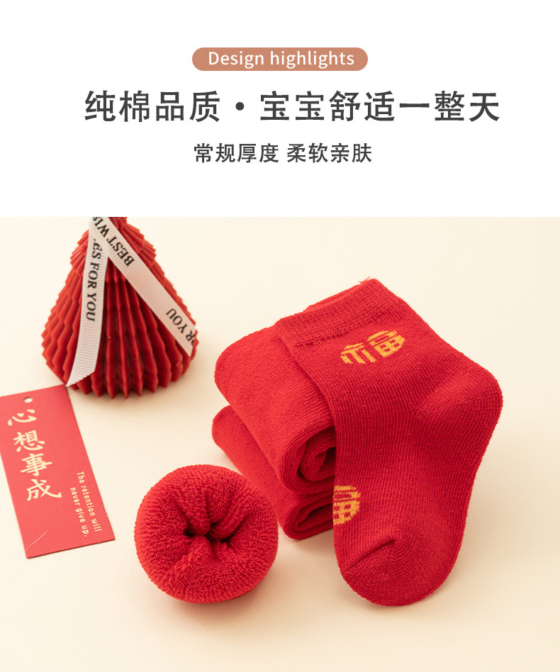 남성과 여성을위한 아기 양말 아기 보름달 백일전 새해 붉은 중간 튜브 양말 신생아 미끄럼 방지 바닥면 양말