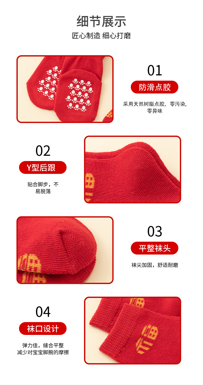 남성과 여성을위한 아기 양말 아기 보름달 백일전 새해 붉은 중간 튜브 양말 신생아 미끄럼 방지 바닥면 양말스토어 가기