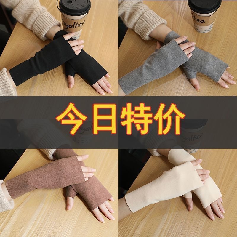 장갑 여성용 겨울 셀프 가열 양면 벨벳 하프 핑거 얇은 기모 오픈 핑거 따뜻한 장갑 남성용 타이핑 쇼트스토어 가기