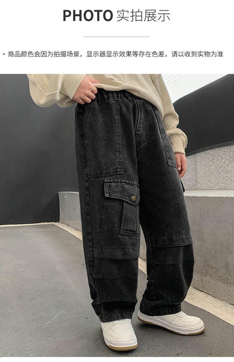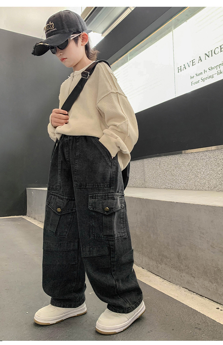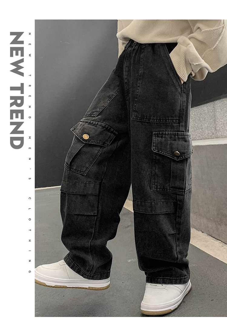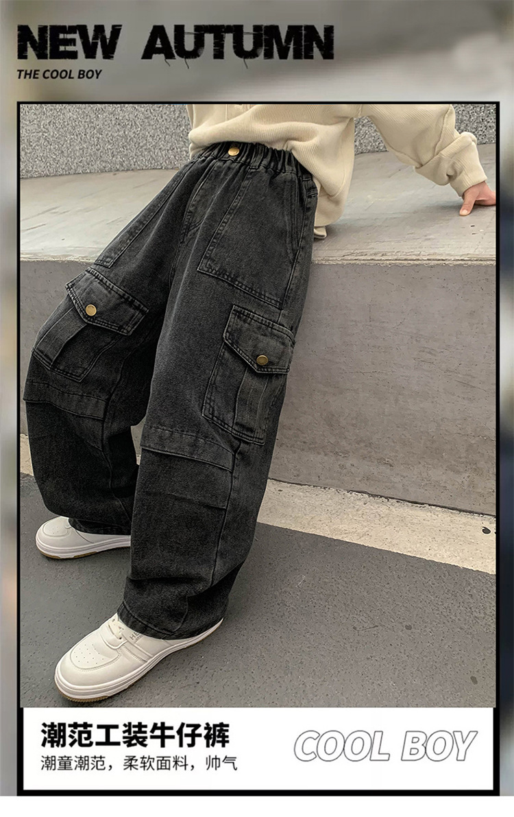 소년 청바지 봄과 가을 2025 새로운 유행 작업복 캐주얼 바지 어린이 잘 생긴 스트레이트 스트리트 바지 유행스토어 가기