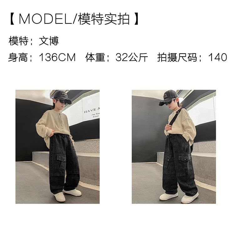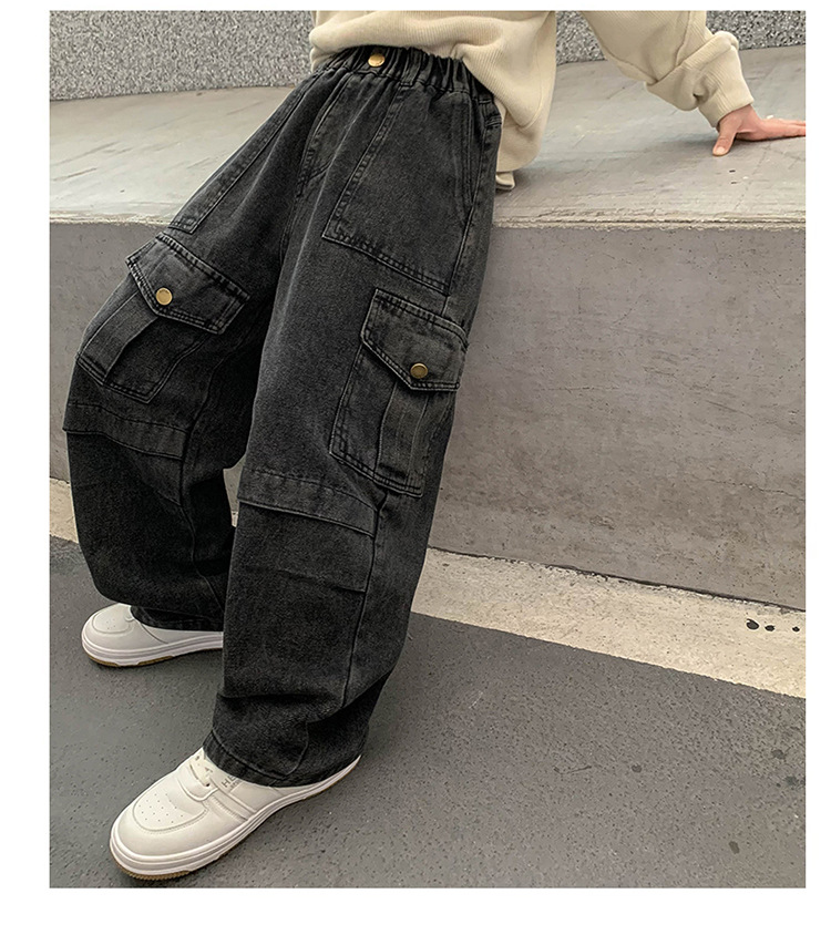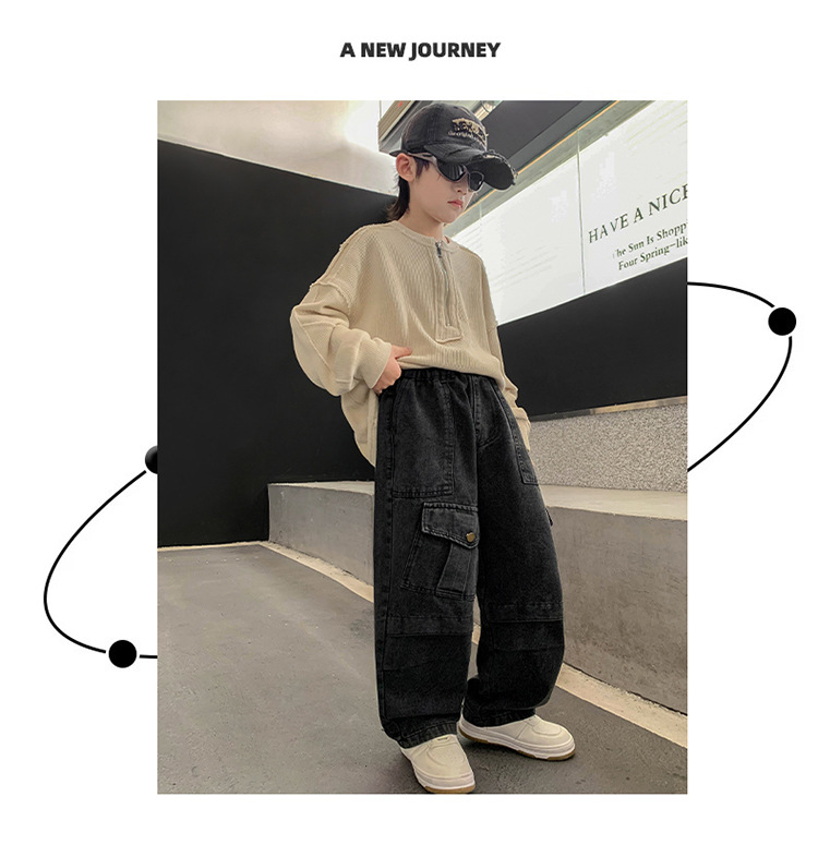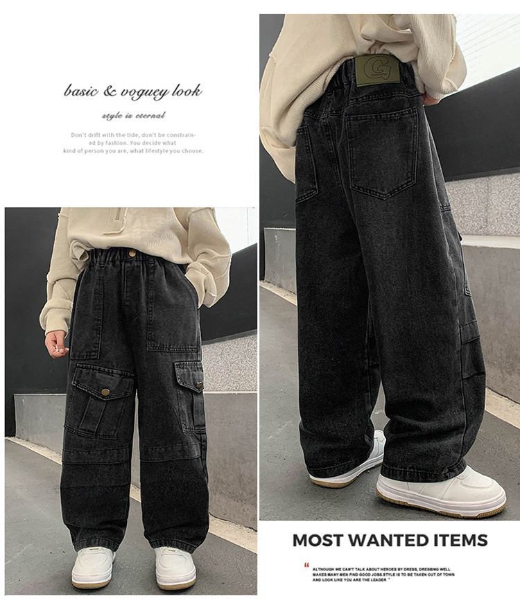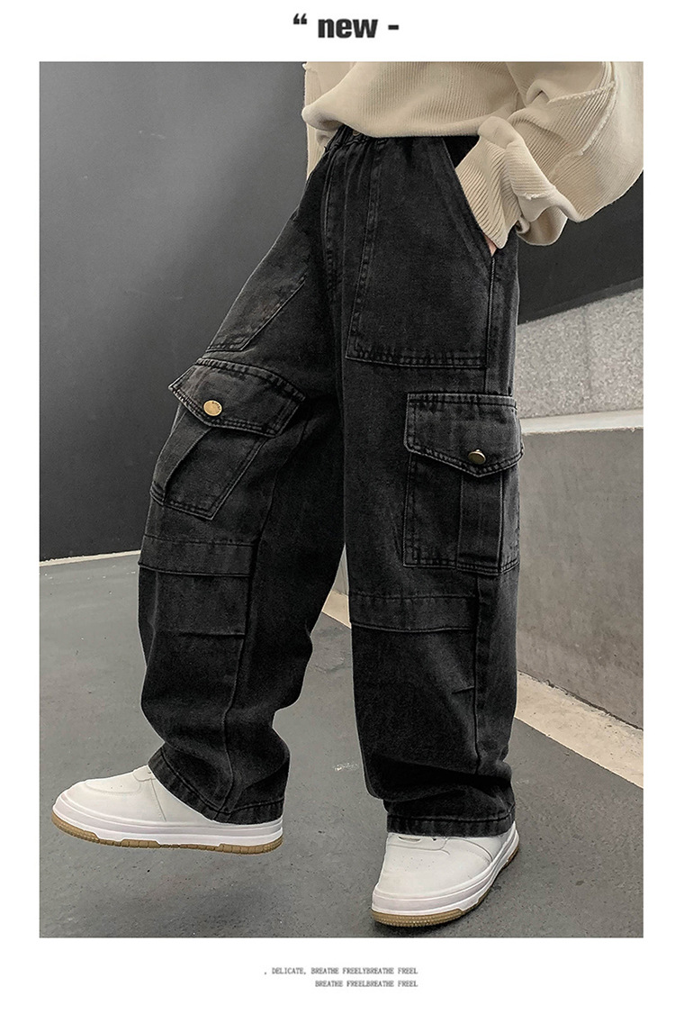 소년 청바지 봄과 가을 2025 새로운 유행 작업복 캐주얼 바지 어린이 잘 생긴 스트레이트 스트리트 바지 유행스토어 가기