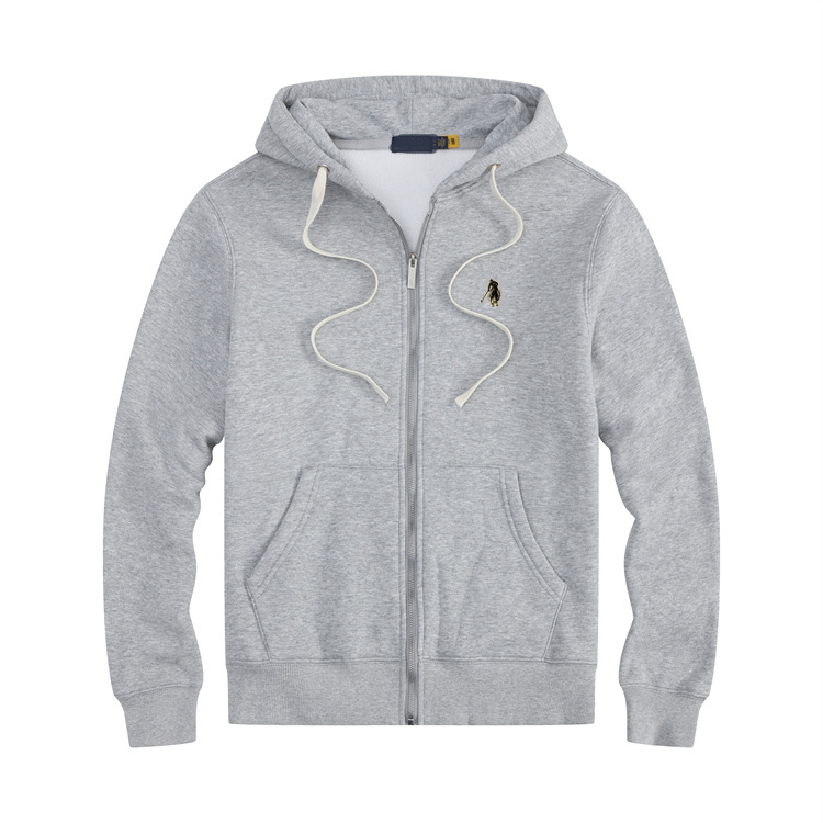 남성용 폴로 스웨트셔츠 자수 포니 로고 플리스 카디건 지퍼 후드 재킷 겨울용 플리스