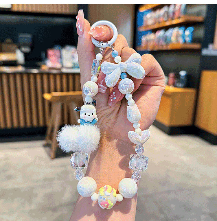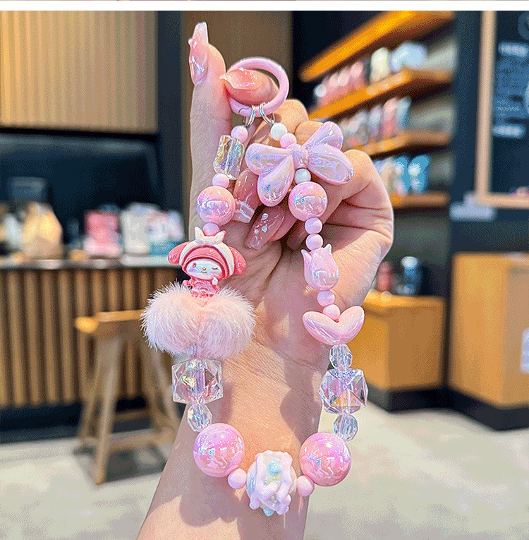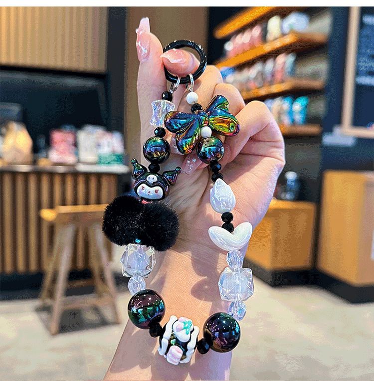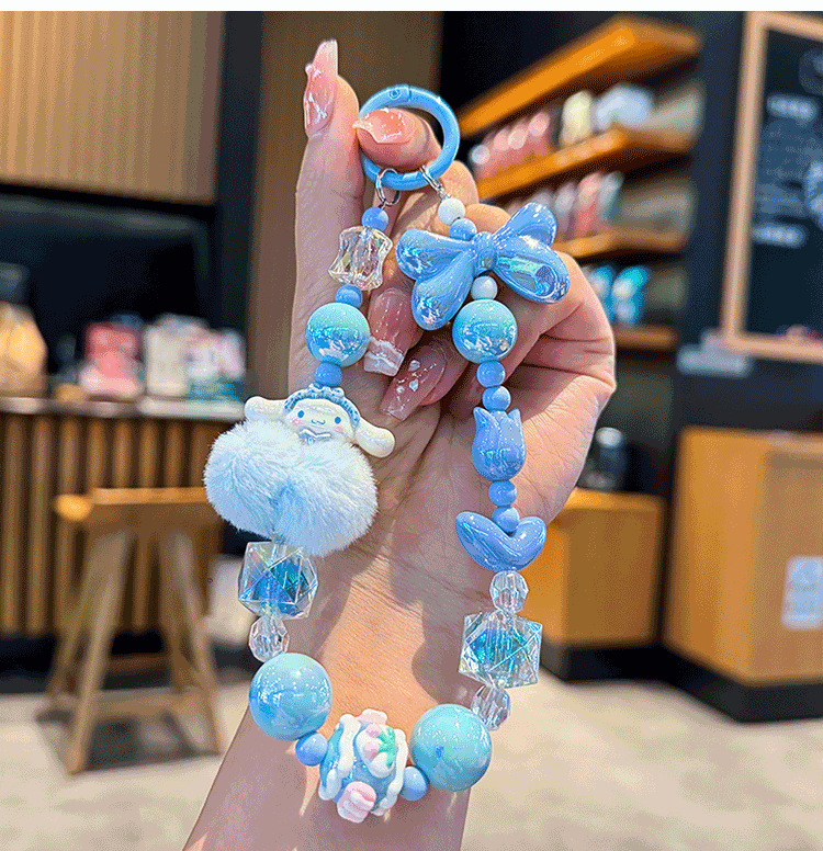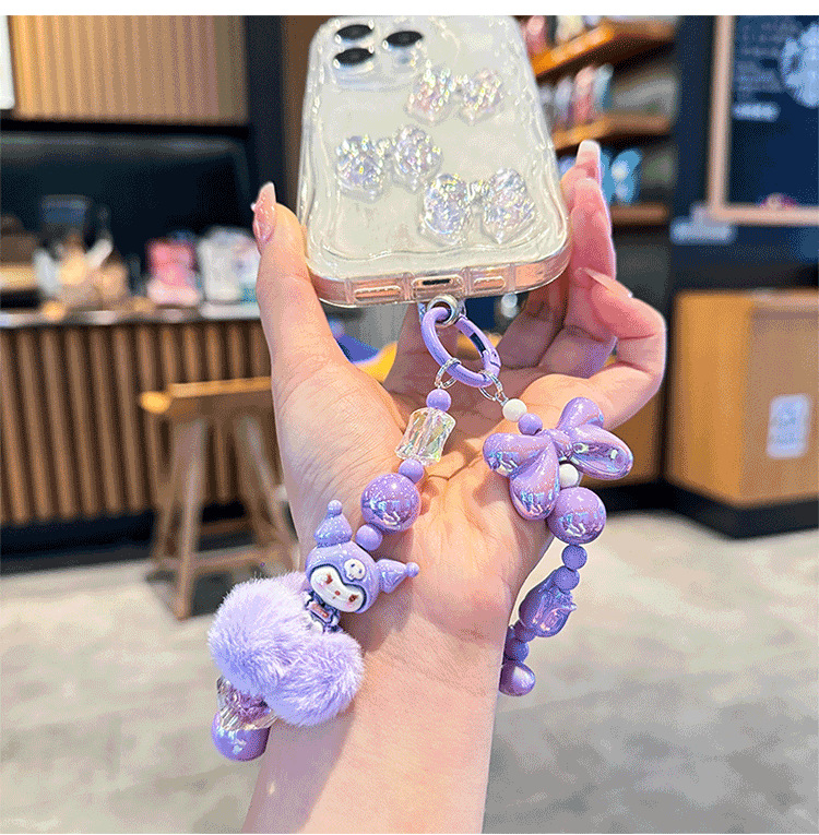 새로운 오리지널 멜로디 쿠로미 모피 볼 휴대폰 케이스 체인 카메라 펜던트 손으로 그린 파란색 휴대폰 체인스토어 가기
