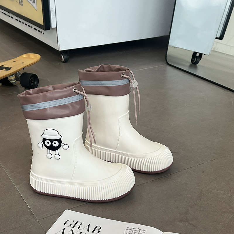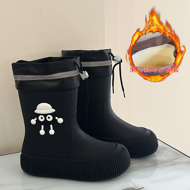 장화 여성의 2024 새로운 방수 거트 기모 물 신발 그물 빨간 중간 튜브 장화 미끄럼 방지 패션 성인 고무 신발