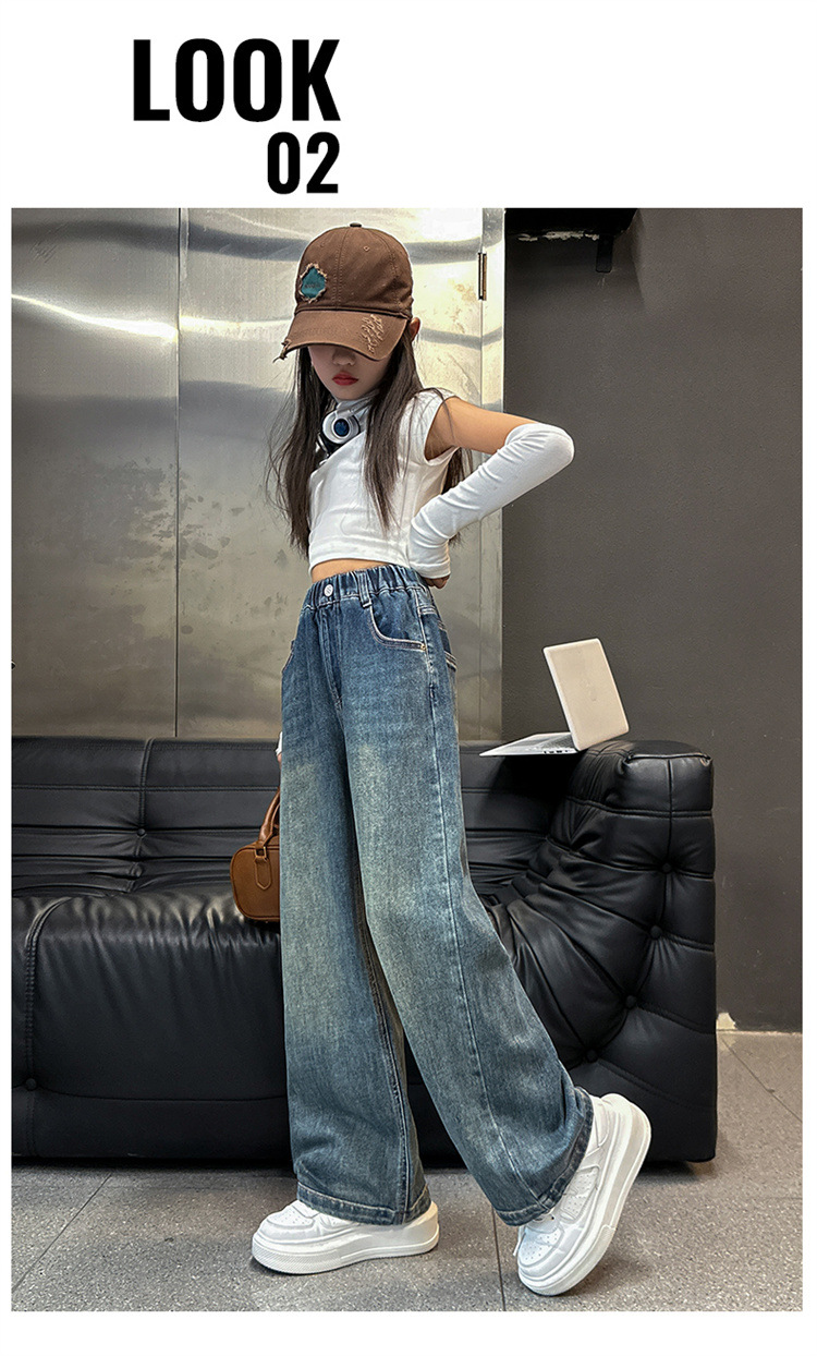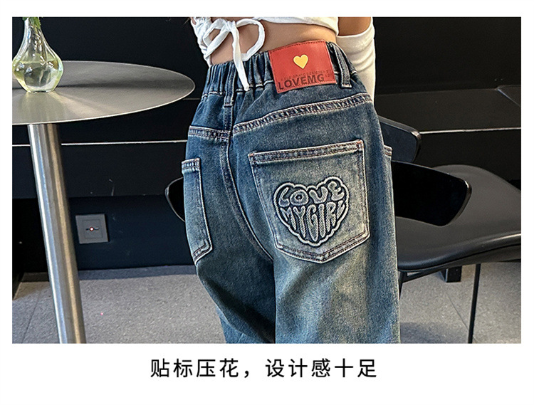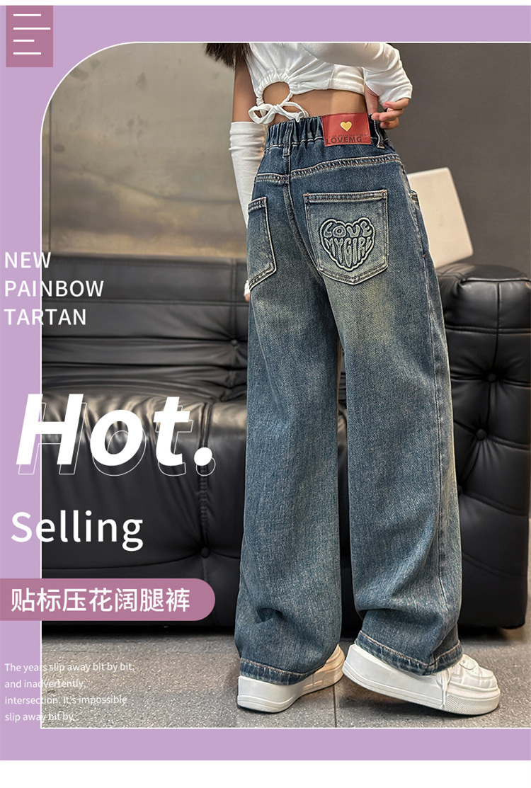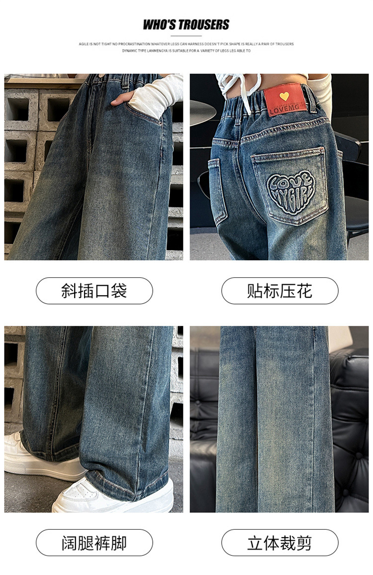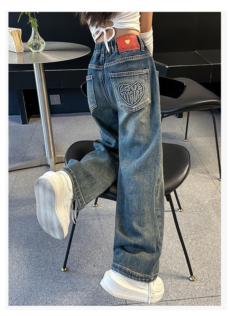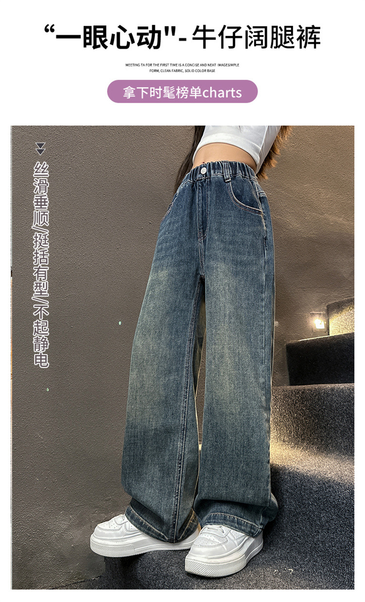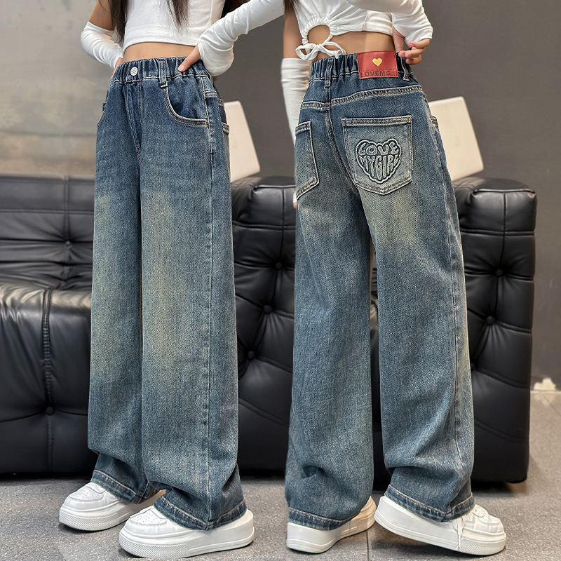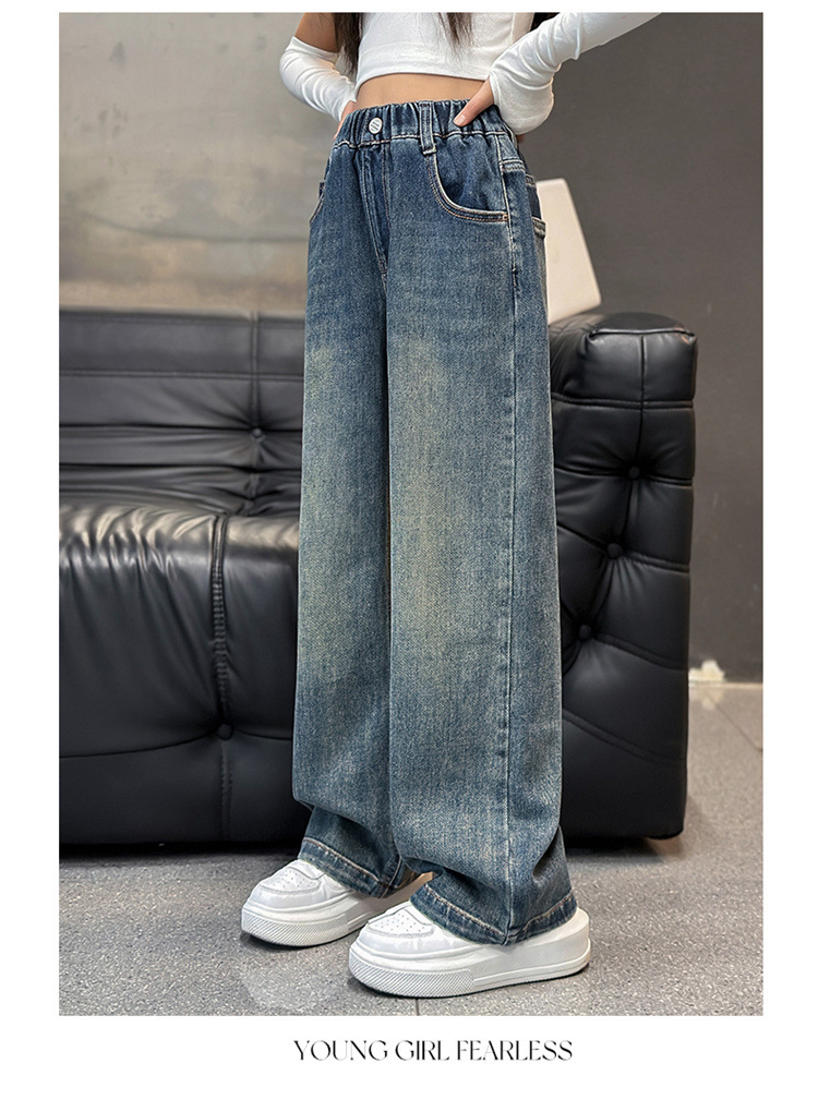 여아용 바지 봄 가을 청바지 2026 가을 겨울 신상 중대형 아동 캐주얼 기모 스트레이트 데님 와이드 팬츠