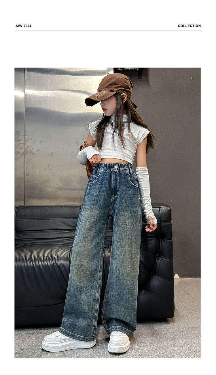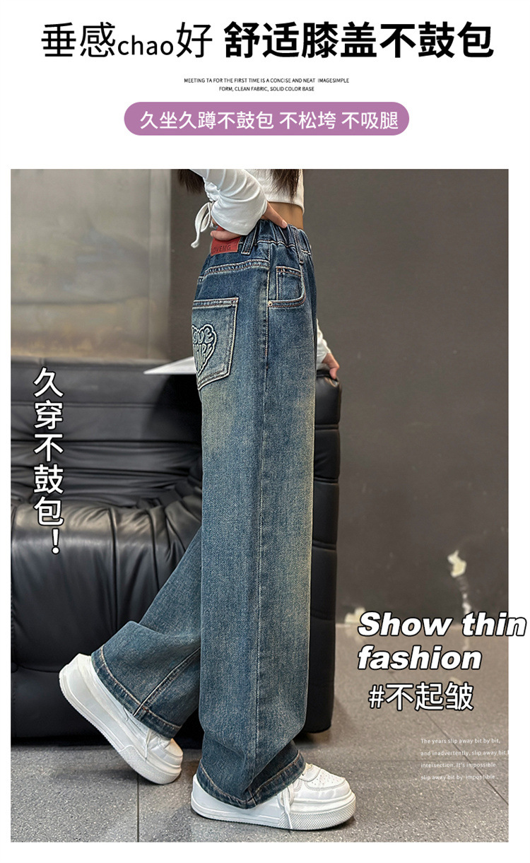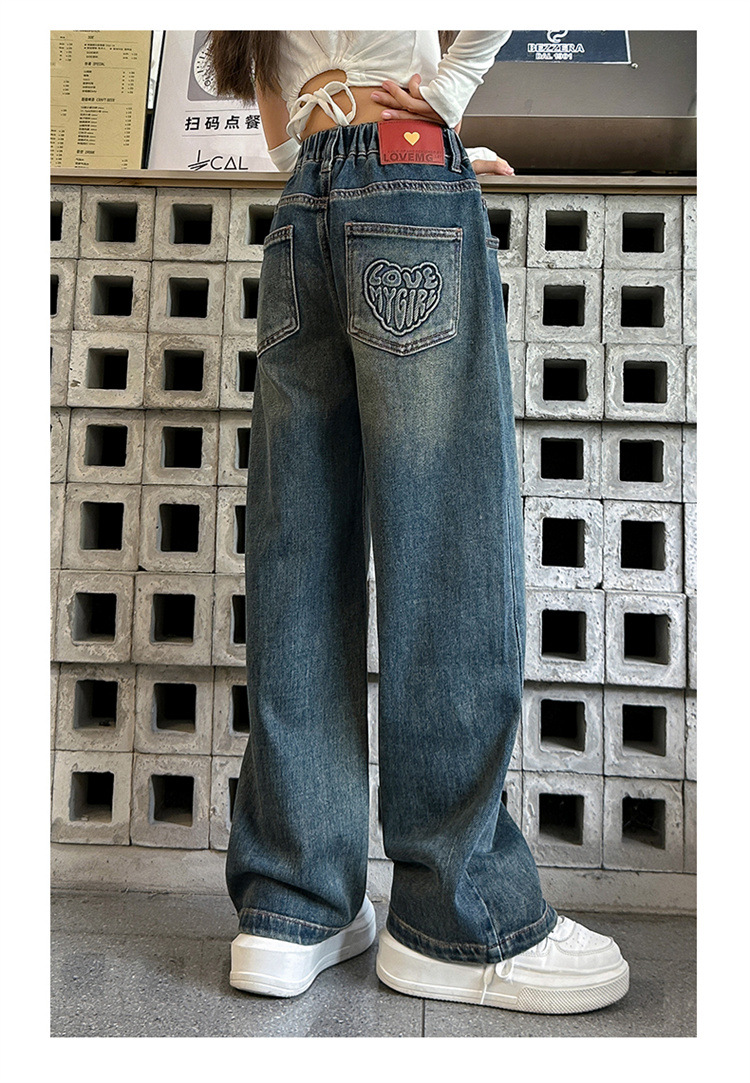 여아용 바지 봄 가을 청바지 2026 가을 겨울 신상 중대형 아동 캐주얼 기모 스트레이트 데님 와이드 팬츠스토어 가기