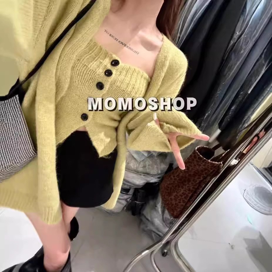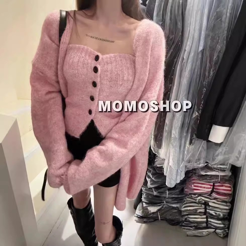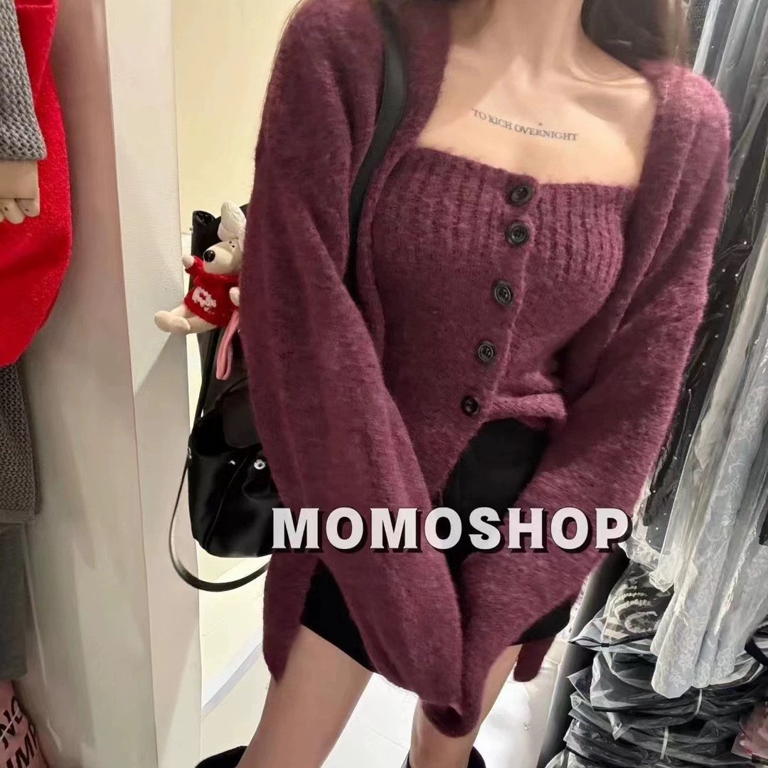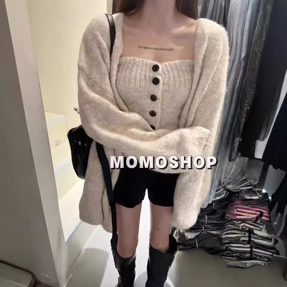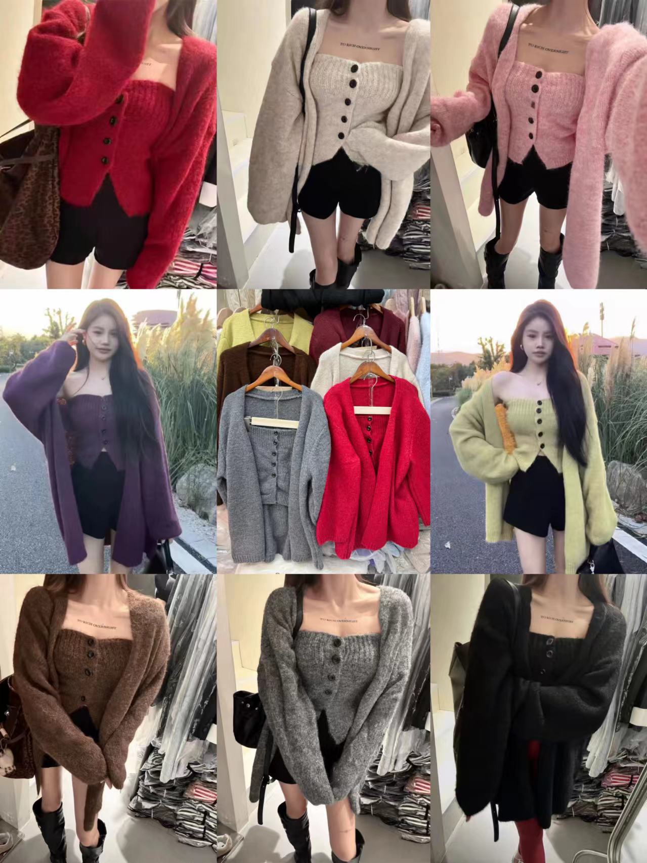 2024 가을, 겨울 새로운 튜브 탑 버튼 바닥 셔츠 스웨터 여성 자켓 투피스 세트 게으른 스타일 스웨터 탑스토어 가기