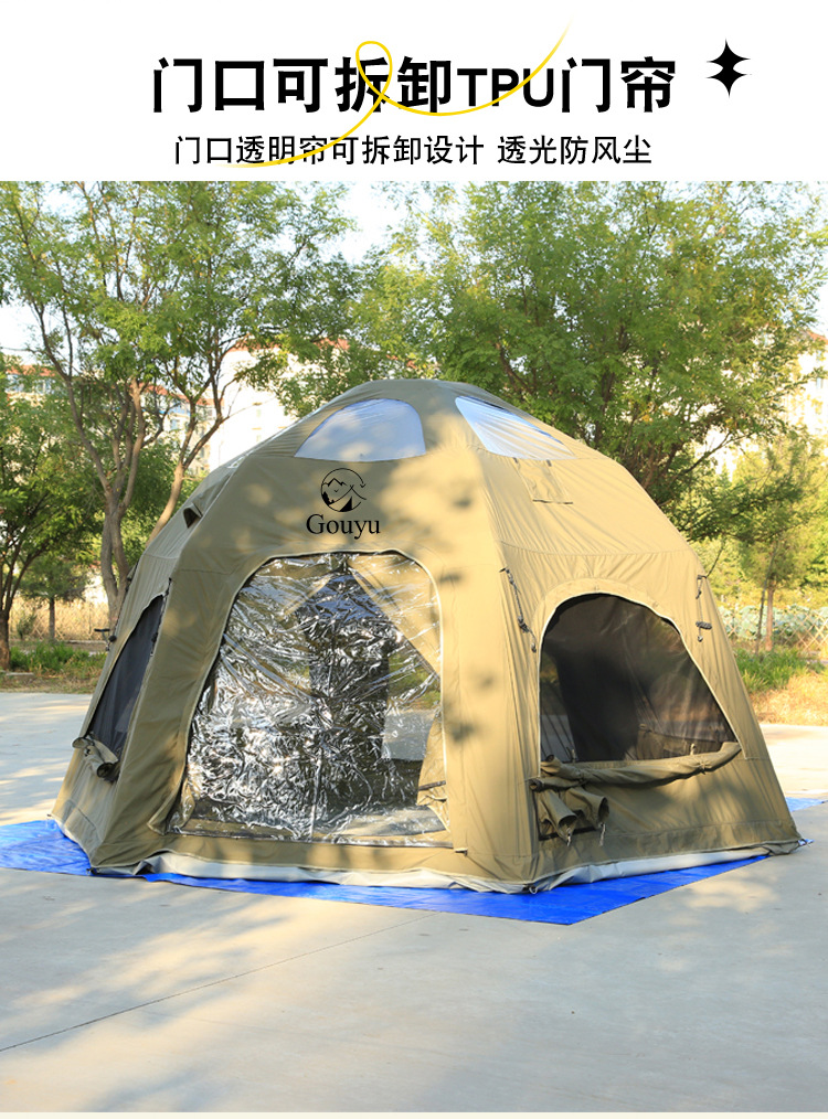 팽창식 텐트 야외 캠핑 따뜻한 면 볼 모양의 텐트 육군 녹색 풍선 무료 설치 텐트 부모-자식스토어 가기