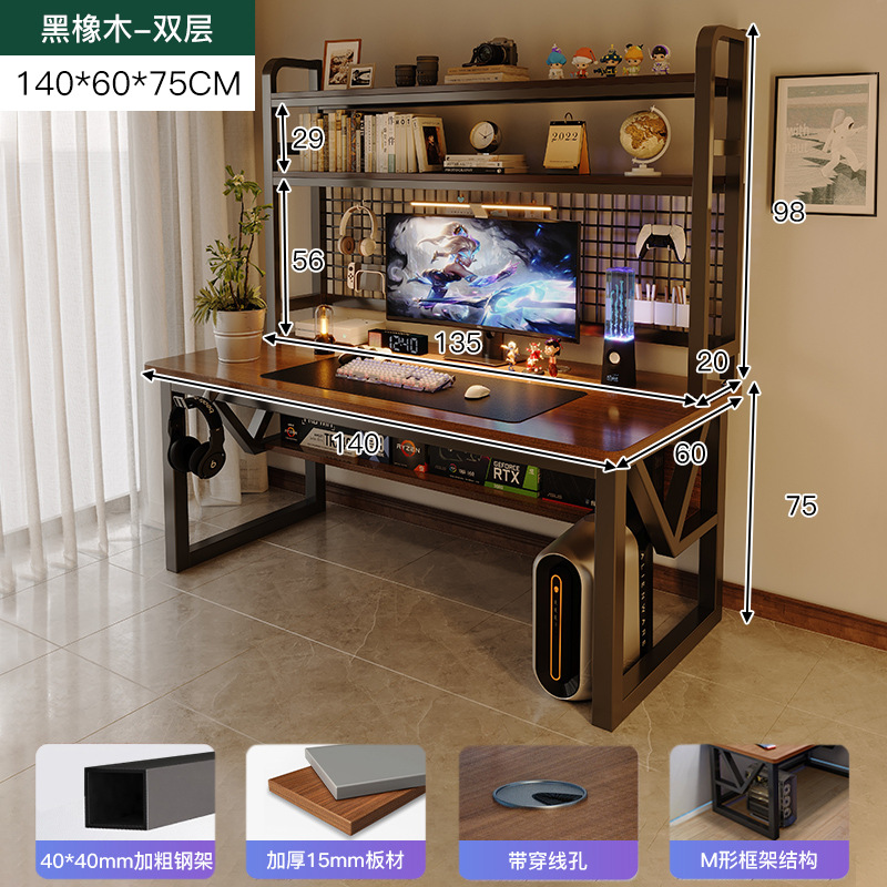 • 복층책장조합모델 - 블랙오크 컬러 140*60*75cm [업그레이드 선반모델 - 수납+내하중]