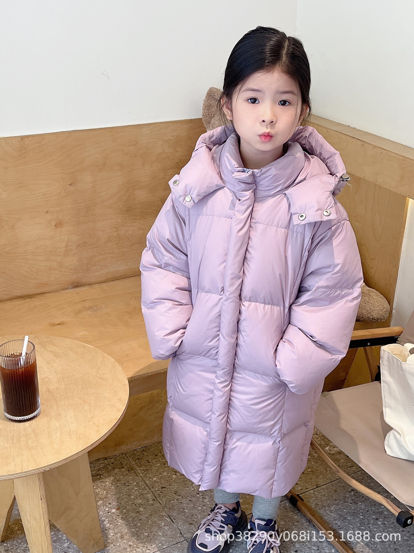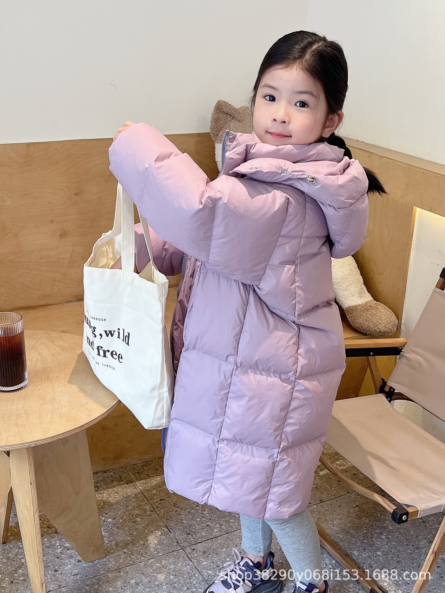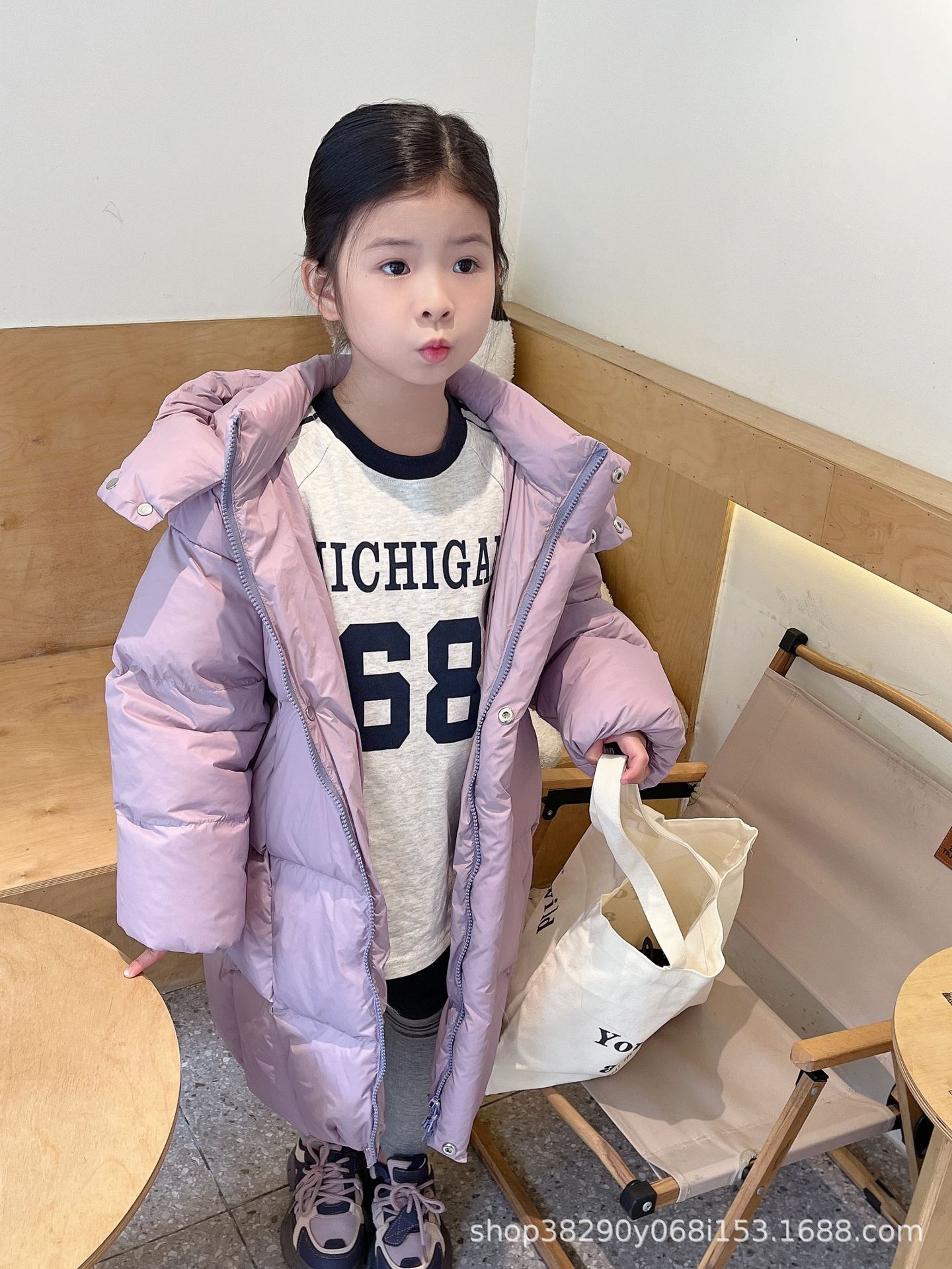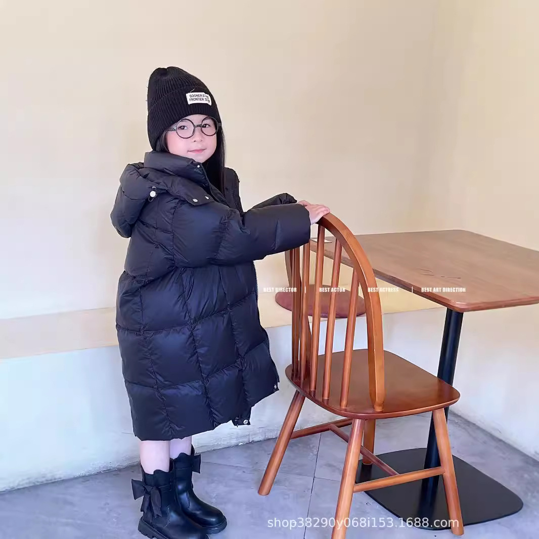 아동용 다운 재킷 여아용 중간 길이 2024 남아용 두꺼운 따뜻한 흰색 오리털 재킷 한국 스타일 방한스토어 가기
