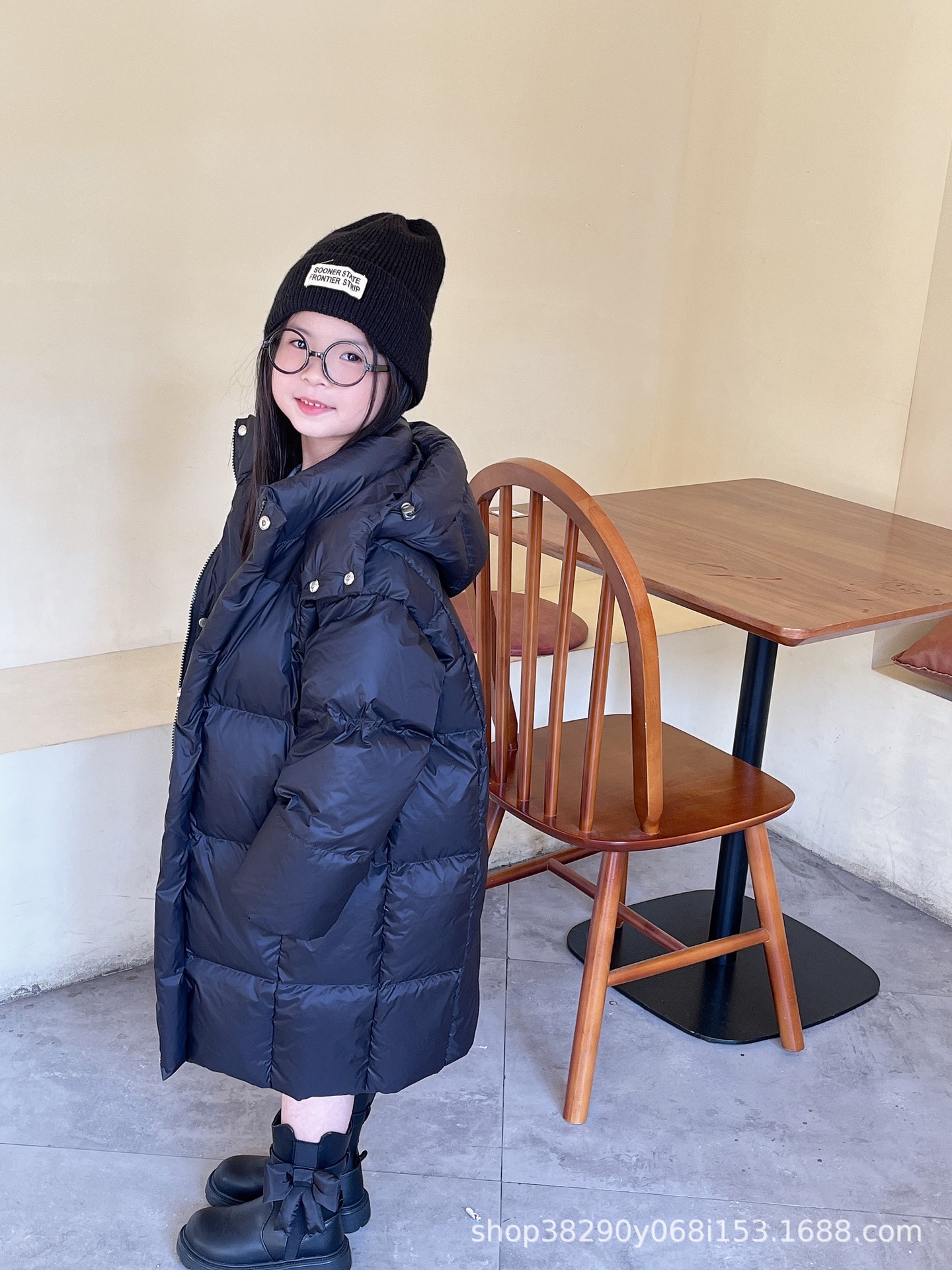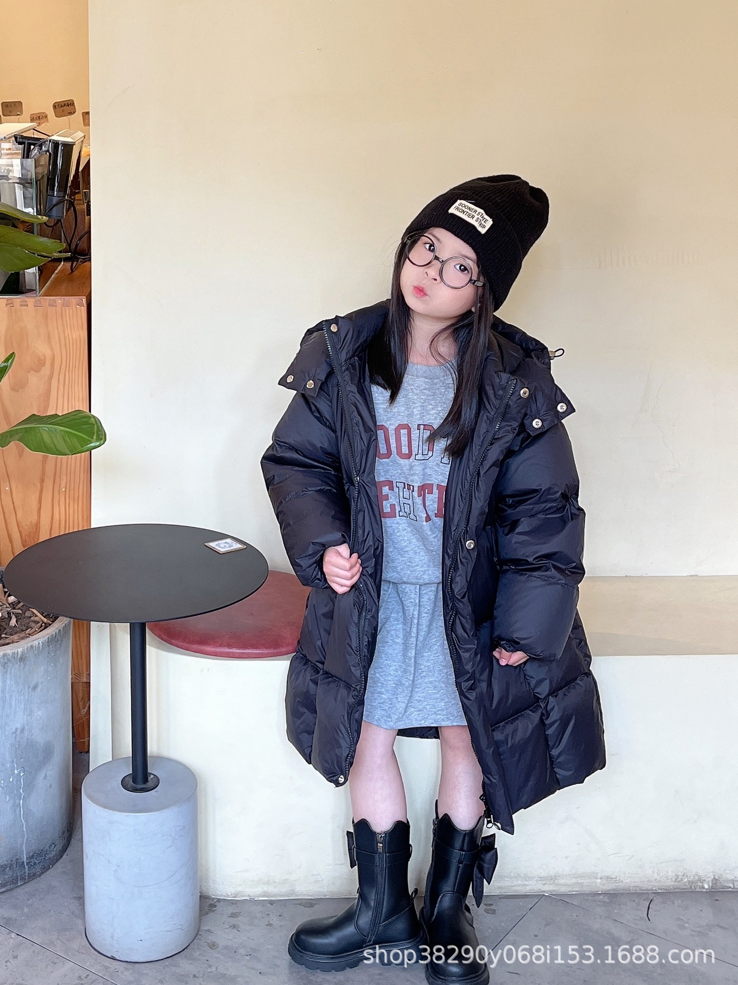 아동용 다운 재킷 여아용 중간 길이 2024 남아용 두꺼운 따뜻한 흰색 오리털 재킷 한국 스타일 방한
