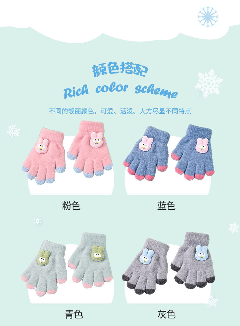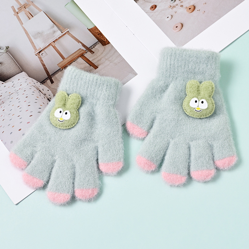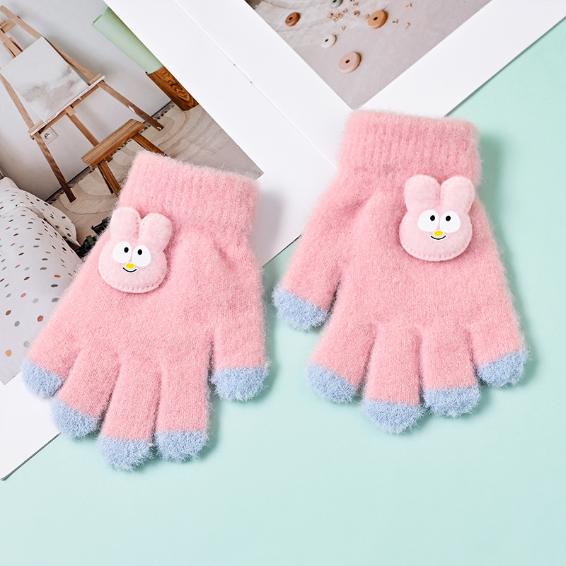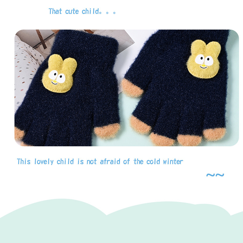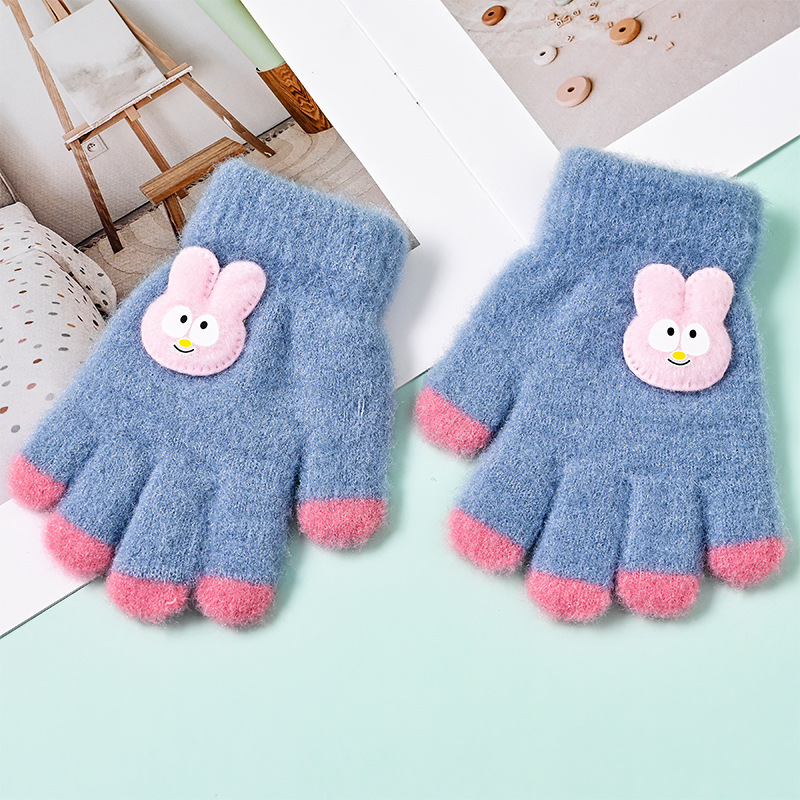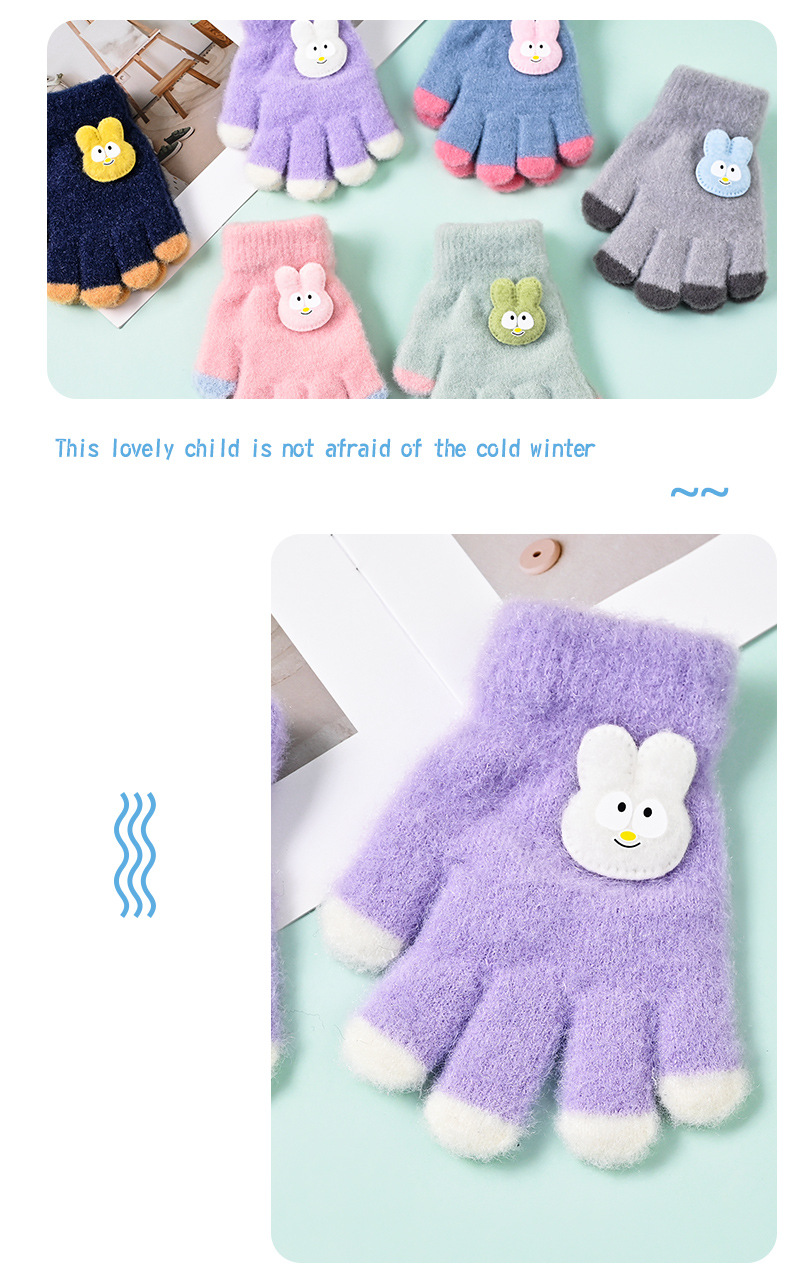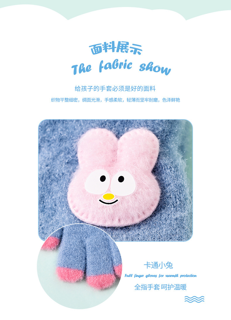 겨울용 두꺼운 방한 만화 캐릭터 유아용 장갑, 남아 여아용 다섯 손가락 장갑, 아이들이 손을 물어뜯는 것을 방지하는 장갑