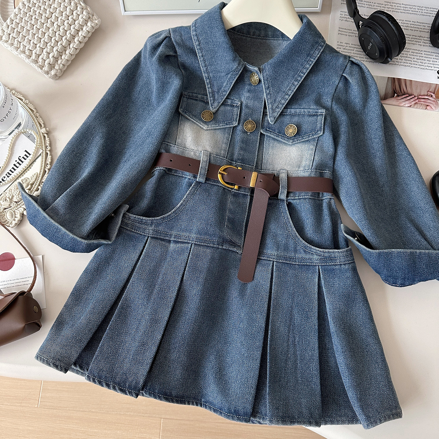 어린이 데님 원피스 새 가을 소녀 기질 온라인 한국 스타일 볶음밥 데님 긴 소매 공주 원피스스토어 가기