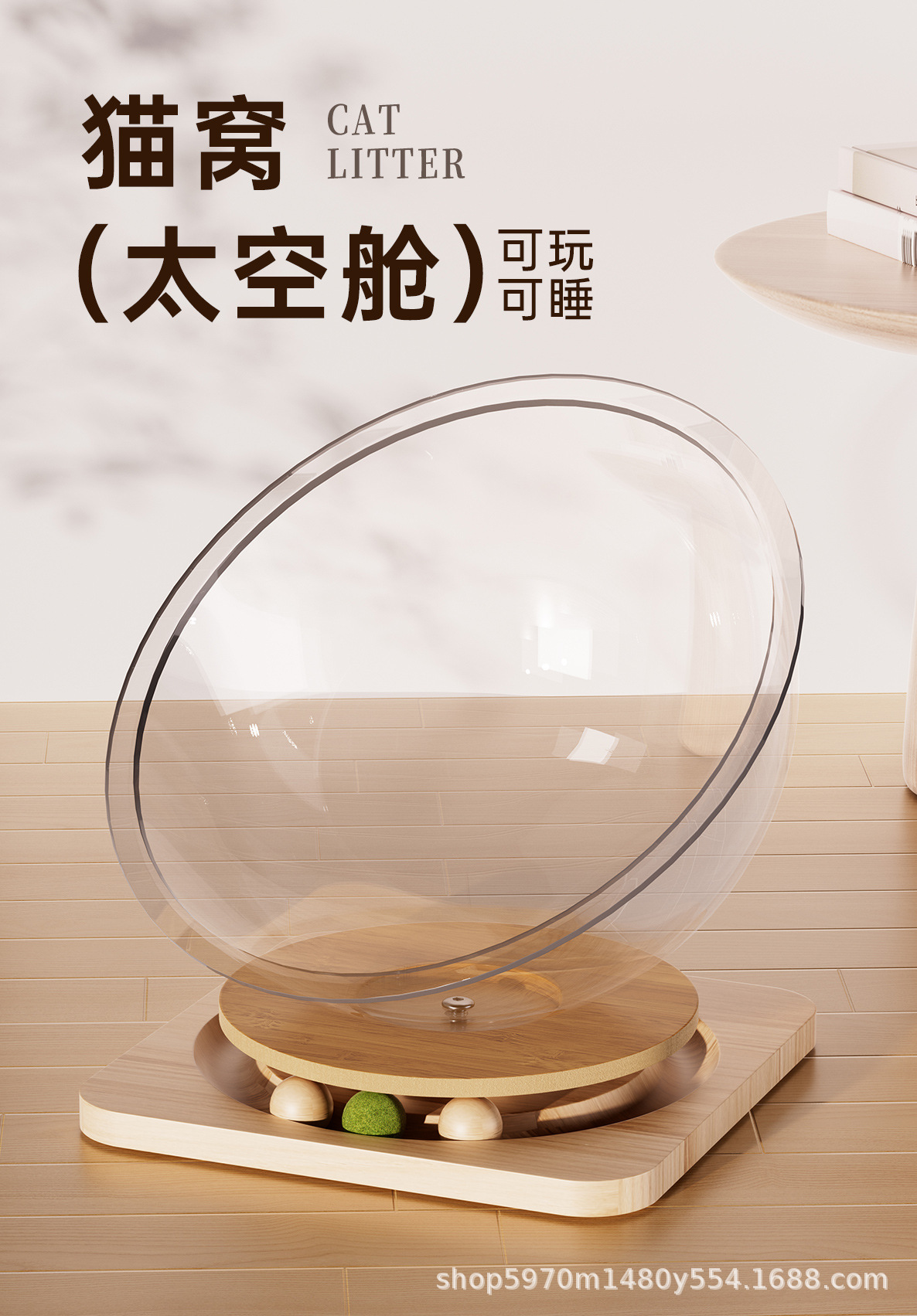 사계절 우주 캡슐 고양이의 둥지 보편적 인 초대형 투명 아크릴 단단한 나무 턴테이블 애완 동물 고양이 잠자는 고양이 침대