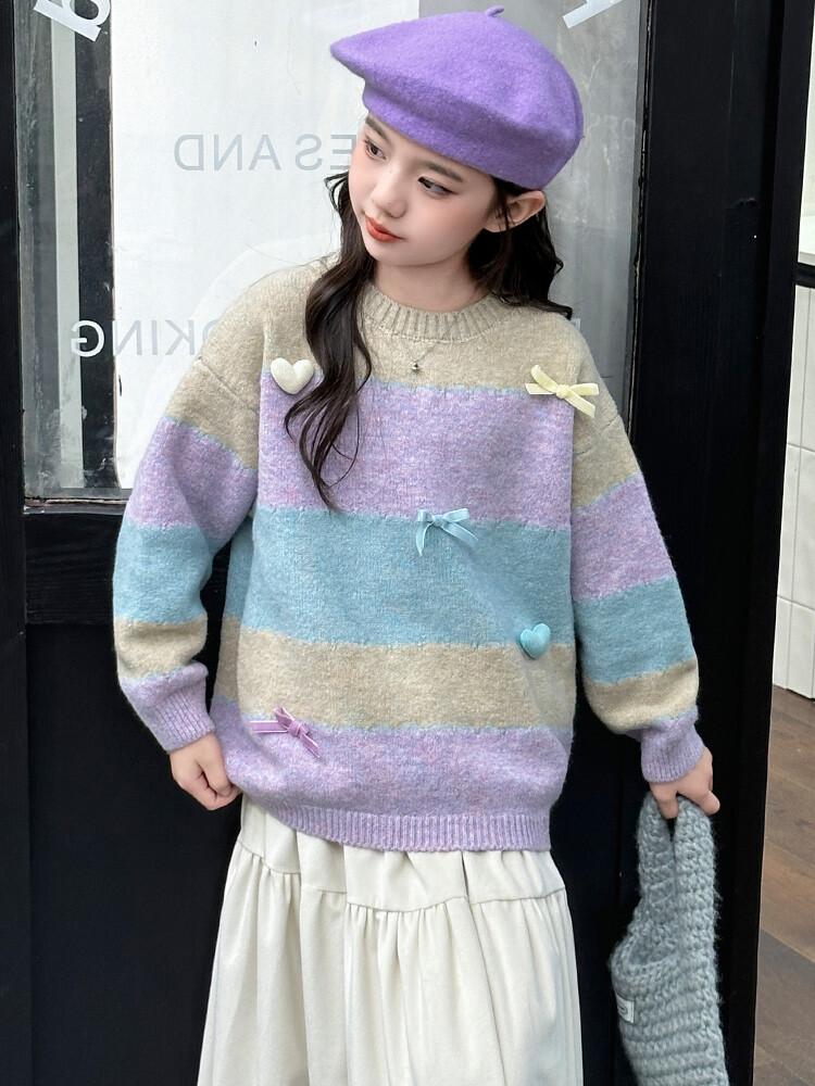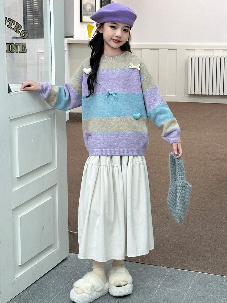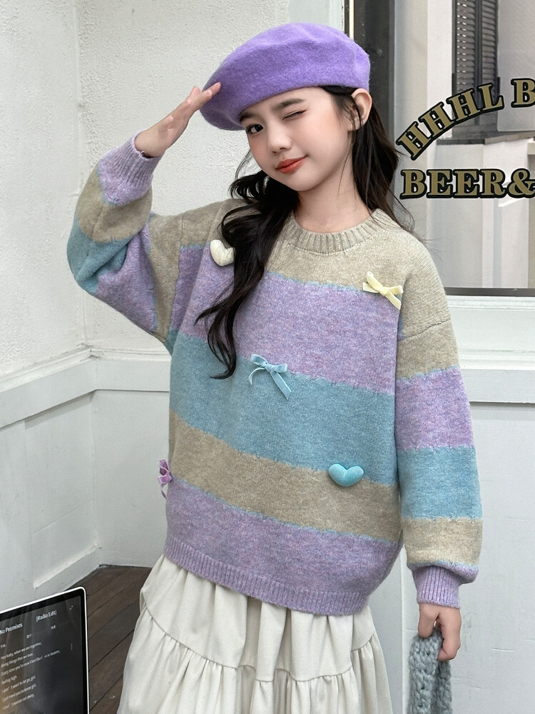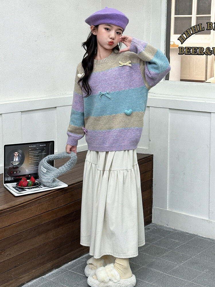 소녀 니트 코트 2024 새로운 어린이 가을 겨울 스웨터 소녀의 봄과 가을 한국복 스웨터 카디건스토어 가기